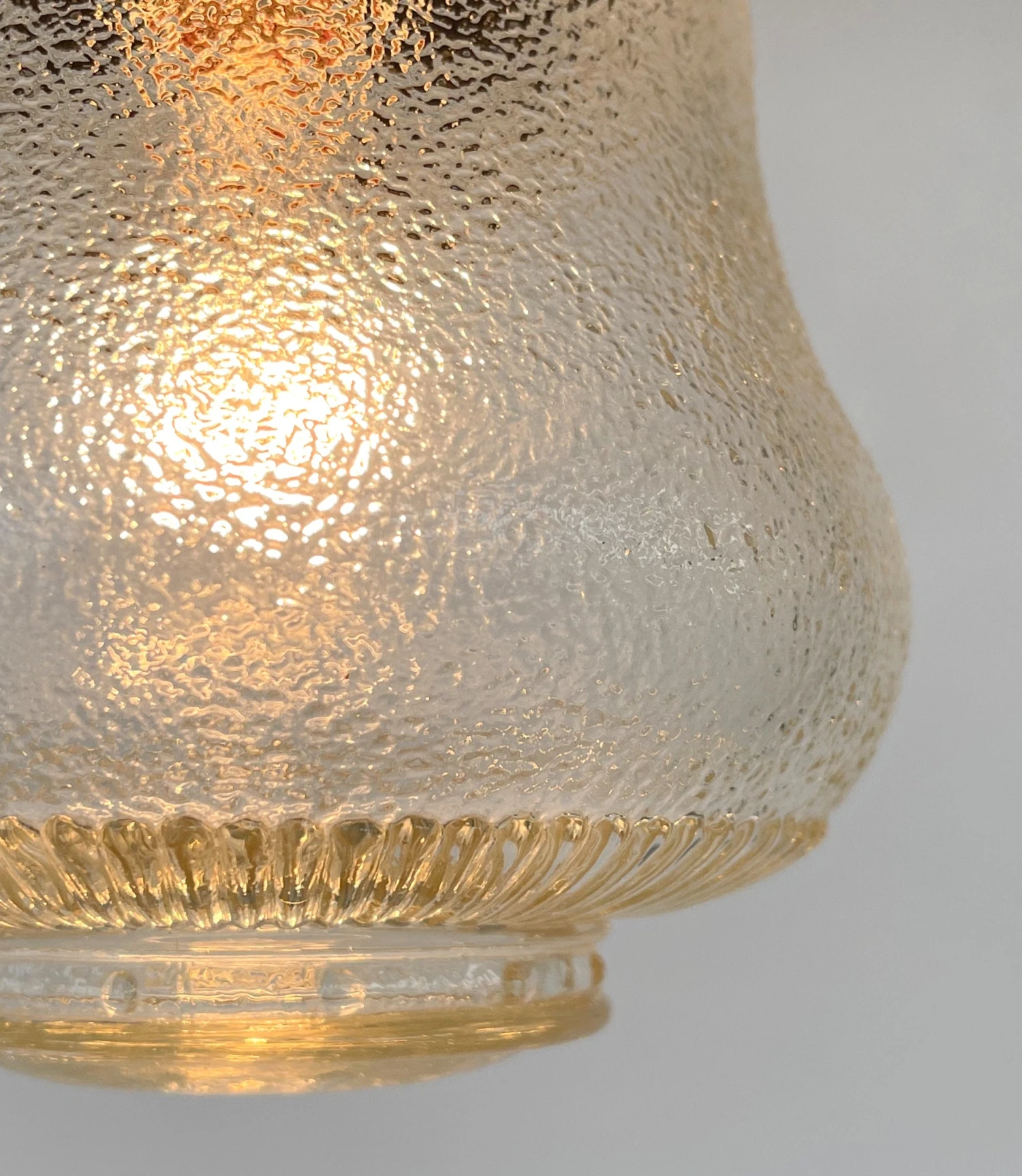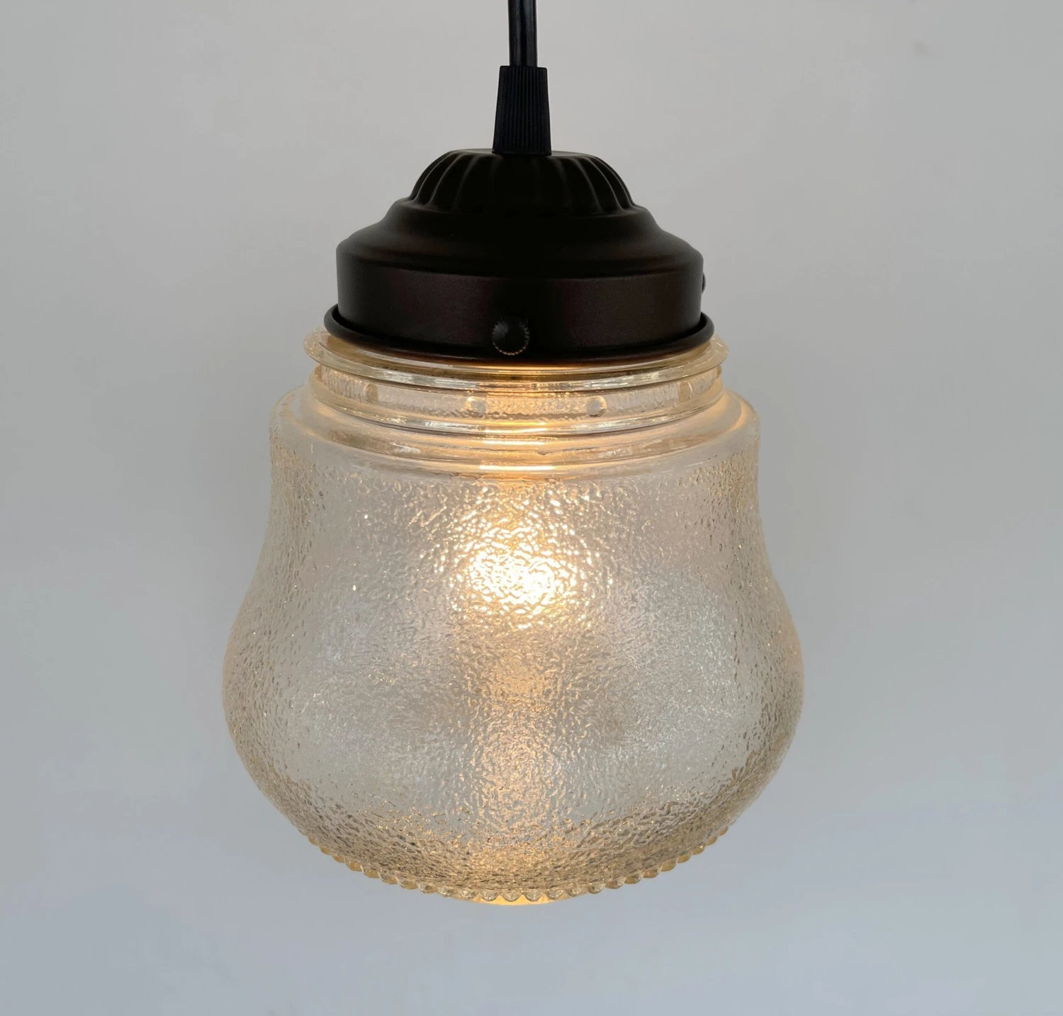 Features a vintage Amber glass pendant light globe with a pebble finish has been updated and ready for your home. This antique amber glass hanging lighting would be perfect for your kitchen, dining room or bathroom fixtures.