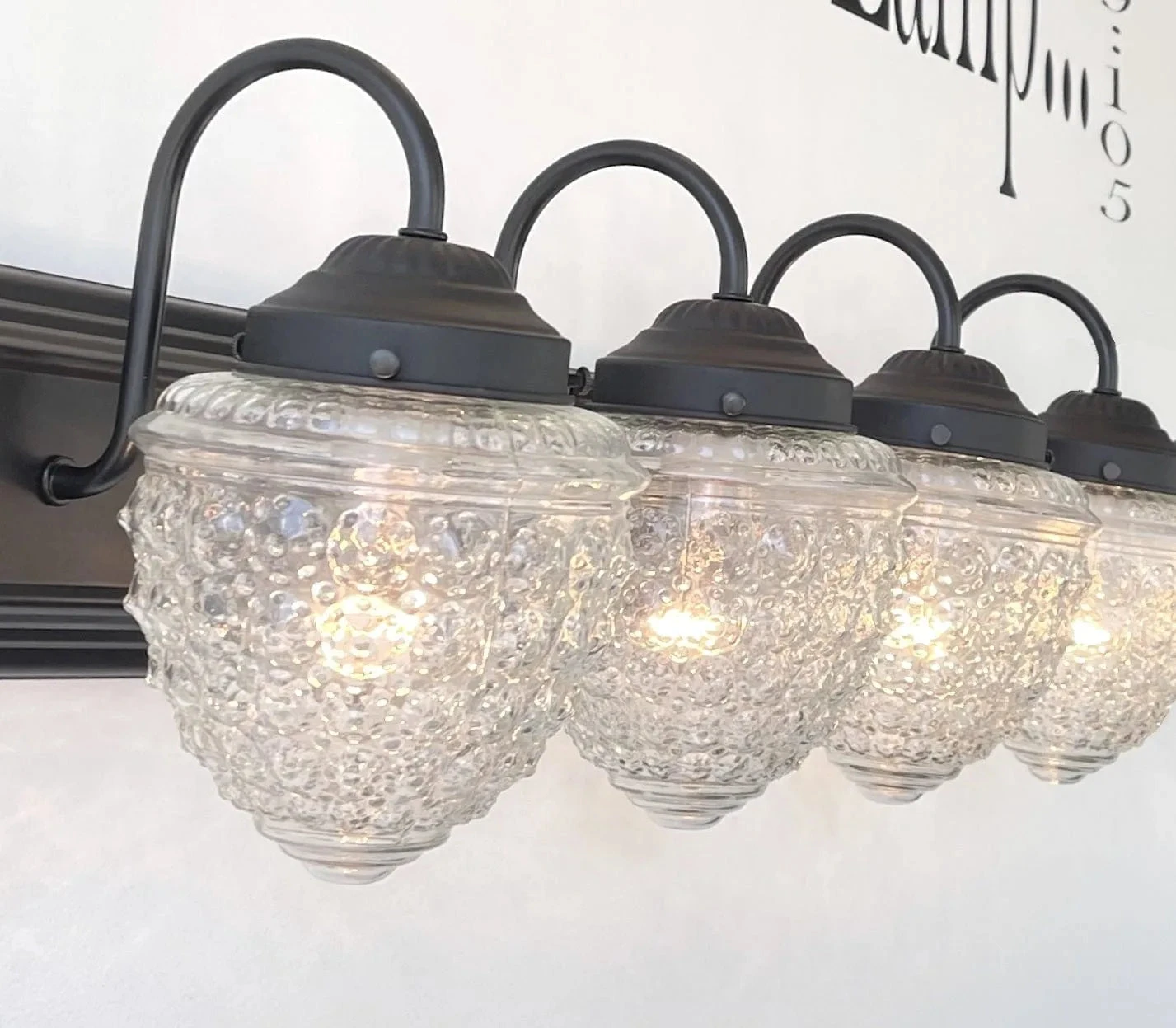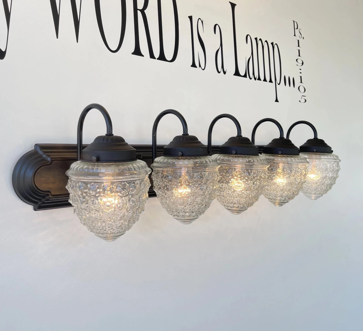These textured antique glass lights are unique and elegant pieces that will be the perfect addition to any home! With five bulbs, these acorn vintage glass lights are guaranteed to brighten any living space.
