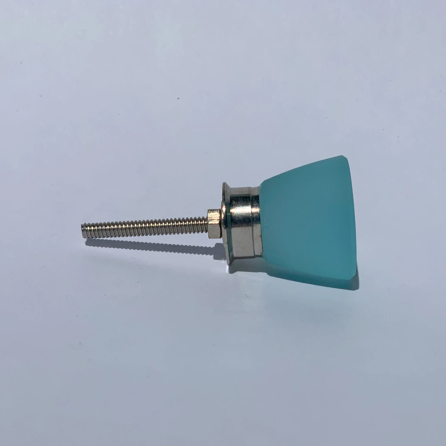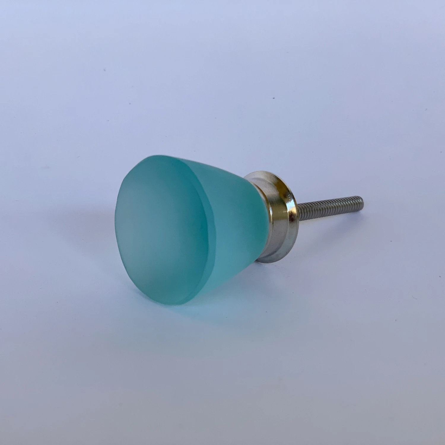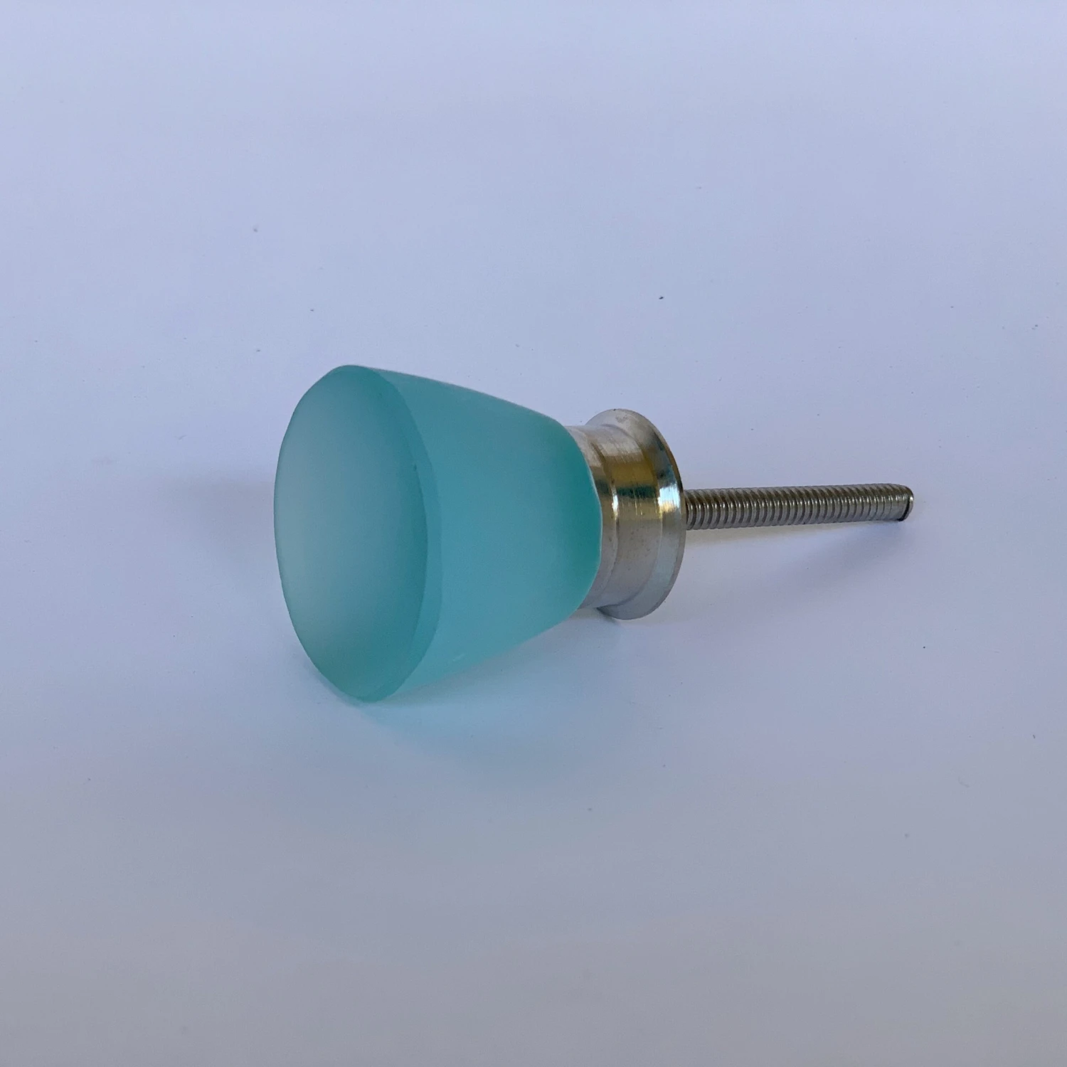 Simple round design. These knobs are beautiful to look at and touch. They resemble aged beach glass and are gorgeous in kitchens, bathrooms, and on dresser drawers. A lovely turquoise glass color.Â