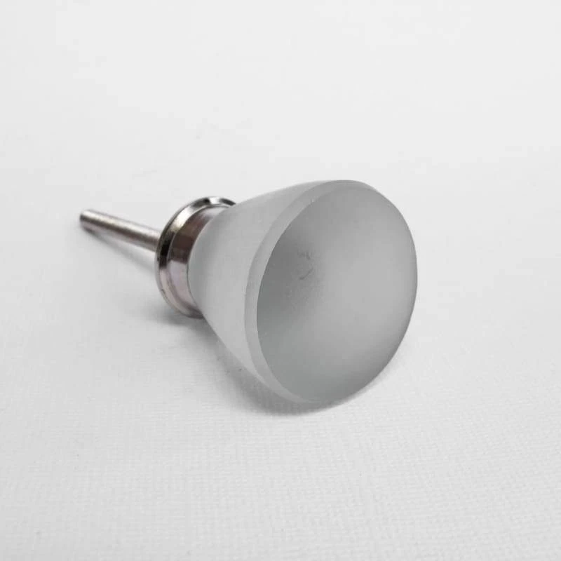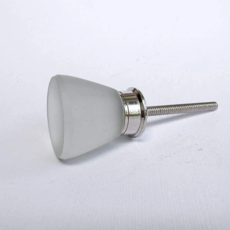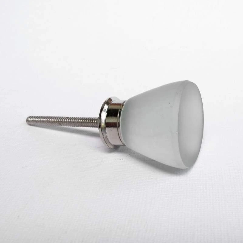 White / Clear Beach Glass Knob. Simple round design. These knobs are beautiful to look at and touch. They resemble aged beach glass and are gorgeous in kitchens, bathrooms, and on dresser drawers. This one has a white frosted beach glass finish.