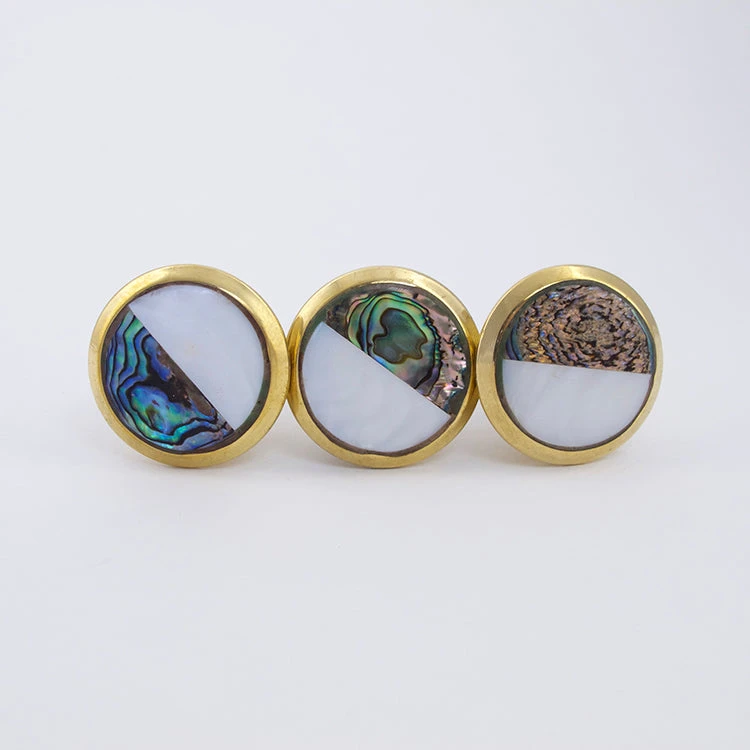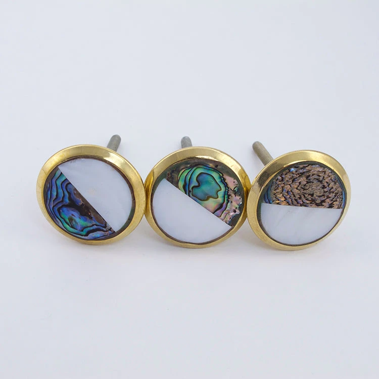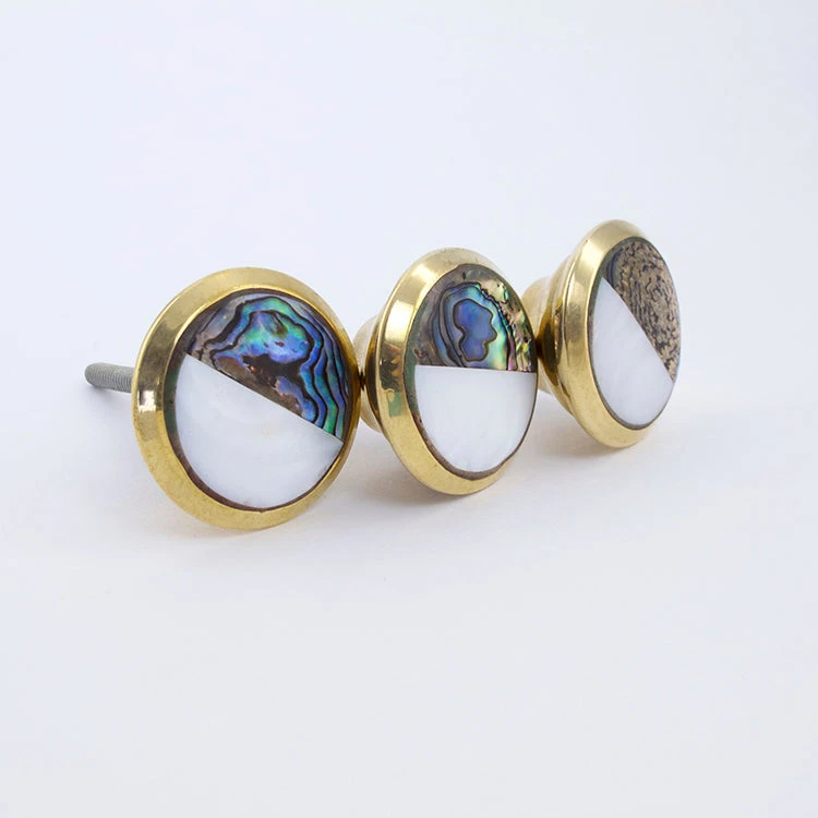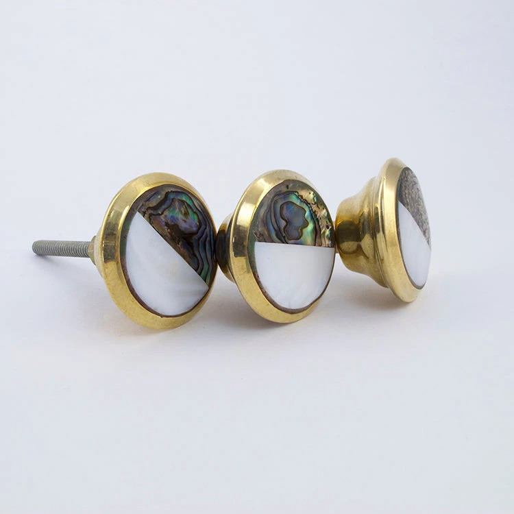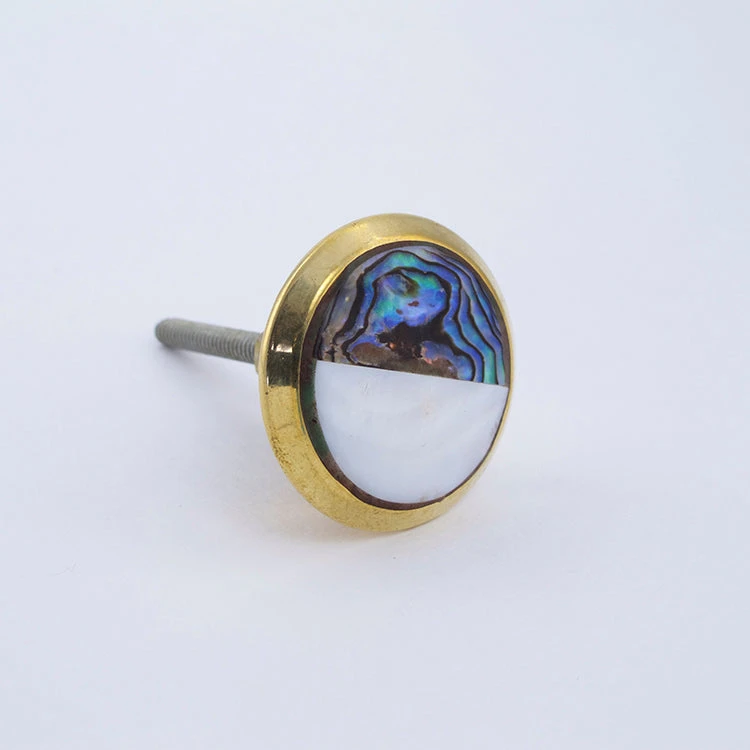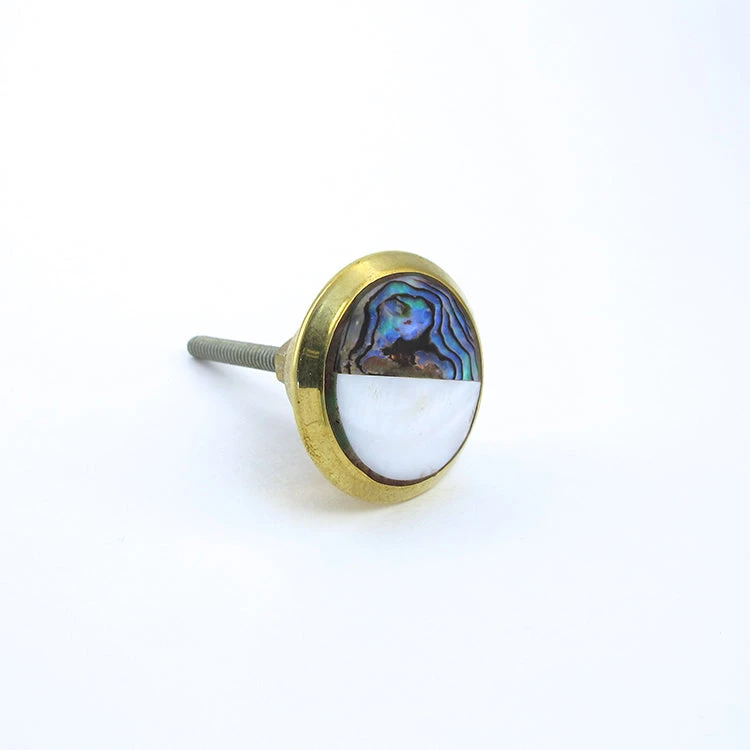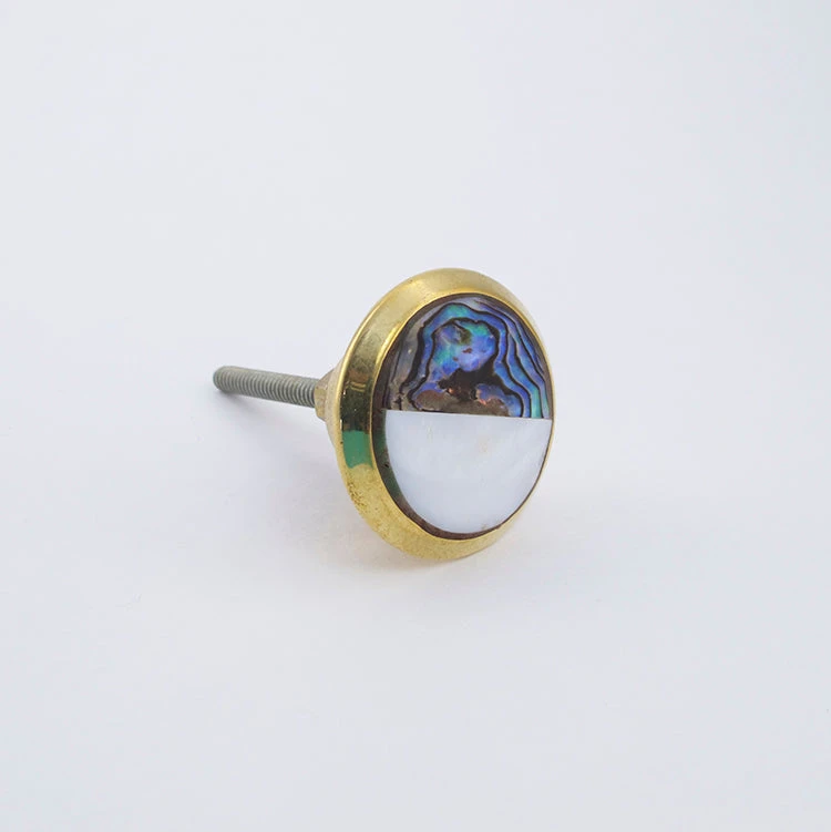 Black and White Mother of Pearl Knob. This new knob is half light mother of pearl, half black mother of pearl. A simple and elegant design that is perfect for your modern home. A gold-accented rim and backer brings an added element of elegance to this piece. Handmade, each piece of hardware is one of a kind.  This knob is perfect for bathroom or kitchen cabinets, dresser drawers or even a chic nursery design! A gorgeous piece you are sure to love!