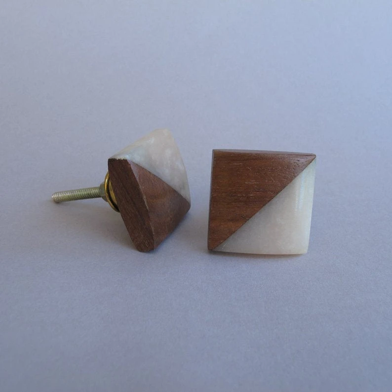 Geo Square Knob. A perfect combination of resin resembling natural seashell and wood. Each a little different and unique. Modern and Simple. Handmade, high-quality hardware.