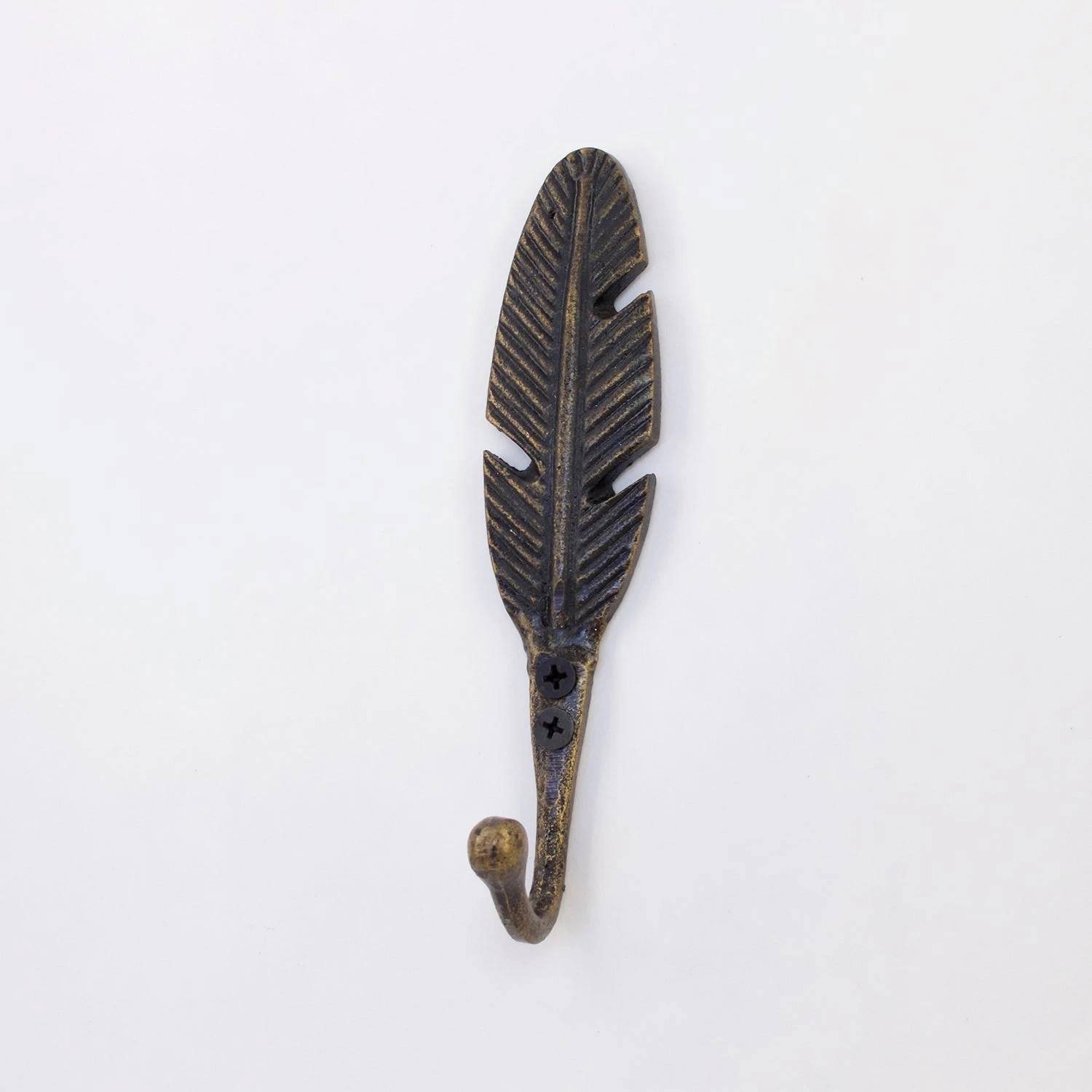 Bronze Feather Hook. This hook is perfect for fun modern boho-styled homes. A beautiful hook made of cast iron bronze metal. This hook feels dainty but makes a big statement. Handmade.