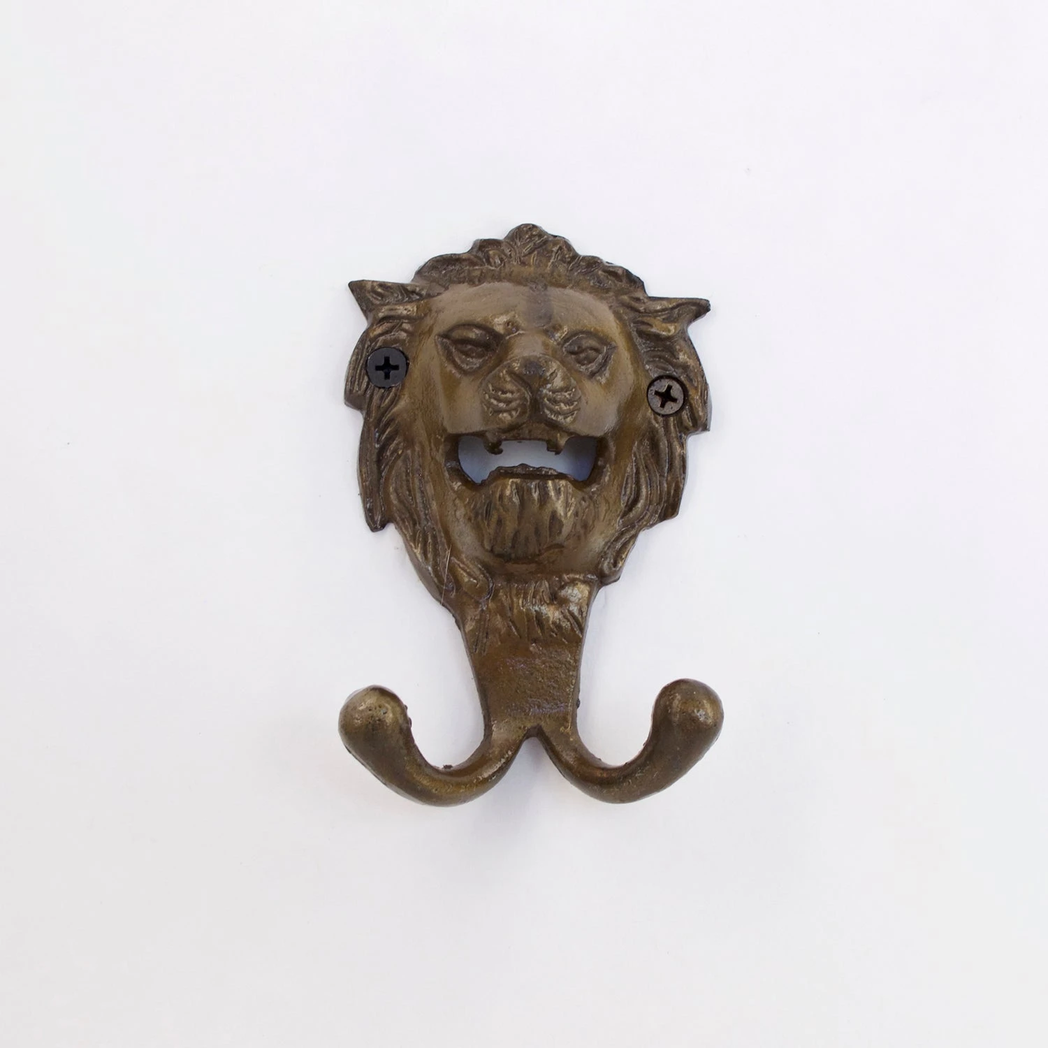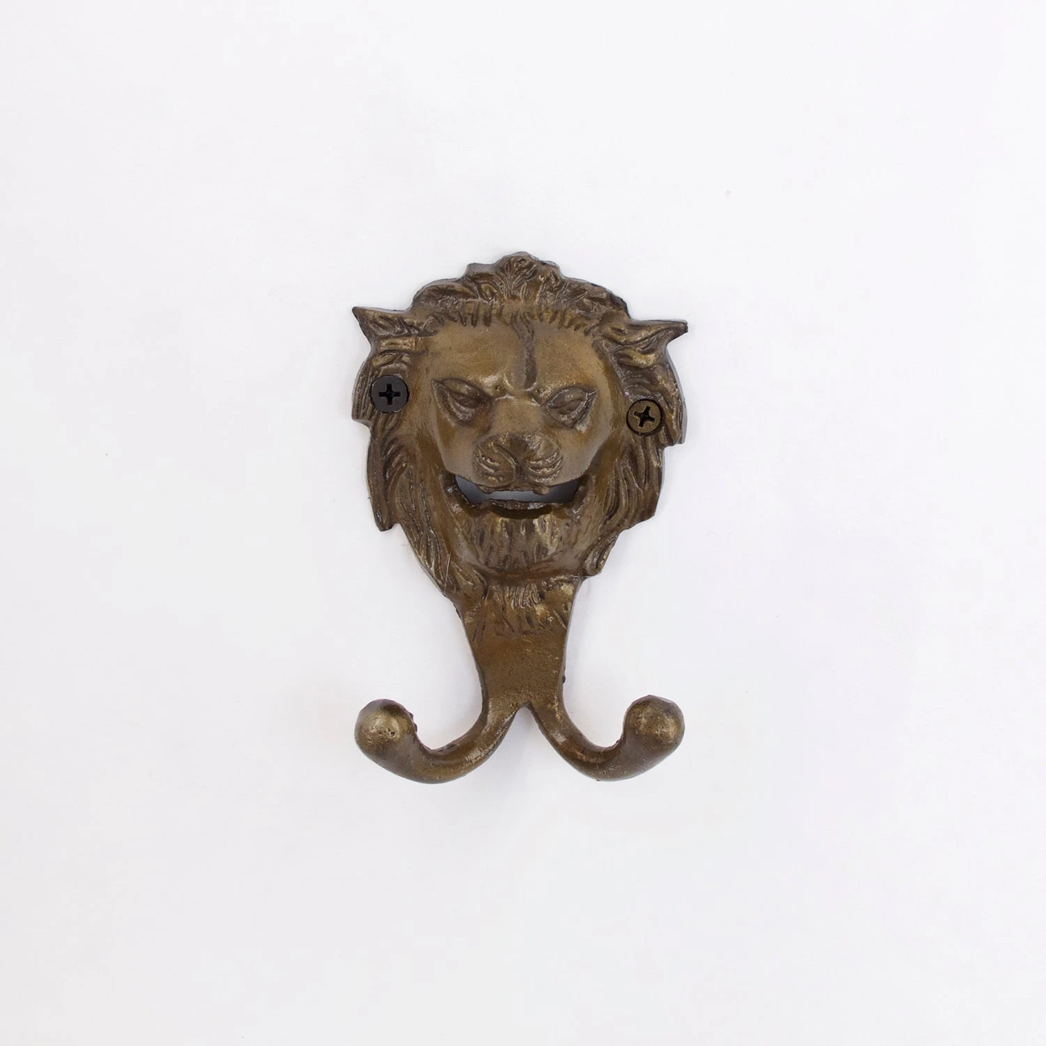 Cast Iron Bronze Lion Hook. Make a statement with this royal lion hook. This is a heavy-duty cast iron hook perfect for keys, bags or towels. This wall hook is designed with a regal lions head, two hooks hang from below his mane. A classic statement hook that you will definitely love! Handmade.Â