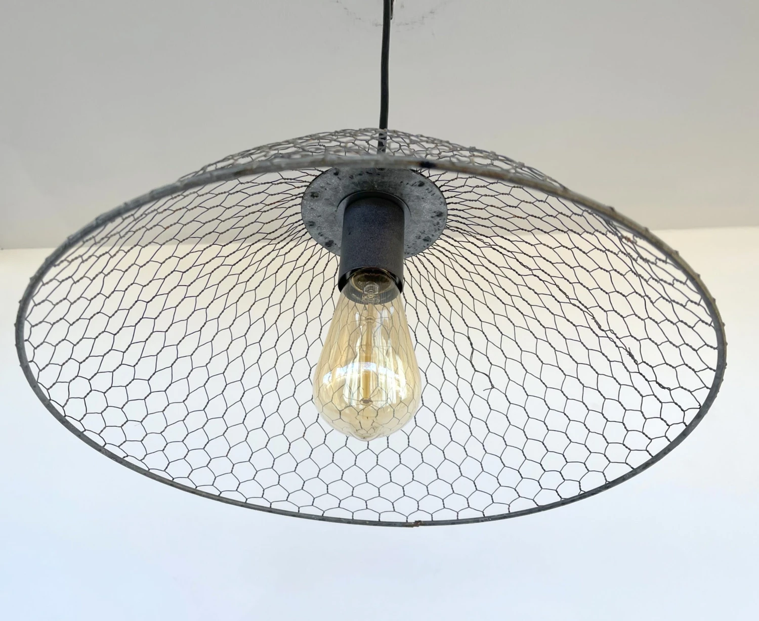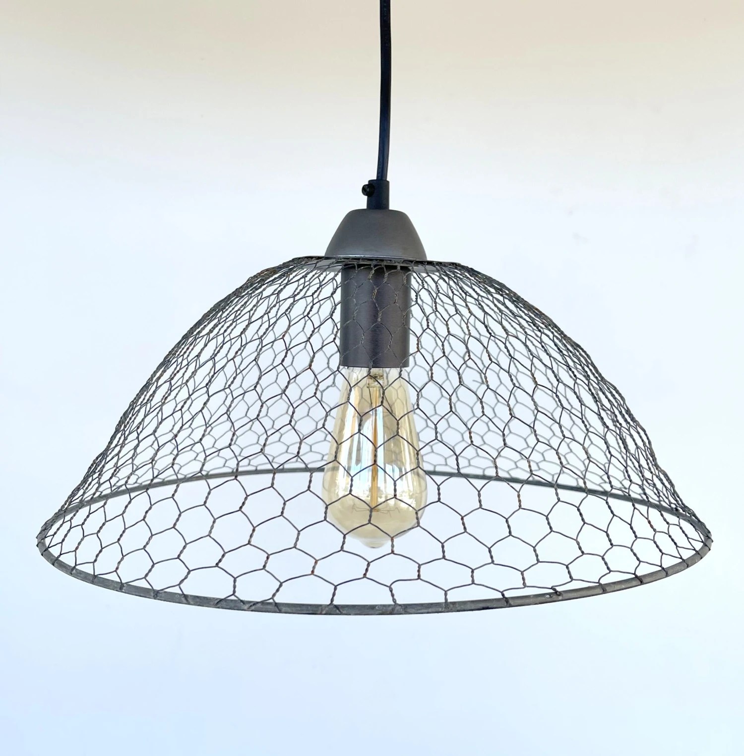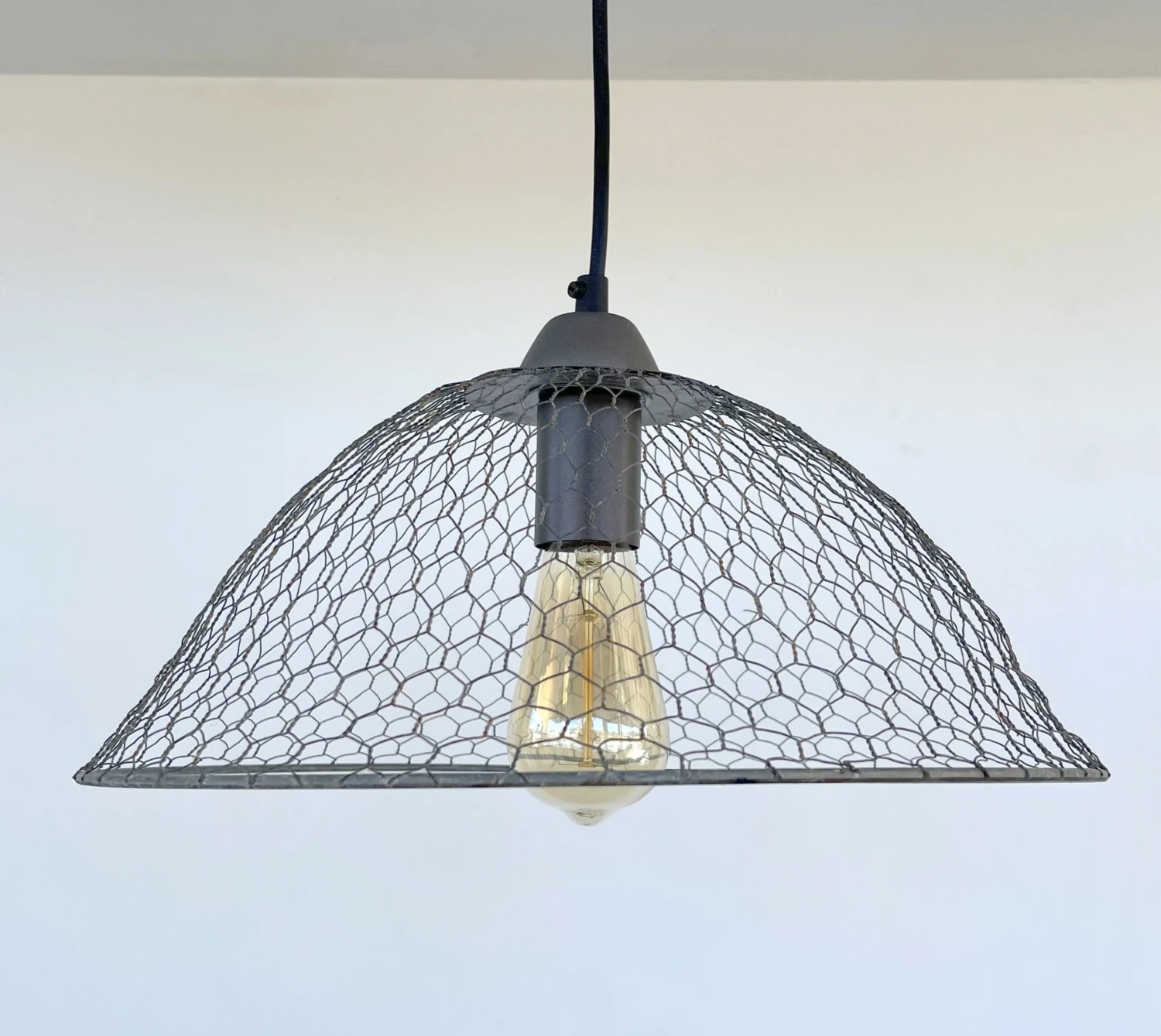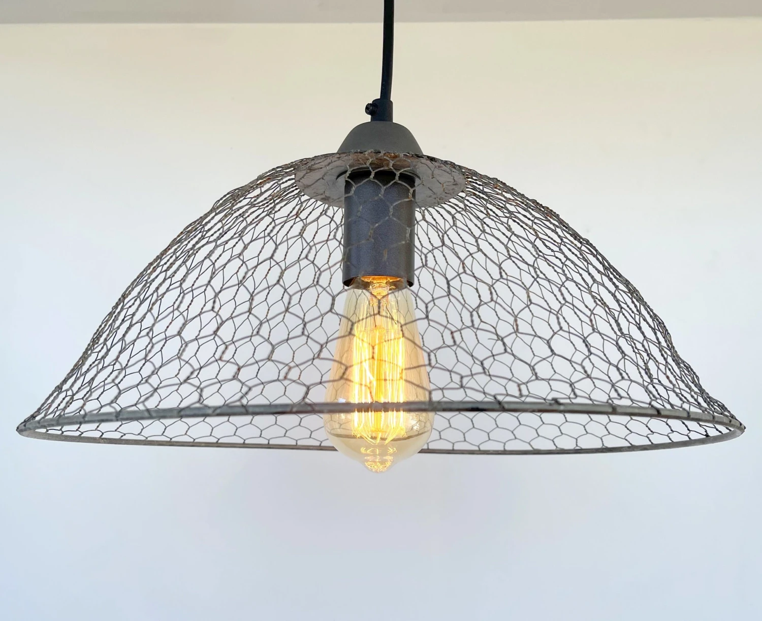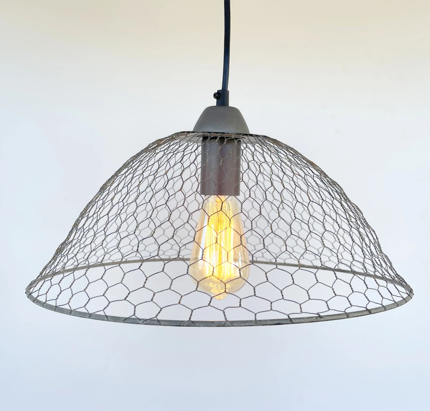 - 15″ wide x 10″ Tall Chicken Wire Pendant Light