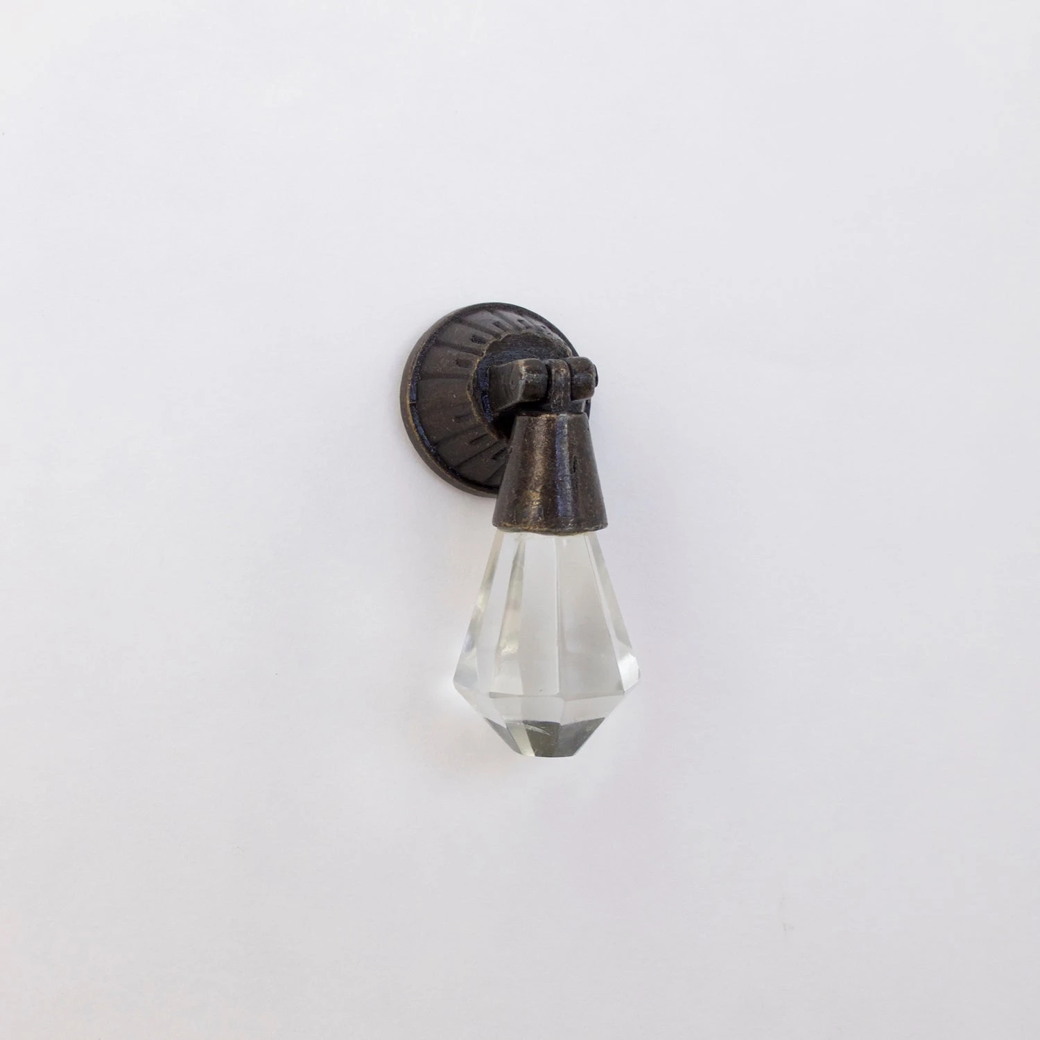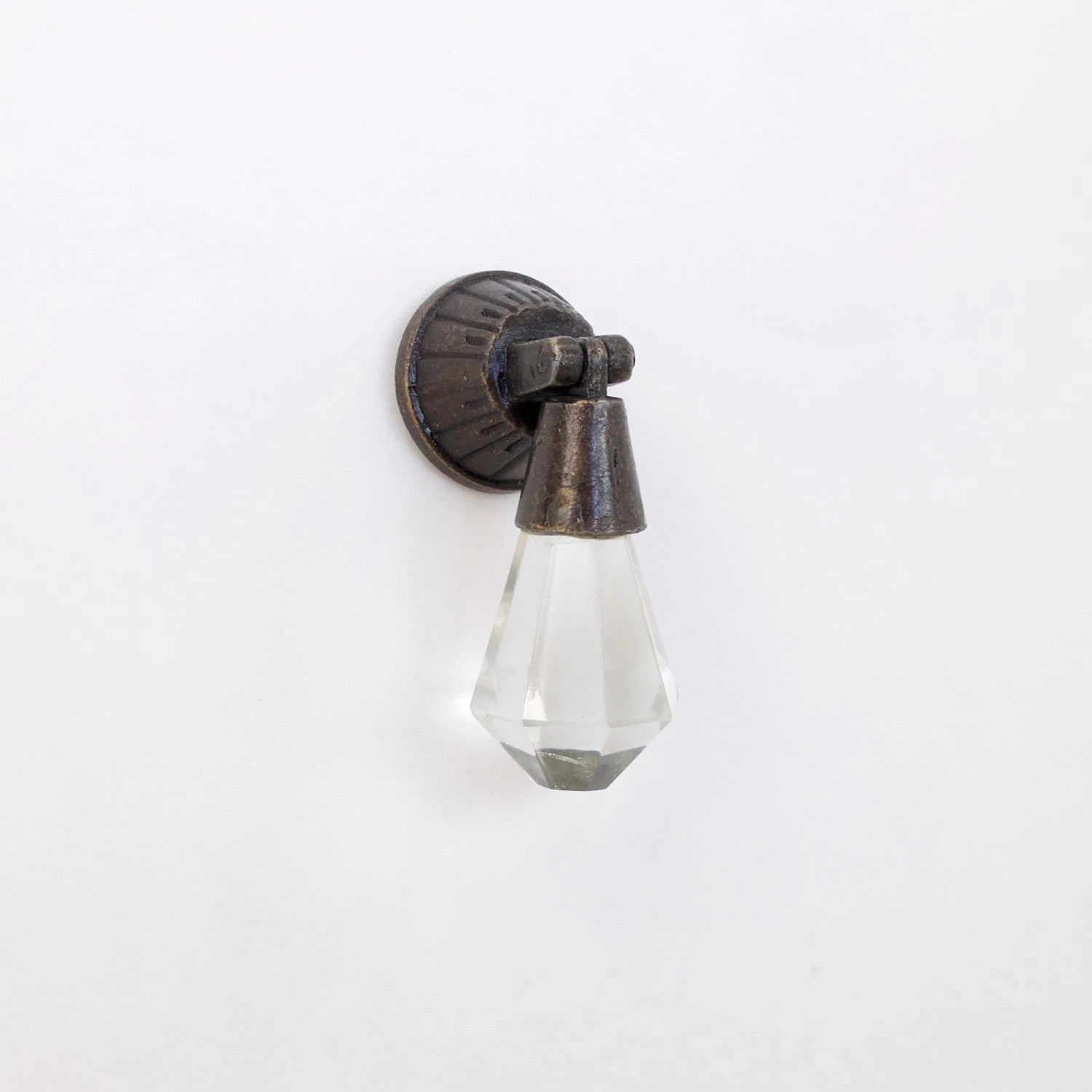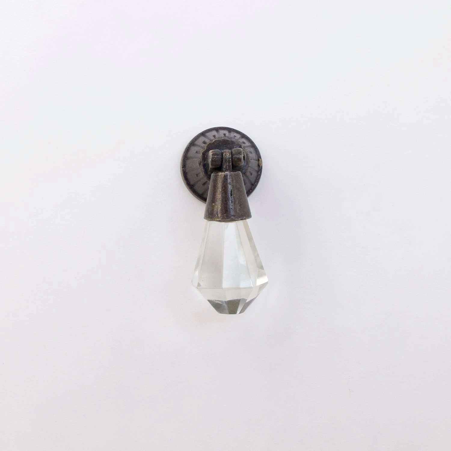 Vintage Crystal Drop Drawer Pull in Bronze. A Beautifully detailed, antique pull – perfect for a bedroom dresser. Made of bronze metal and crystal. Handmade.