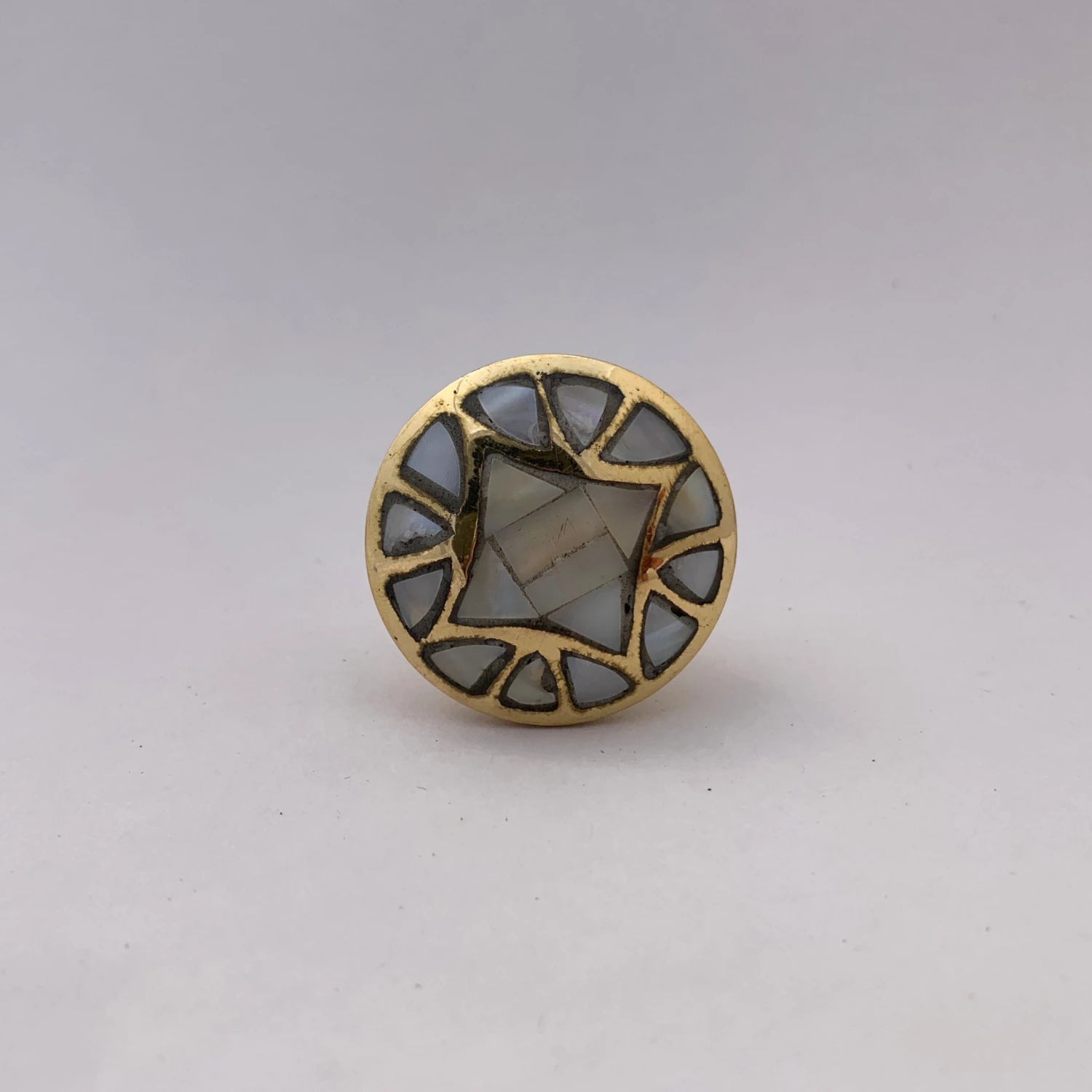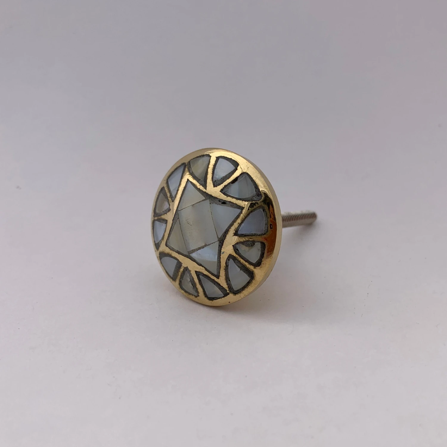 Diamond Mother of Pearl Knob is made with satin brass, gold, metal, and mother of pearl seashell. These gorgeous handmade knobs are both elegant and chic. The perfect drawer pull for your shabby chic home remodel!