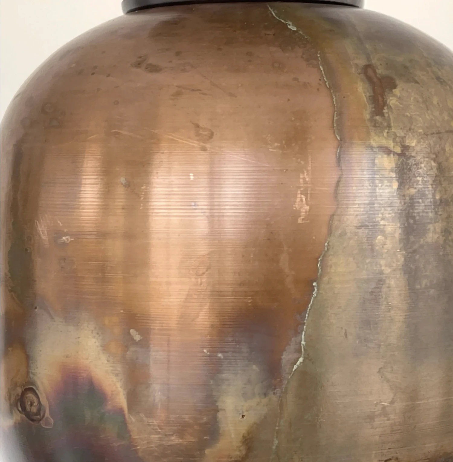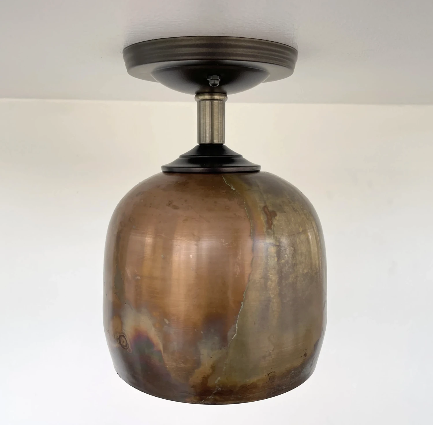 - 8″ wide x 10.5″ tall Burnished Metal Flush Mount Light Gorgeous Patina of Burnished Metal gives Copper Accents (Each one has it’s own pattern)