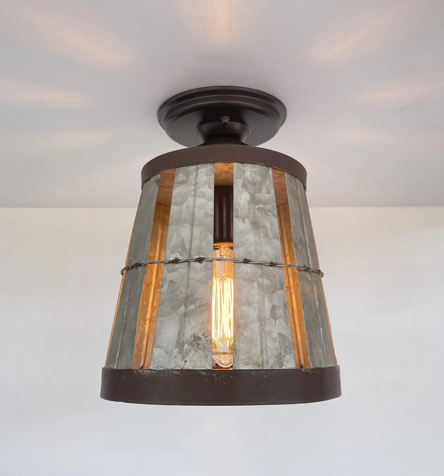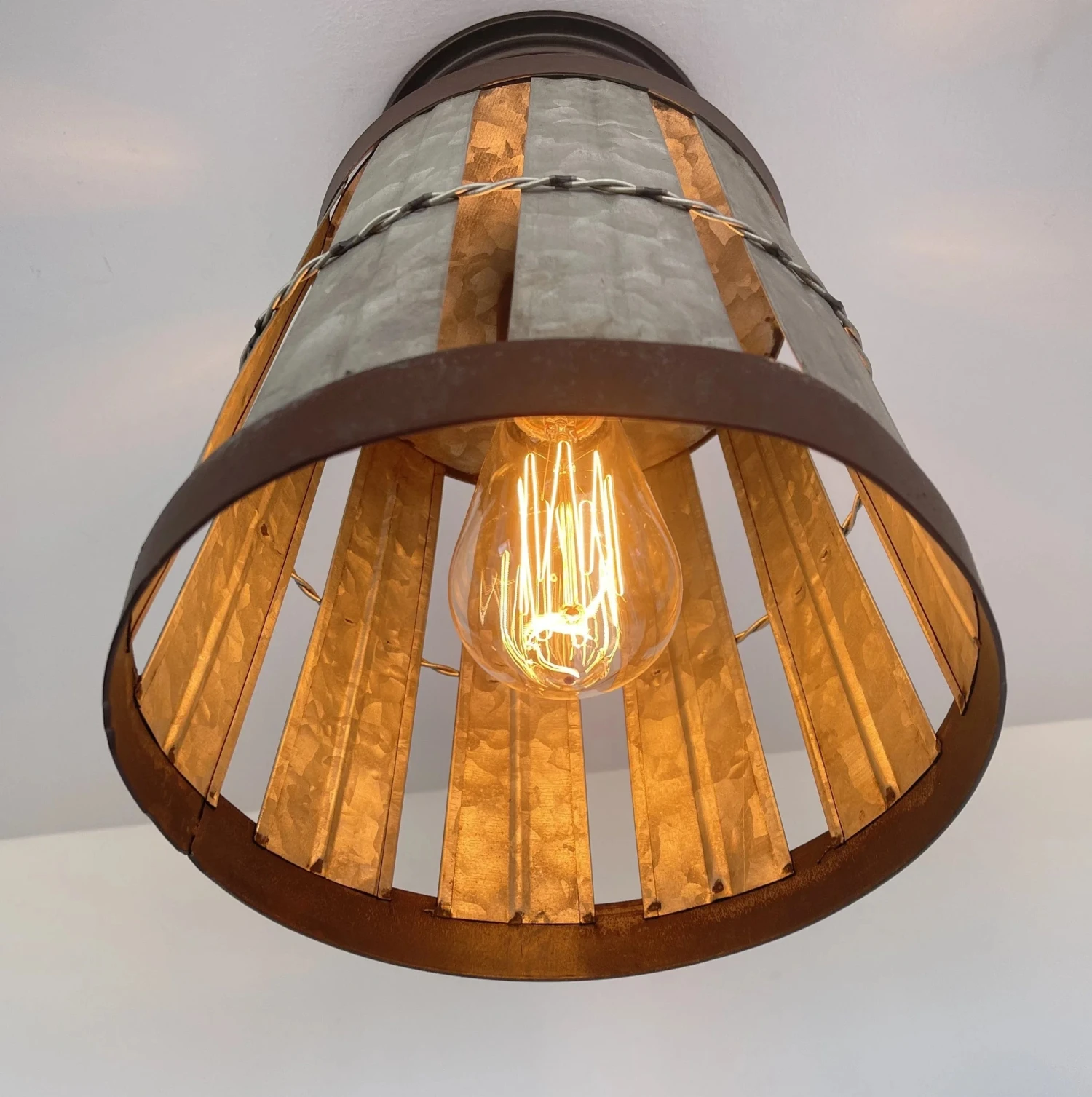 - 8.5″ wide x 10.5″tall Galvanized Metal Basket Light Fixture