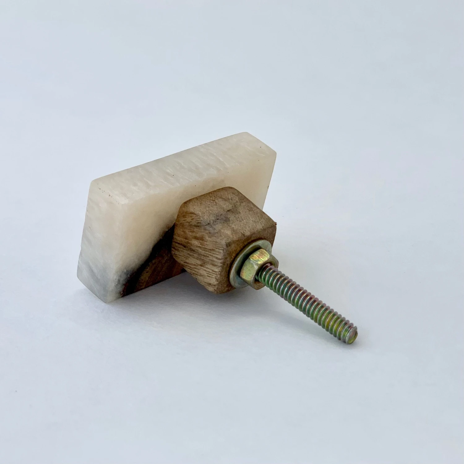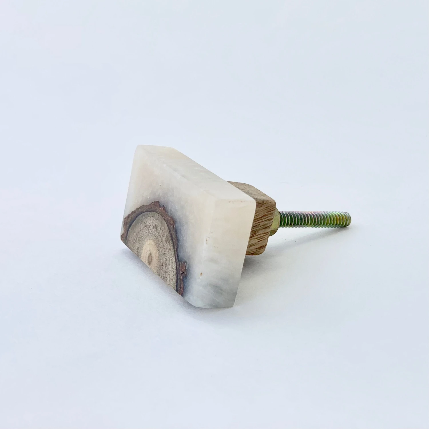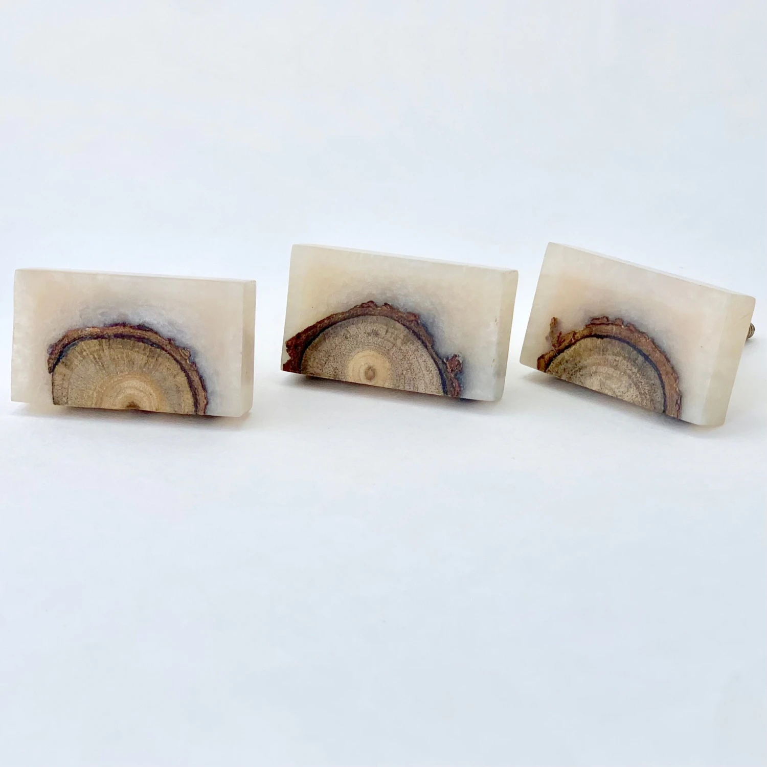 Beautiful natural wooden Geia Knobs made of wood, resin, and metal. Natural wood stump cast in a quartz-colored resin. Each pull is handmade and completely unique. This boho-inspired natural design is sure to bring that extra “WOW” factor to your dresser or cabinet. Handmade.