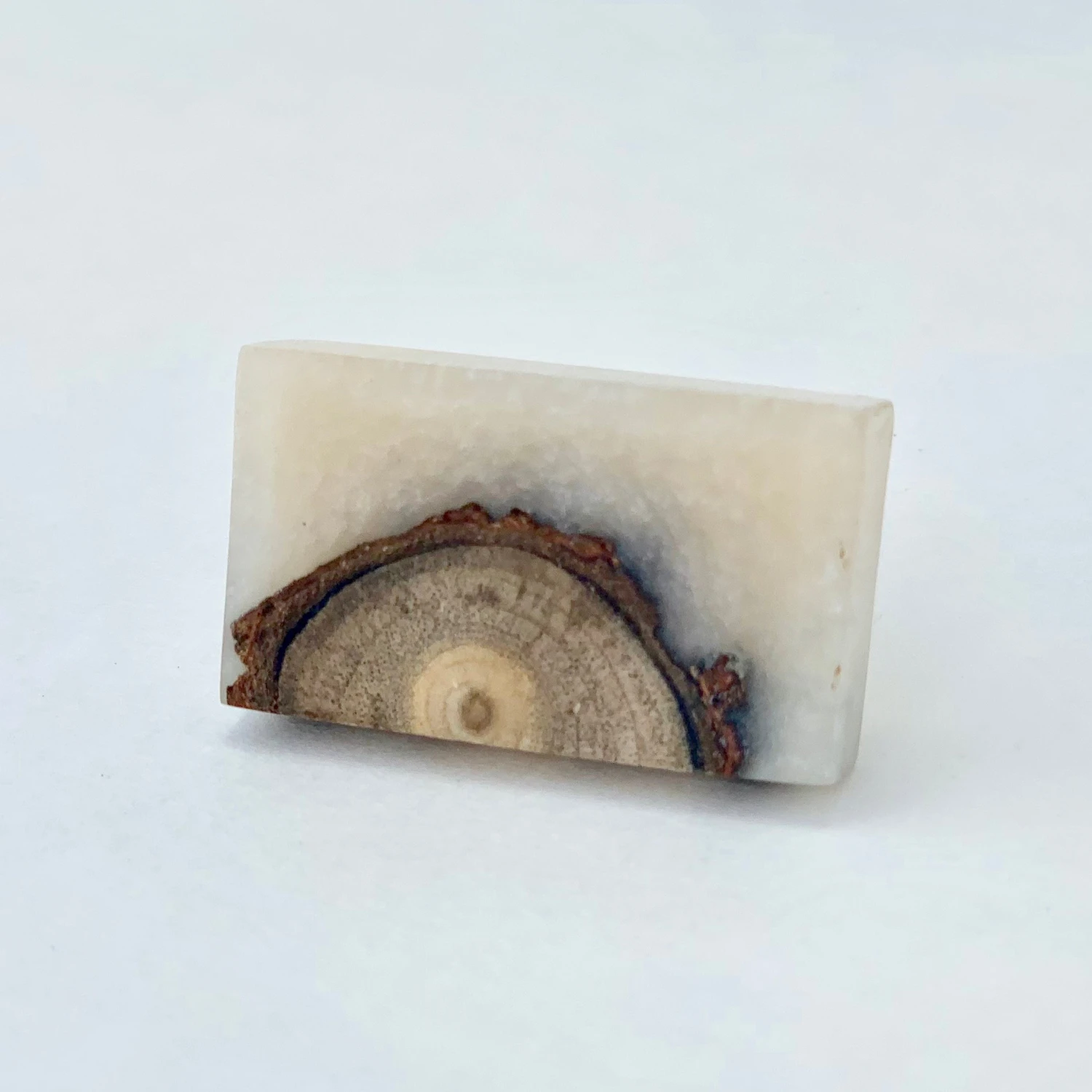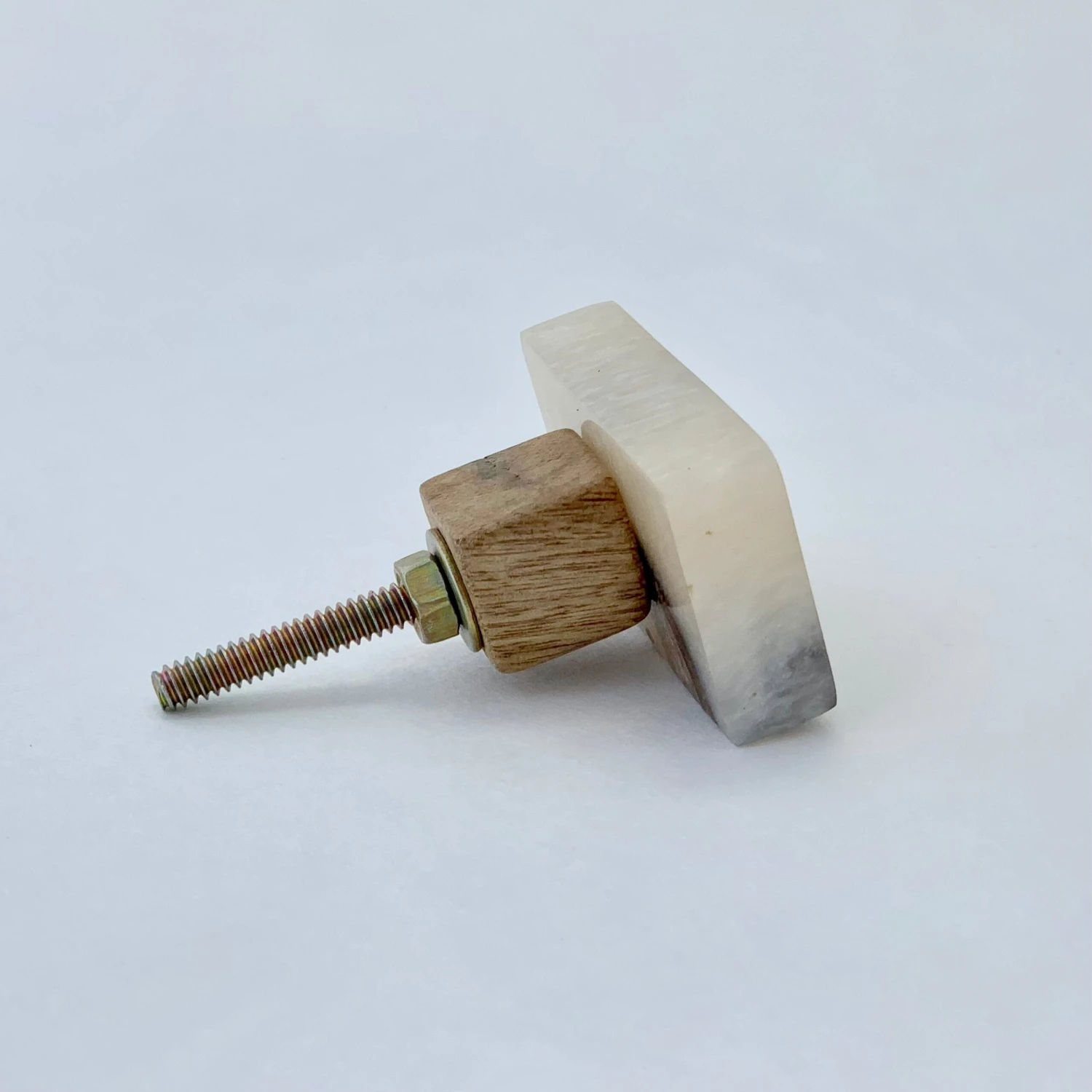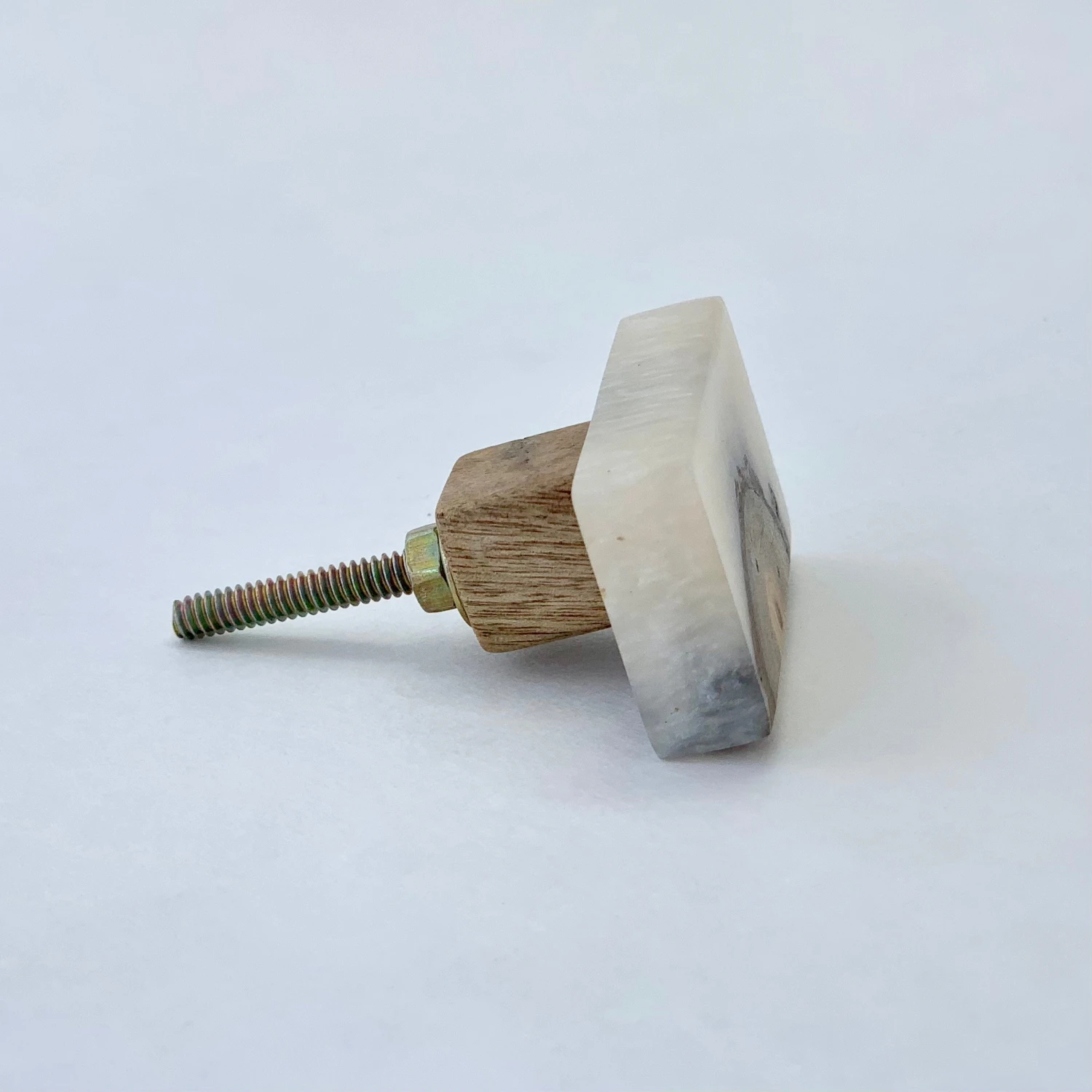 Beautiful natural wooden Geia Knobs made of wood, resin, and metal. Natural wood stump cast in a quartz-colored resin. Each pull is handmade and completely unique. This boho-inspired natural design is sure to bring that extra “WOW” factor to your dresser or cabinet. Handmade.