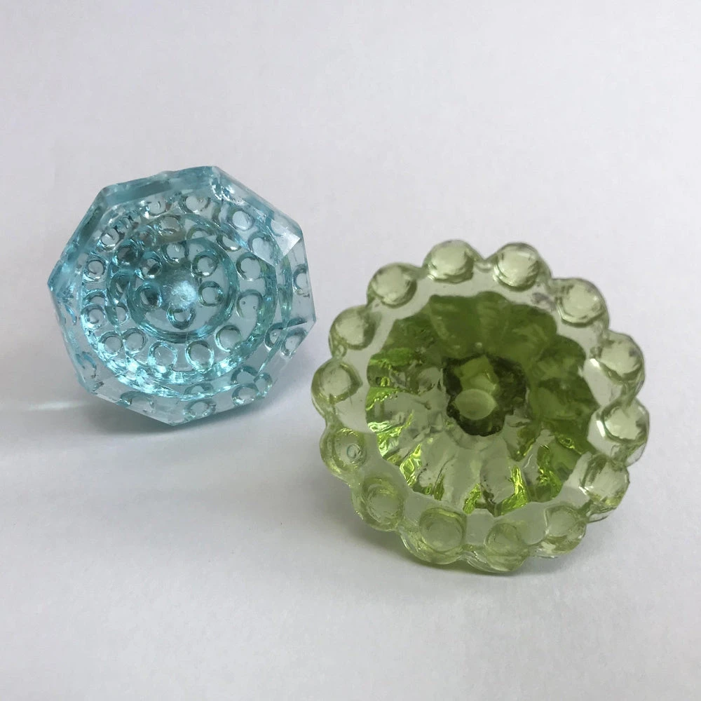 Beautiful Glass Moon Drop Knobs. Each uniquely special and different. Vintage like feel, circle bubble accents. These beautiful glass knobs are sure to make your heart happy! The perfect finishing touch for your bathroom, kitchen or master bedroom renovation! Handmade.Â