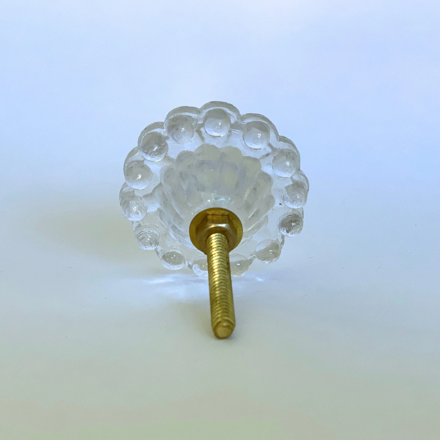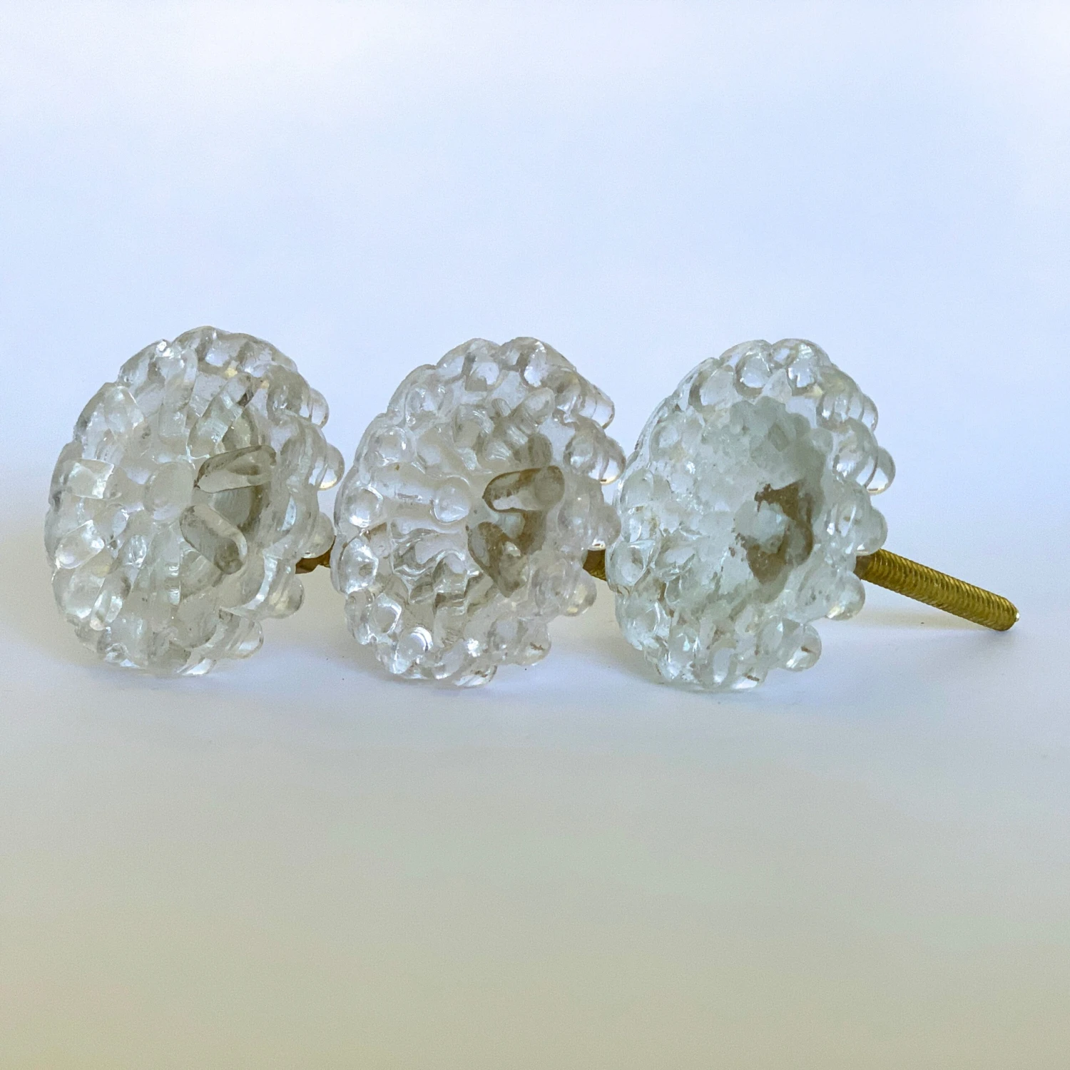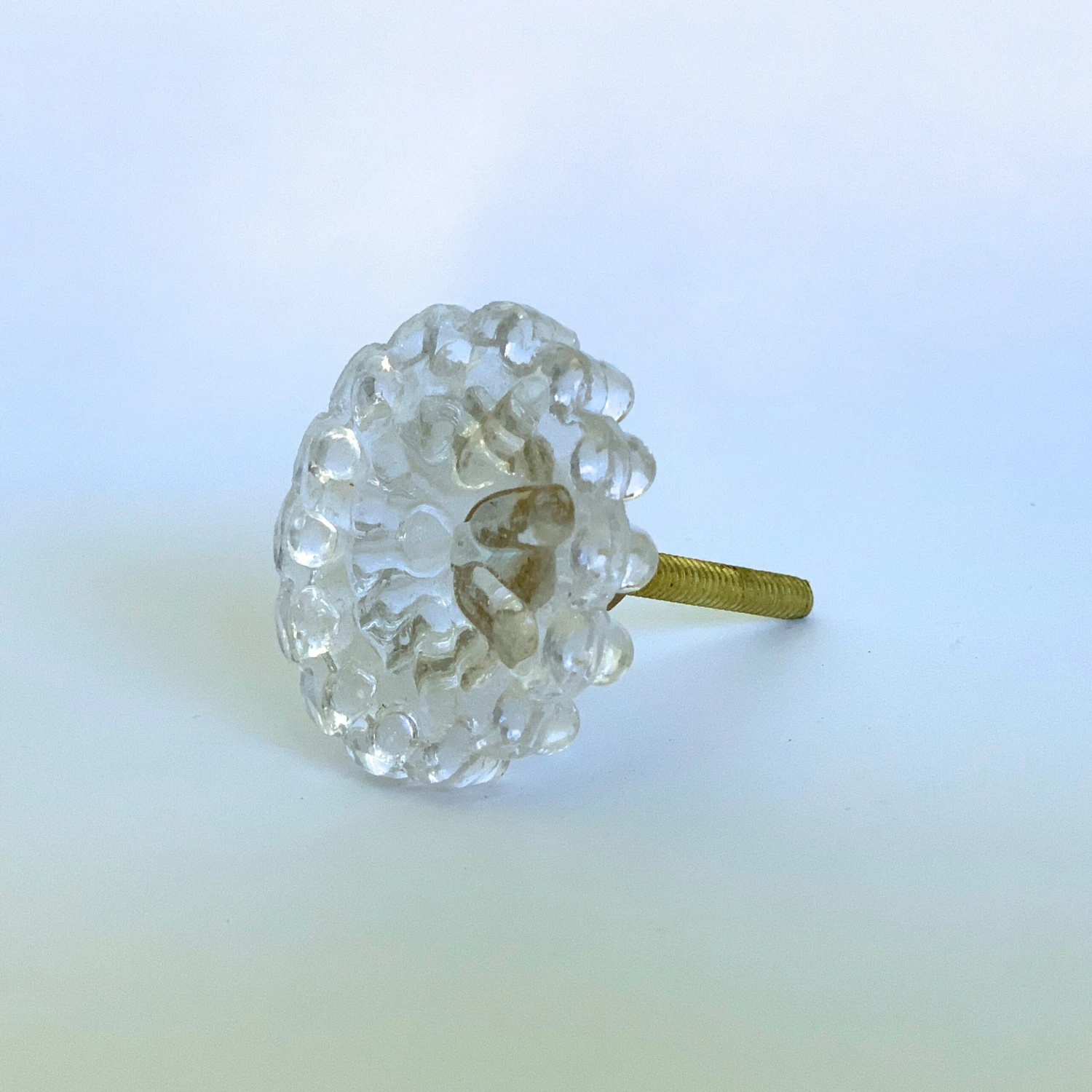 Beautiful Glass Moon Drop Knobs. Each uniquely special and different. Vintage, dainty, and beautiful, these lovely knobs are all kinds of amazing. From the tiny glass beveled edges to the delicate perfectly placed petal-like shapes. This knob is one you’re sure to fall in love with over and over again. It is the perfect finishing touch for that dresser you’ve been wanting to make over. Â