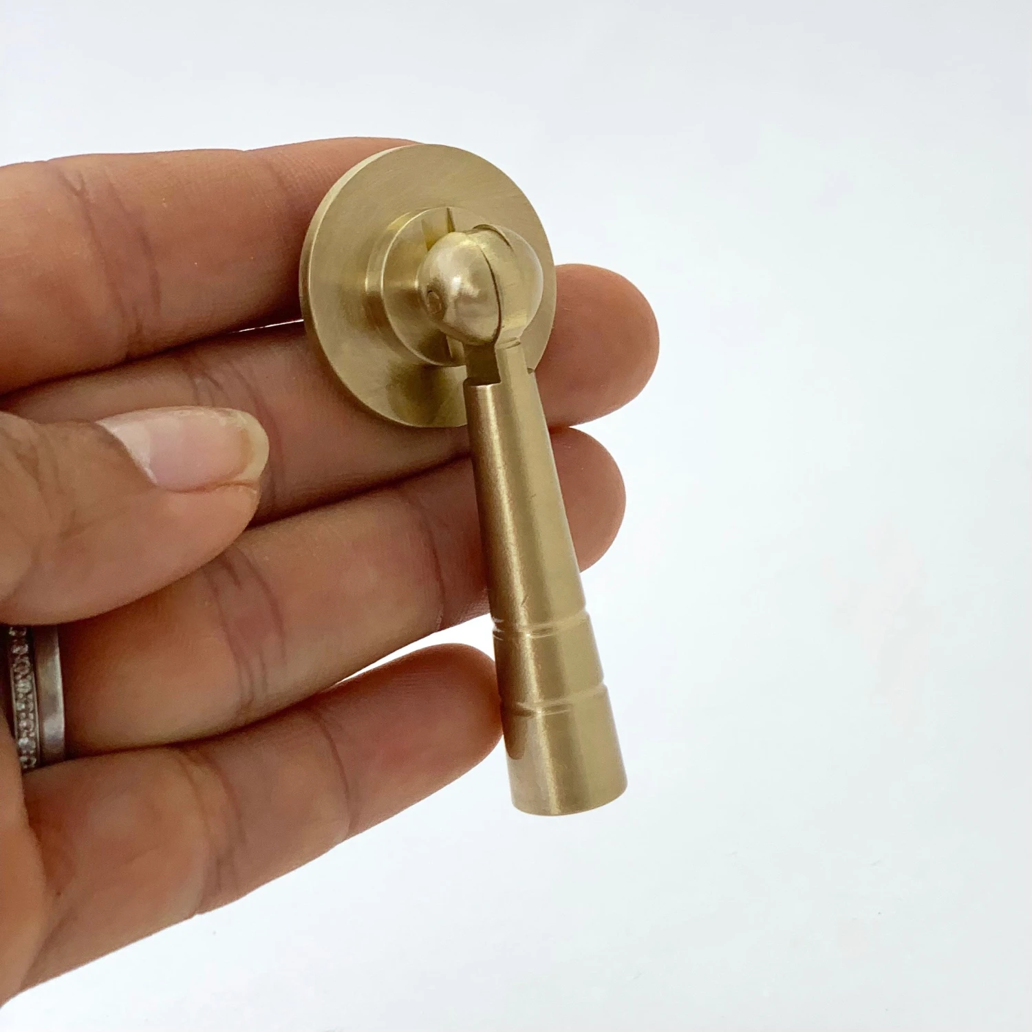 The Modern Gold Drop Knob. An elegant and modern dresser pull made of satin brass. A modern take on a classic vintage style. This dresser pull has a dainty and feminine feel yet is sturdy and will hold up to daily use. This cabinet pull works well on dresser drawers and cabinets. High-quality finish and feel.