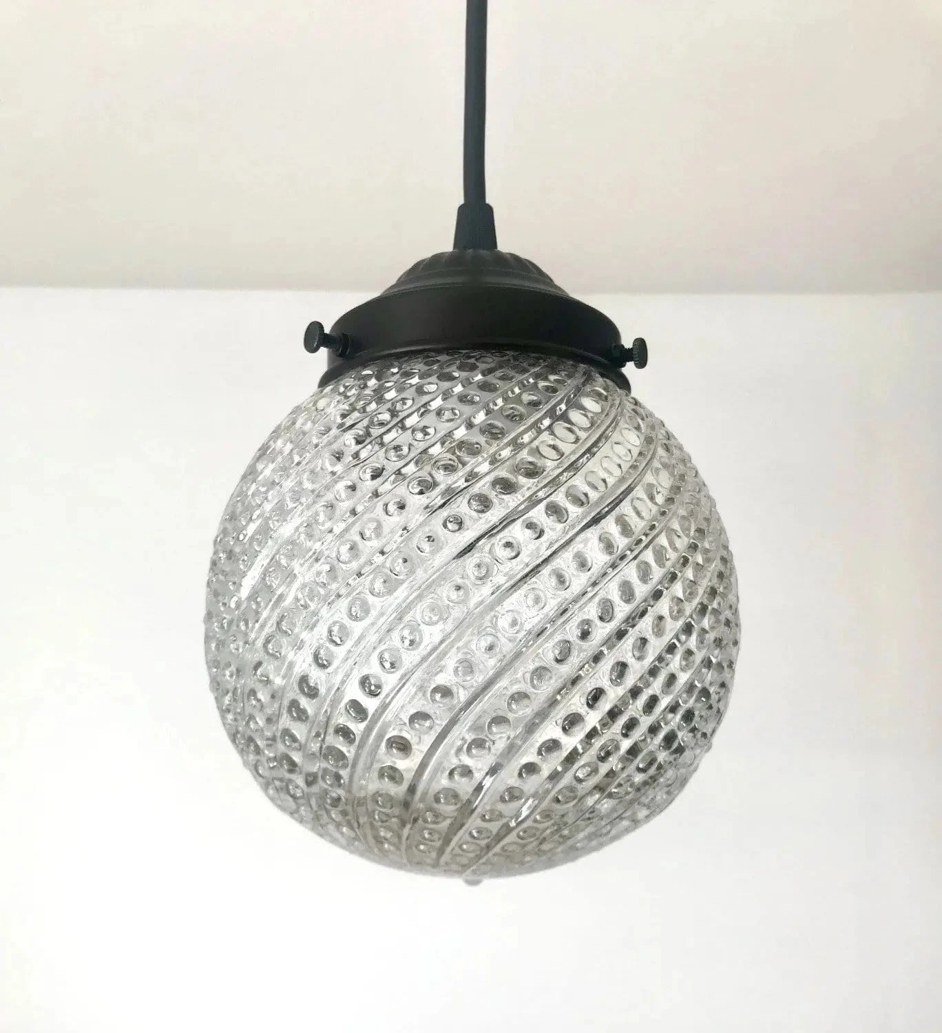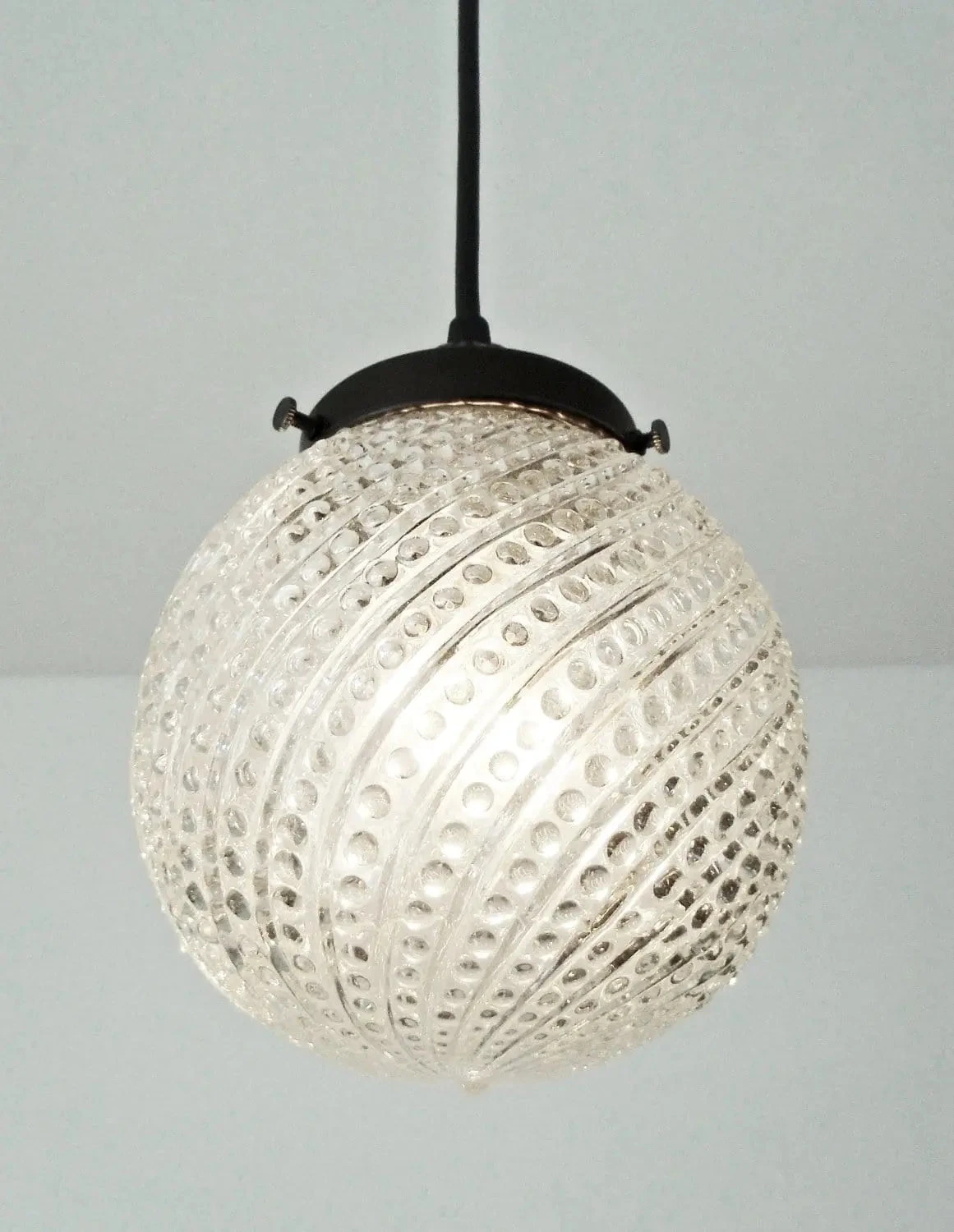 A true vintage antique glass globe pendant from the 1960’s, makes this light a striking choice for your bathroom, kitchen island, or over-the-sink lighting. With its bold Mid-Century Modern design and beautifully textured glass, it diffuses light gently while adding unmistakable MCM character and sparkle.