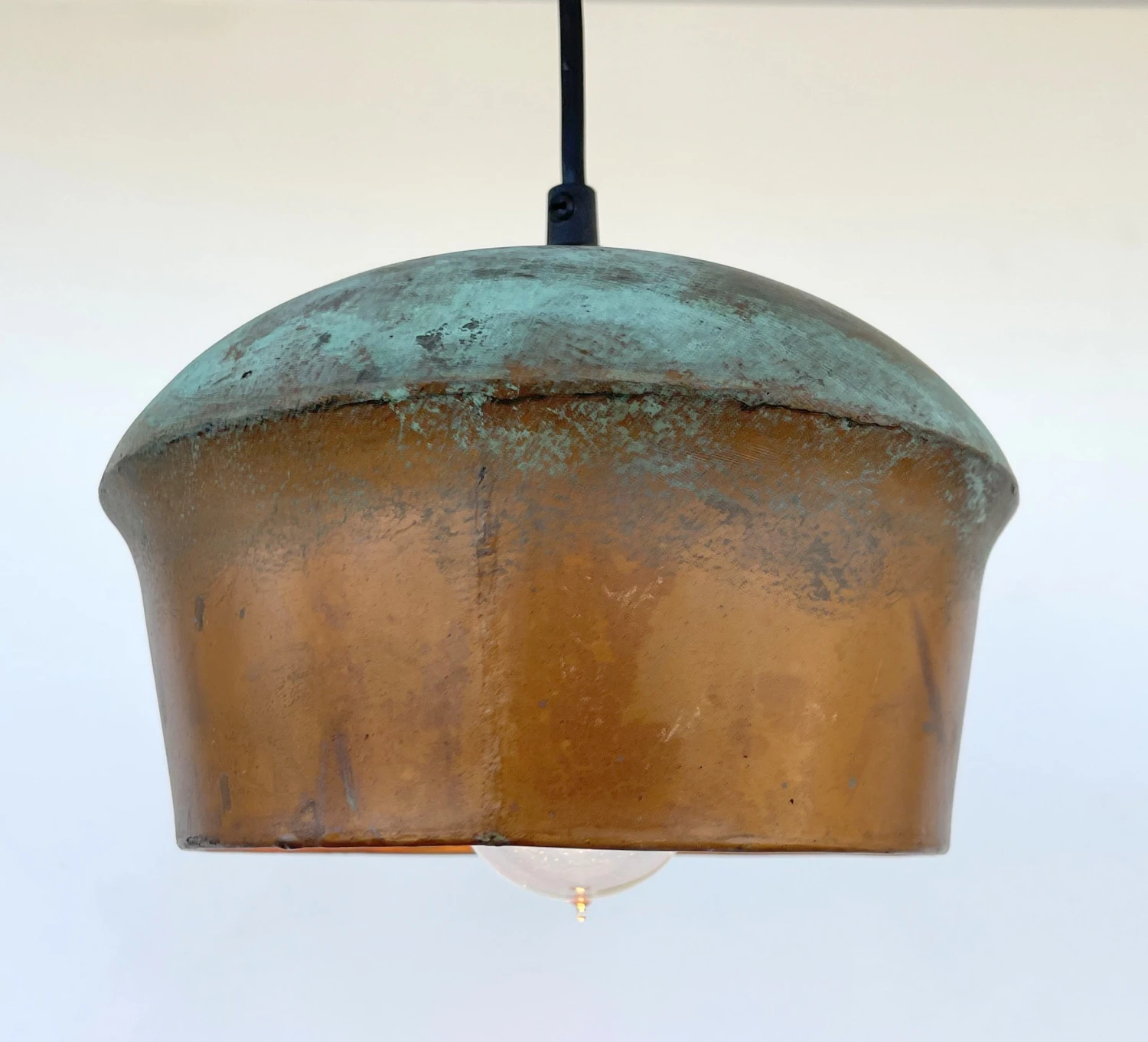 Give that island some rustic charm with this original handcrafted copper farmhouse pendant lights. Each light will have it’s own patina and distressed finish. Wow! Hang these over your kitchen island, sink or for your bathroom lighting in your cabin or cottage. Otherwise, choose to install as a hanging pendant light for your bedroom pendants