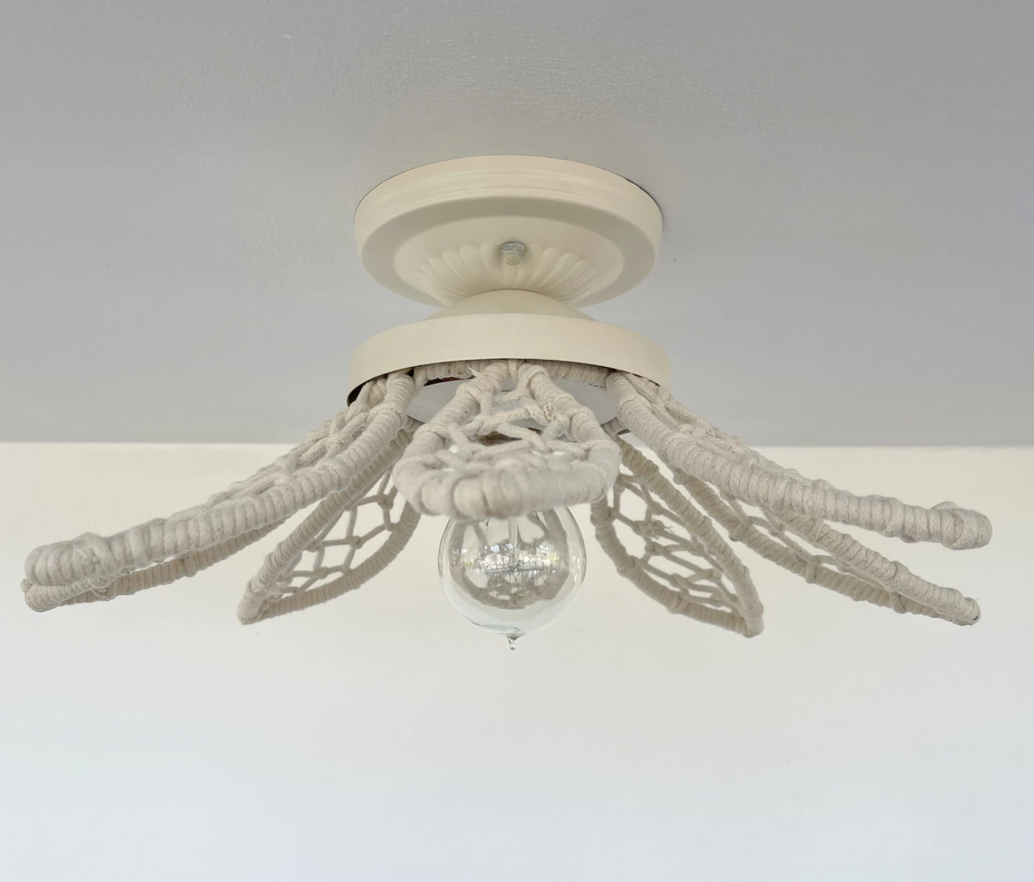 Give warmth and charm to your home with this large natural floral flush mount ceiling light! With its flower shape woven design and breezy boho feel, it brings fun texture and unique appeal—whether it’s your kitchen, bedroom, hallway, or nursery. It installs in a snap and definitely not something you’ll find at the big box stores.