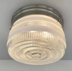 RETRO 1960’s Antique DRUM Flush Mount Ceiling Light Brushed Nickel