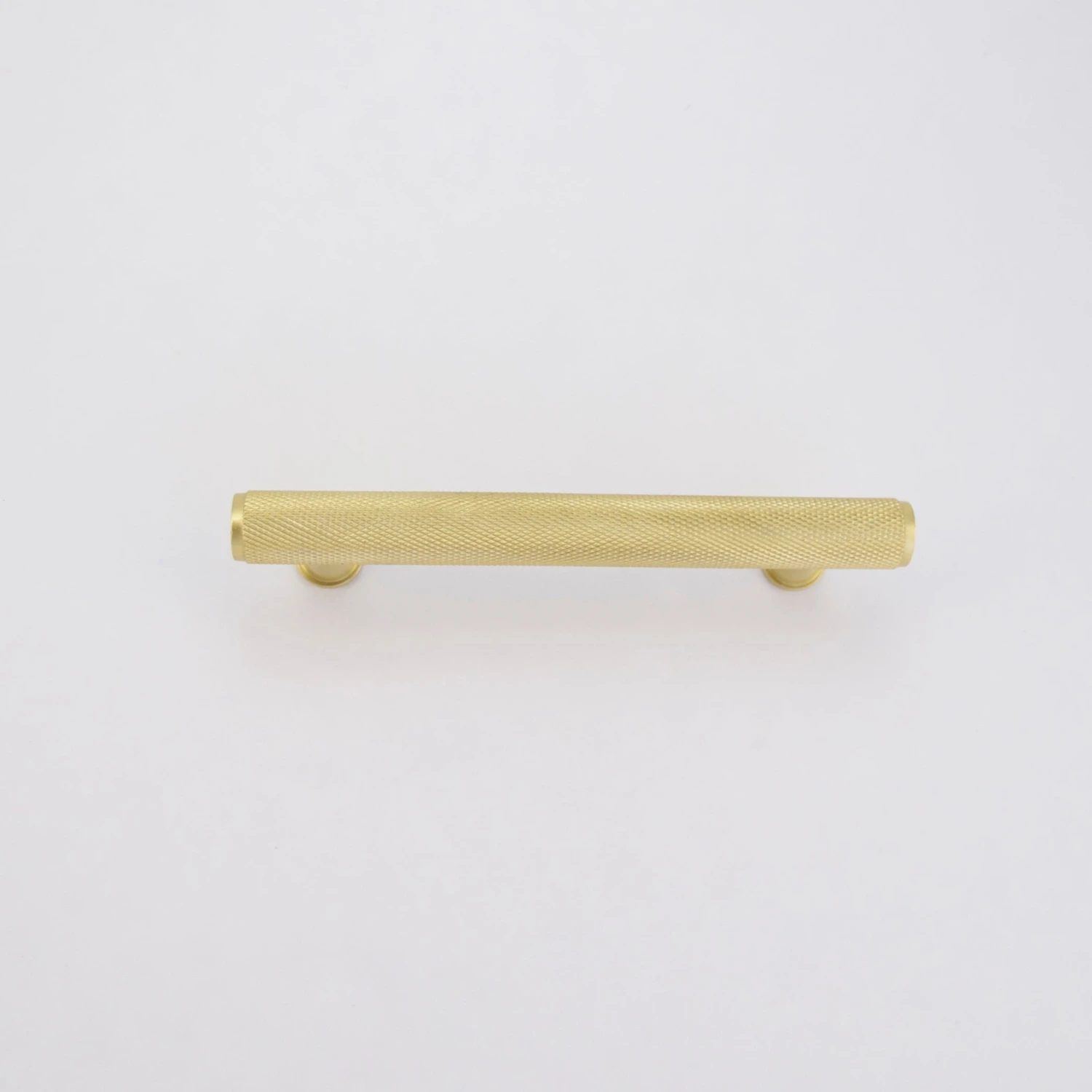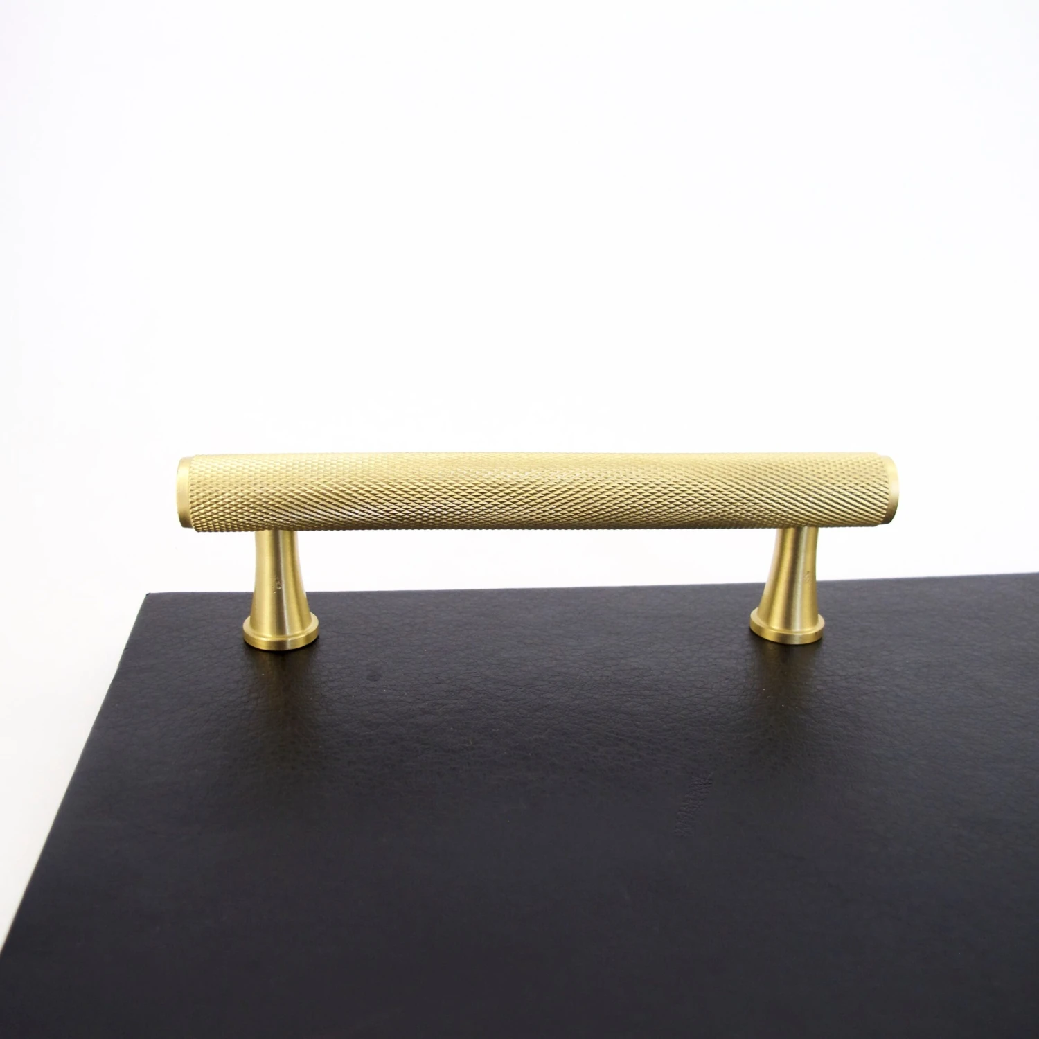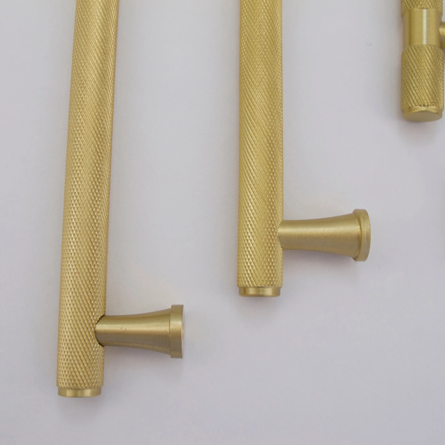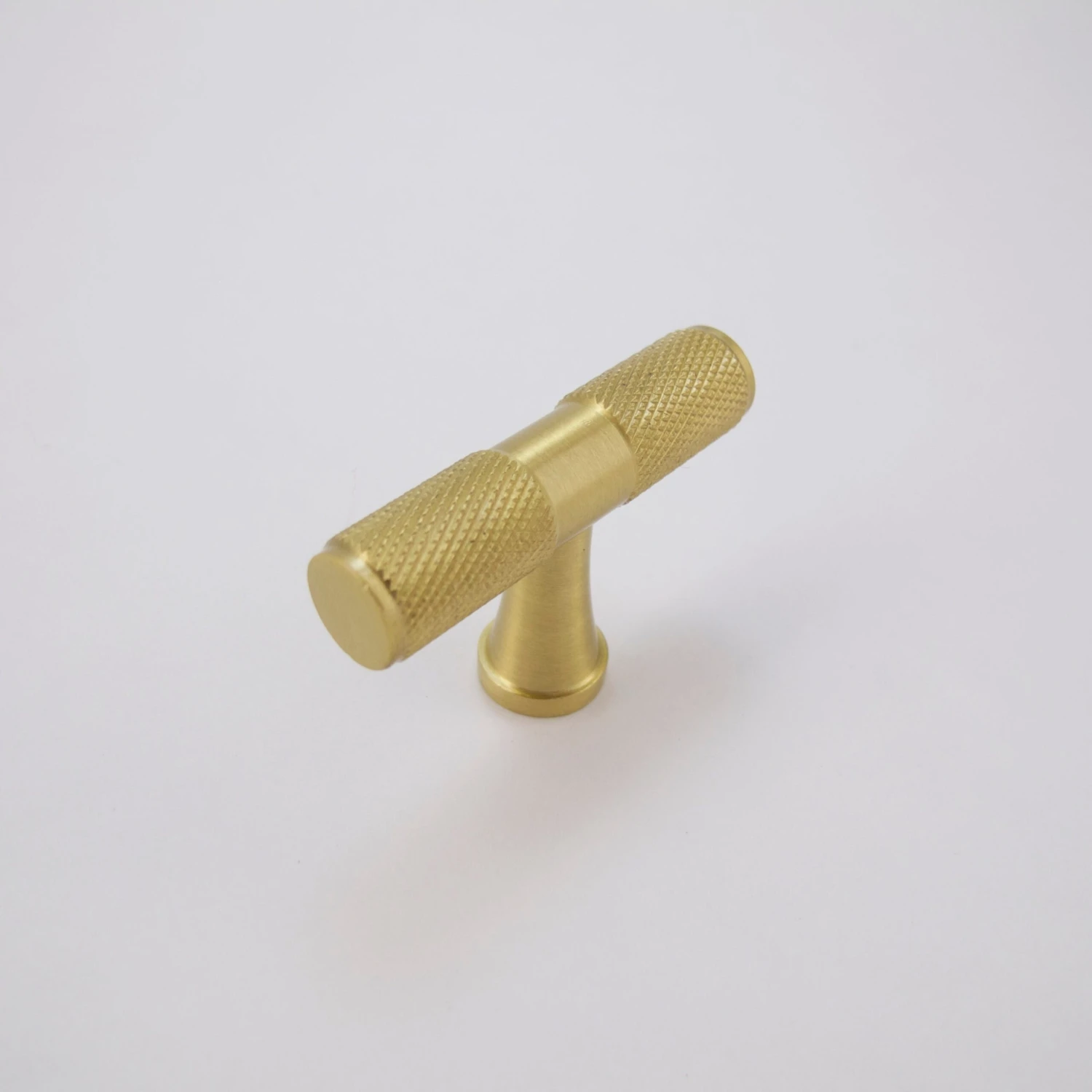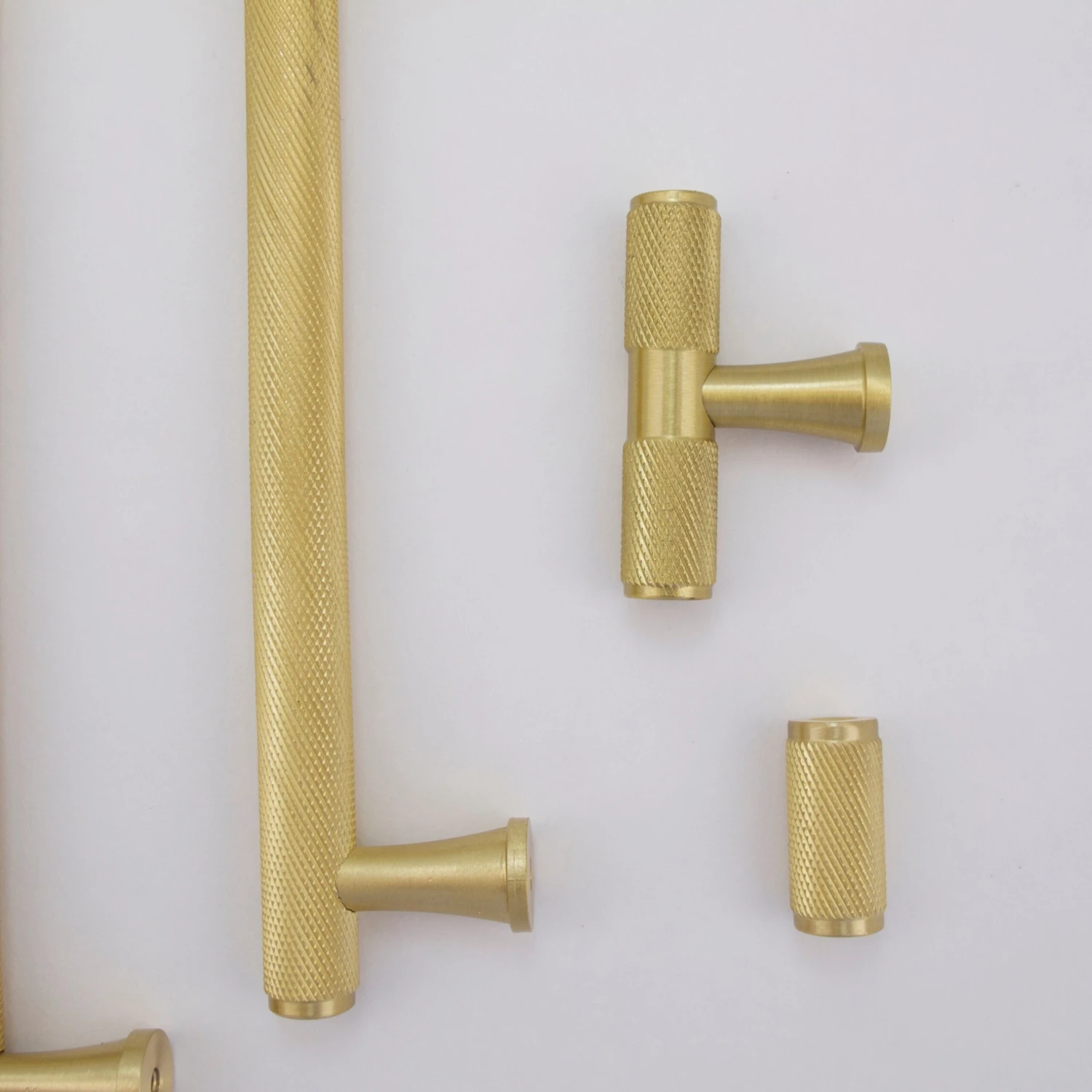 Knurled T-Bar Brass Handles. Stylish and modern, these handles are an instant upgrade, perfect for cabinets and drawers.  The combination of solid brass and matte black with a knurled texture is stunning and oh-so-chic.Â