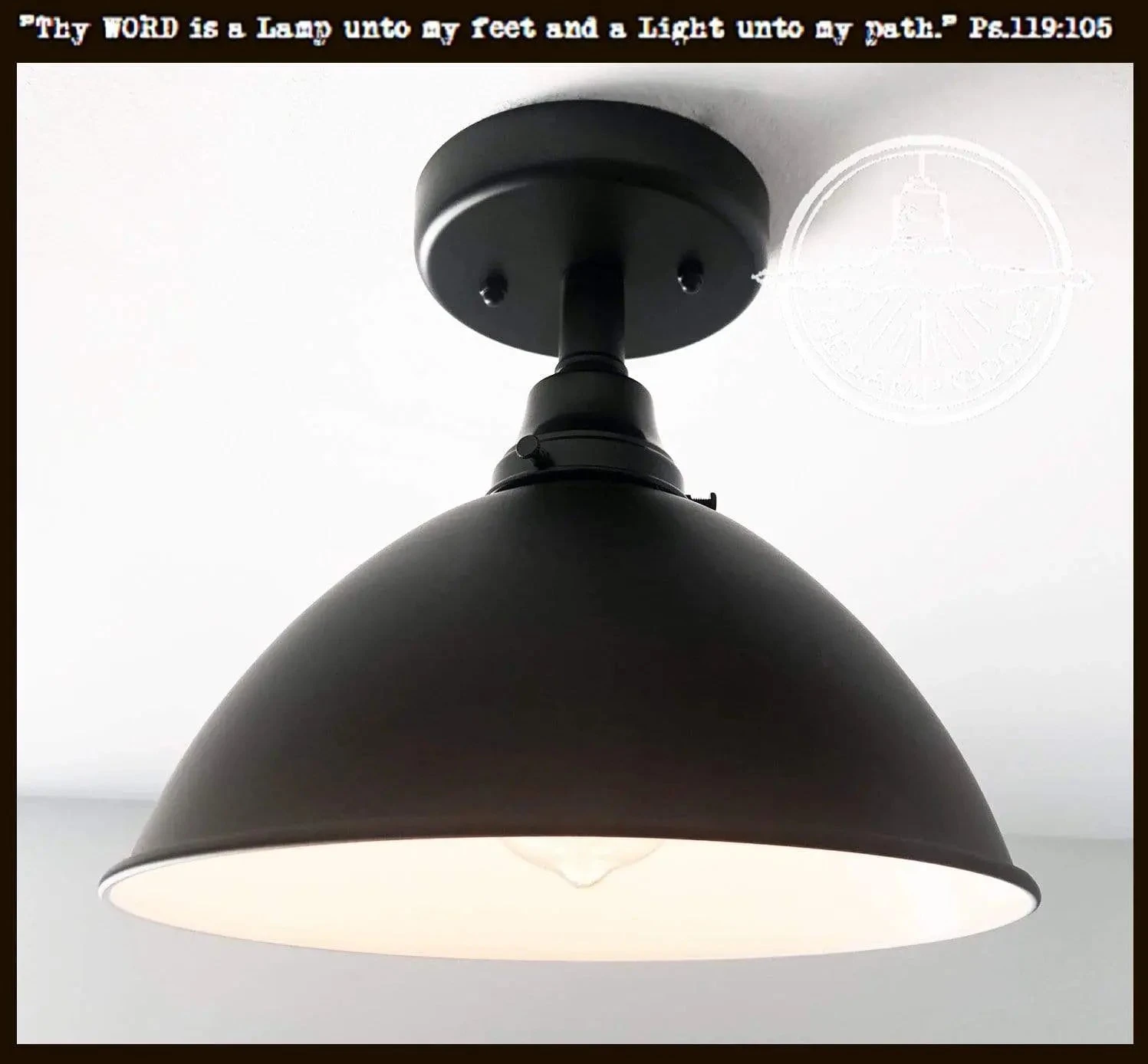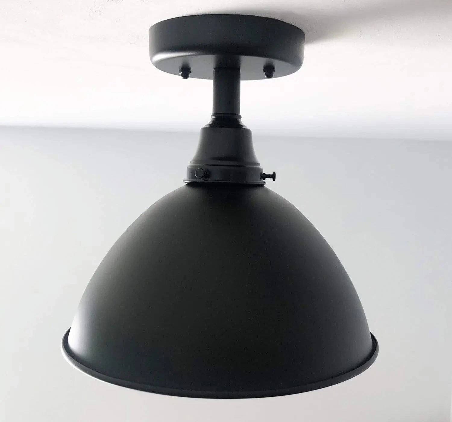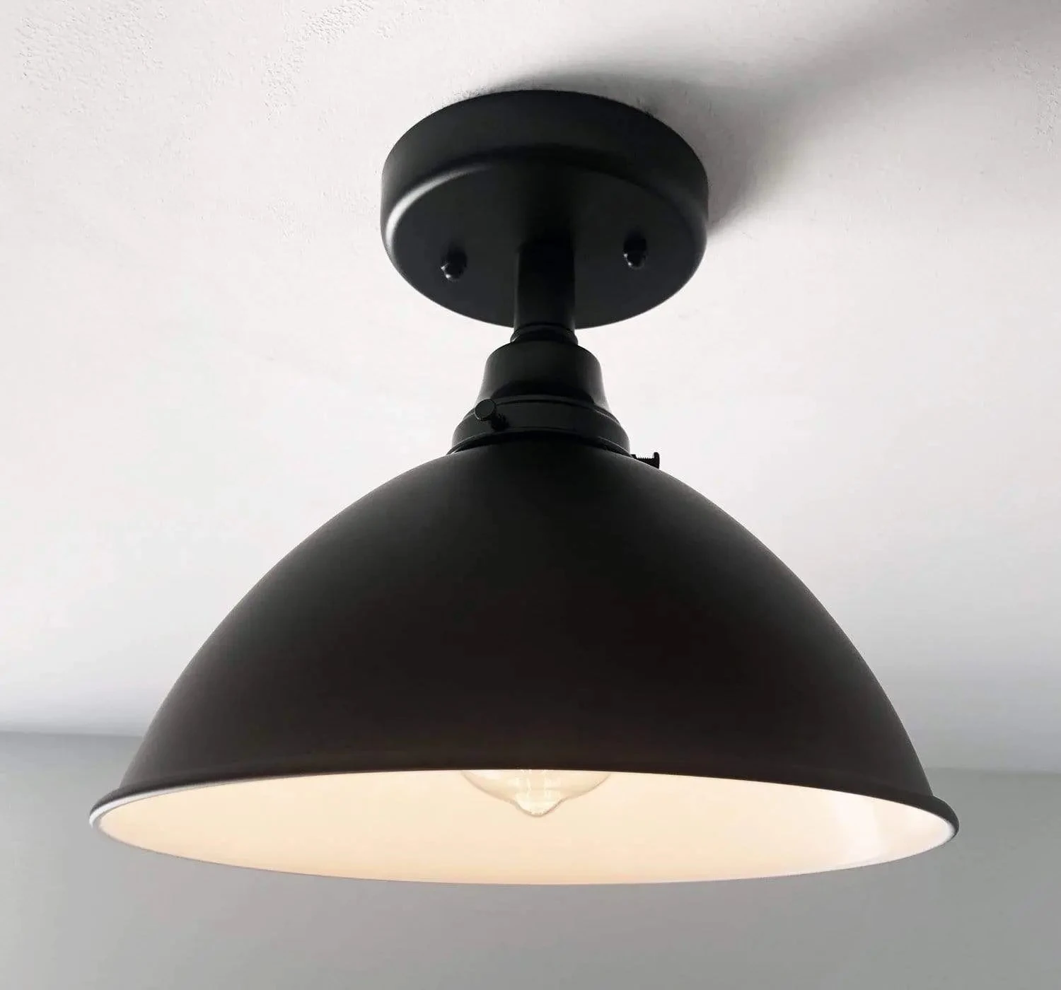 Complete your modern Farmhouse ceiling light style ideas with this timeless black enamel lighting fixture. The sleek shape makes this flush mount light easy to live with…its timeless.