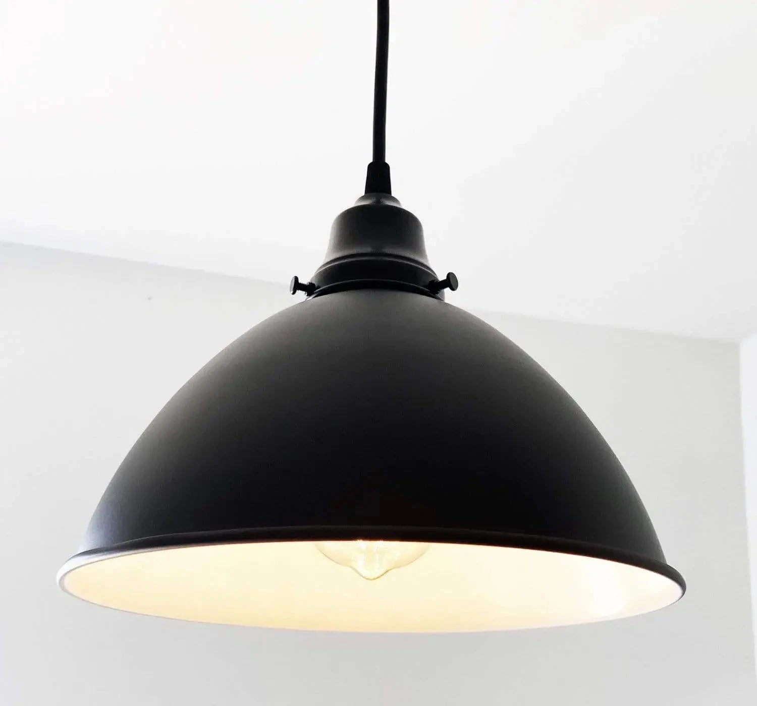 Complete your Farmhouse decor with this timeless Black pendant light. Created with a large enamel black shade it will give you a sleek, modern farmhouse lighting style to your kitchen or bathroom.