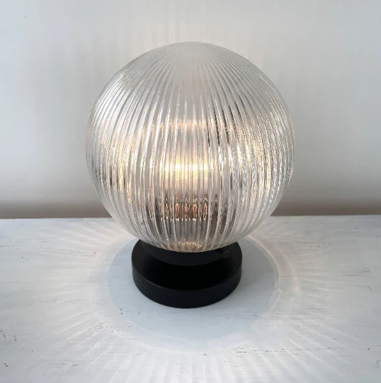Add a touch of modern illumination to your home with this antique holophane glass table light. It’s design is perfect for displaying for gently brightening the space without staring directly at a light bulb. Look how the factory inspired glass scatters light on the table & desk surface. So striking!