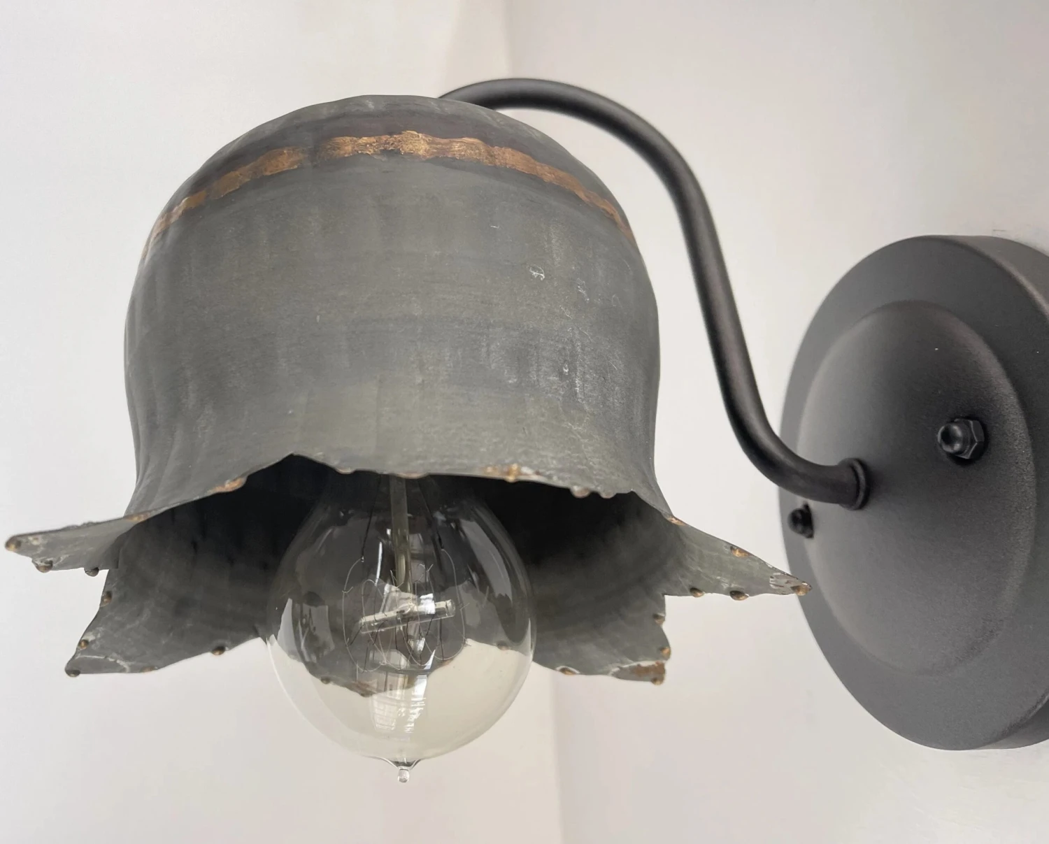 Finish that Farmhouse bedroom or bathroom lighting style with these organic shaped, lotus flower galvanized metal wall sconces! Each farmhouse wall sconce light is handcrafted to give many years of enjoyment.