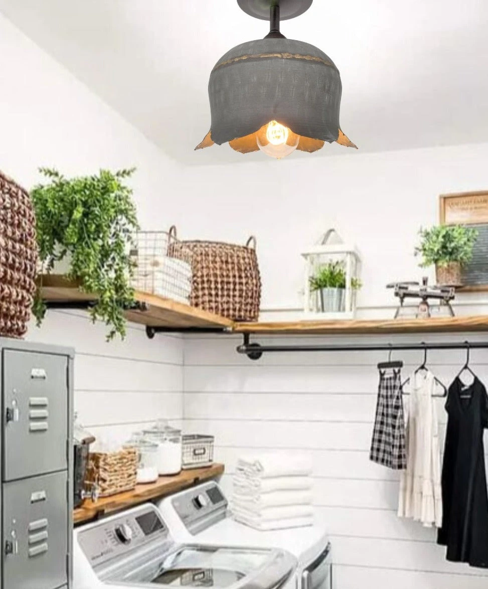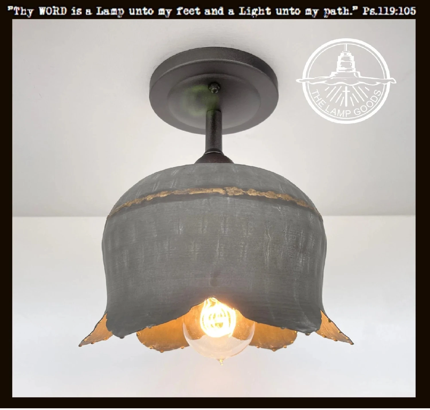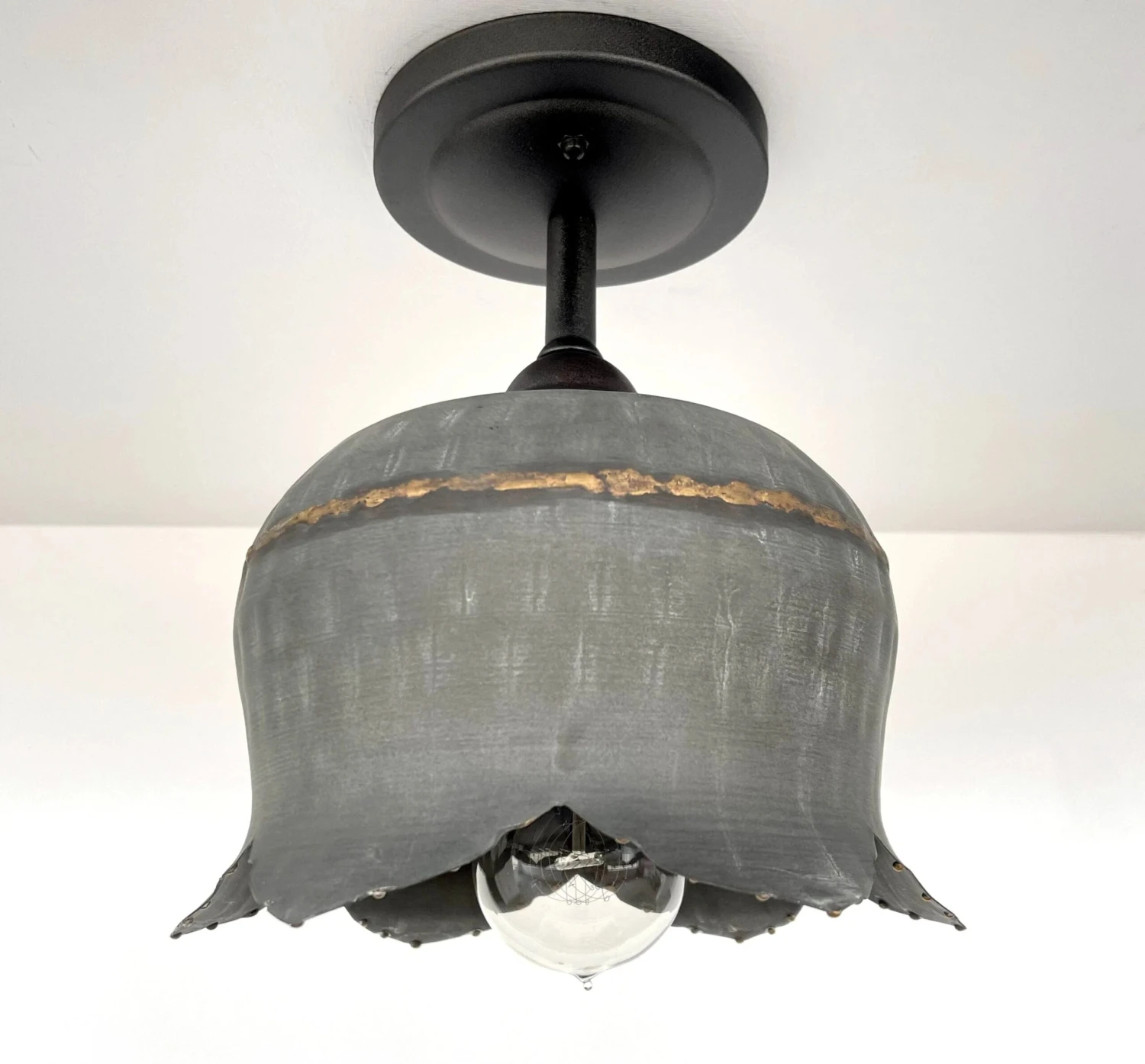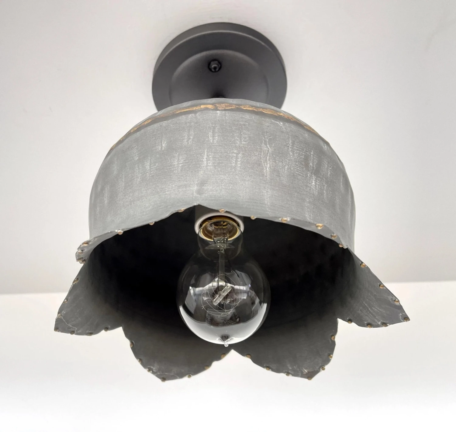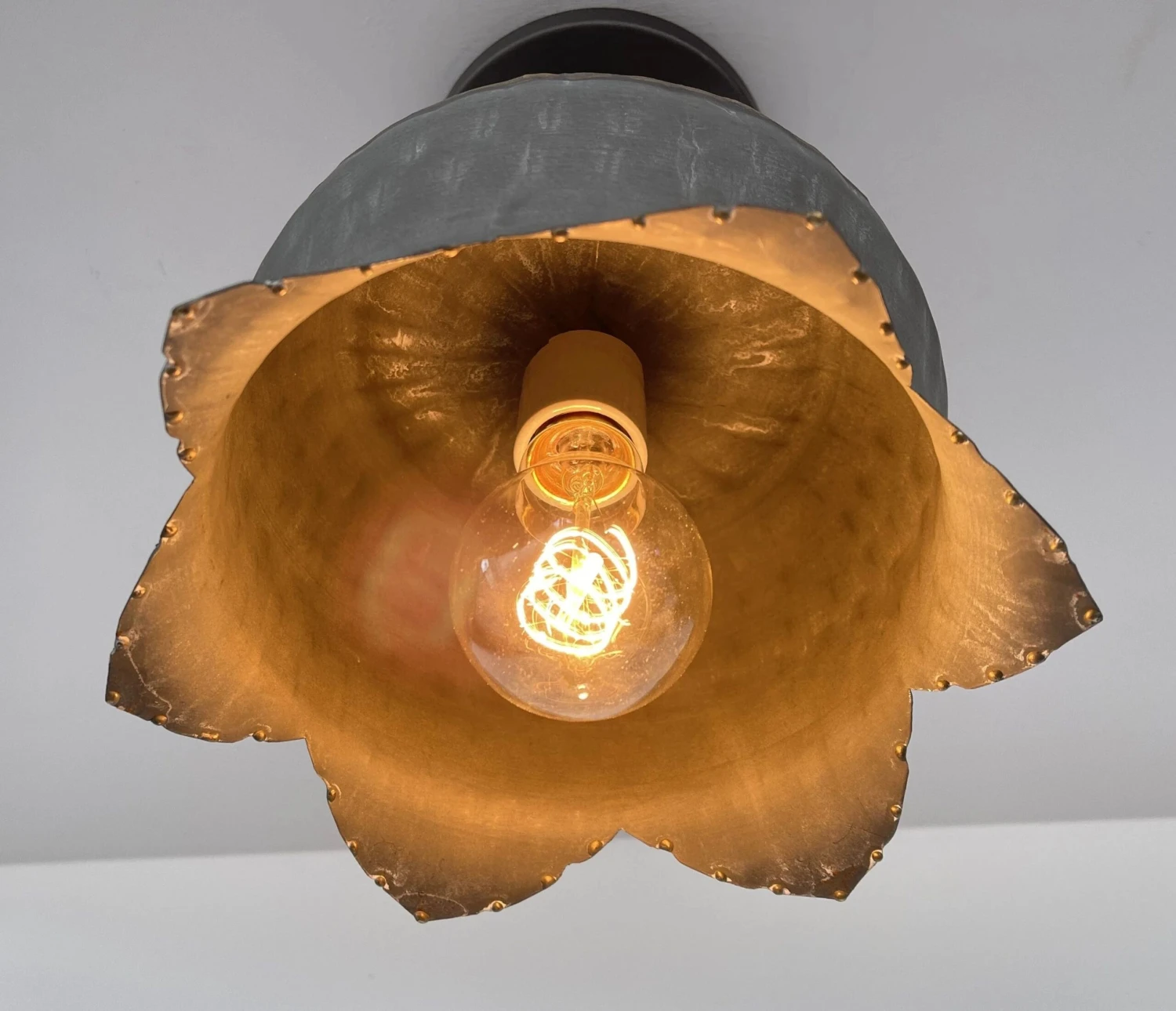 This galvanized ceiling light is so original with its organic, lotus flower design. As a farmhouse ceiling light fixture it can be quickly installed for your kitchen lighting or farmhouse bathroom light fixtures.