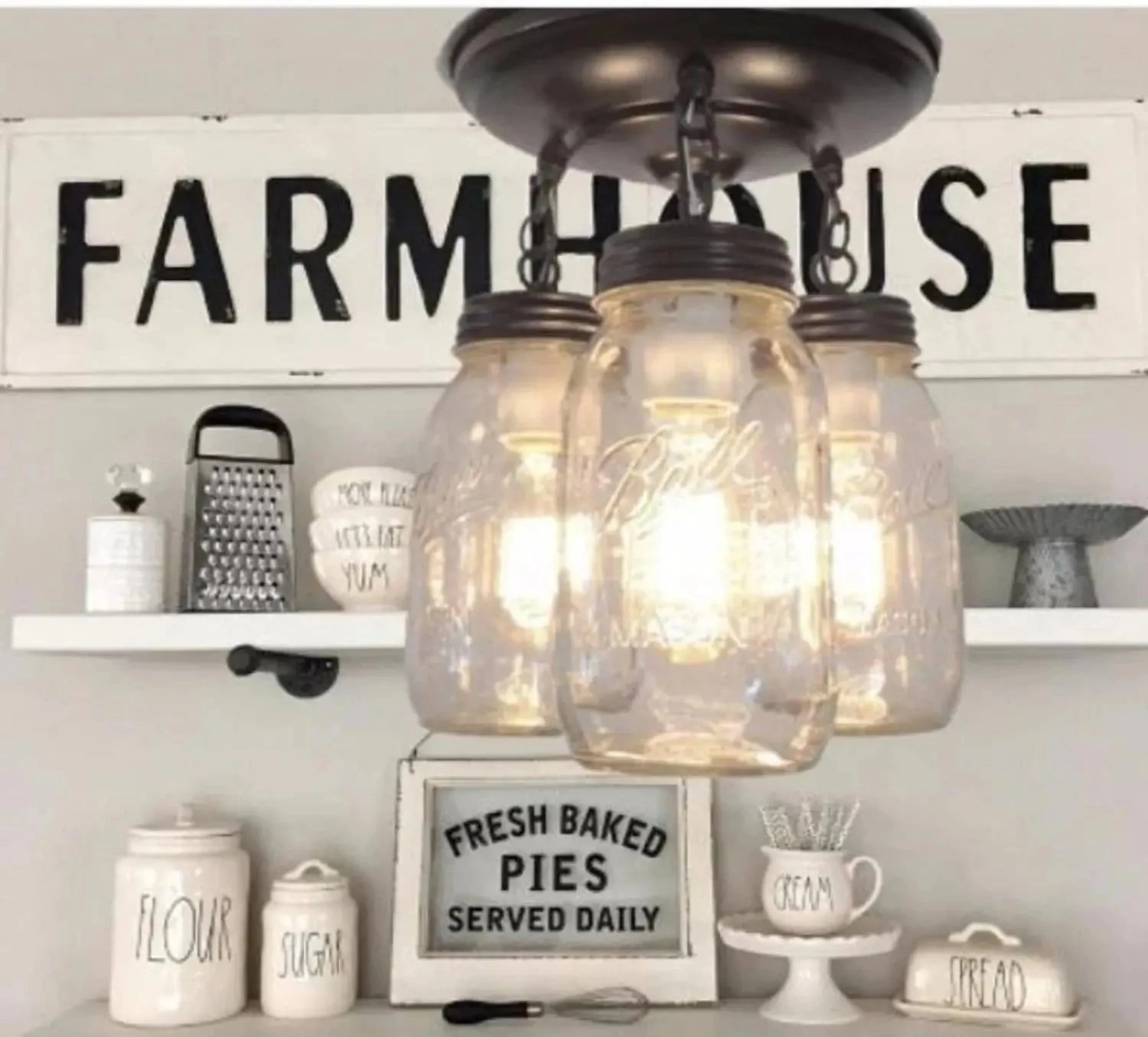Capture an authentic farmhouse style lighting fixture by choosing mason jar ceiling lights. They install easily and will illuminate your kitchen or bathroom space with country charm.