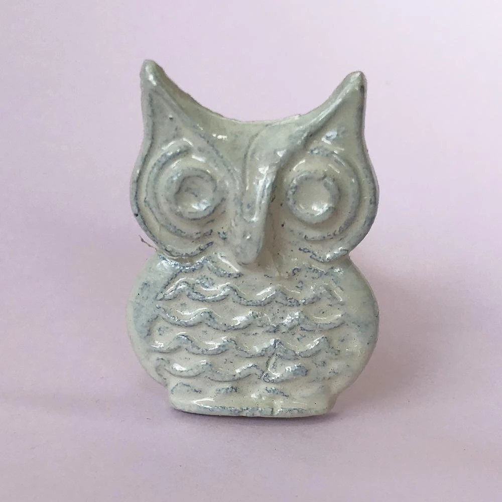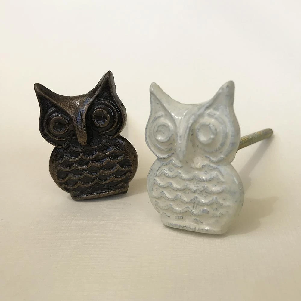 Charming Metal Owl Knobs, available in two colors – brass and washed white. Both are solid and sturdy metal. A lovely design sure to bring that extra “WOW” factor to your nursery or kids room. Handmade.Â