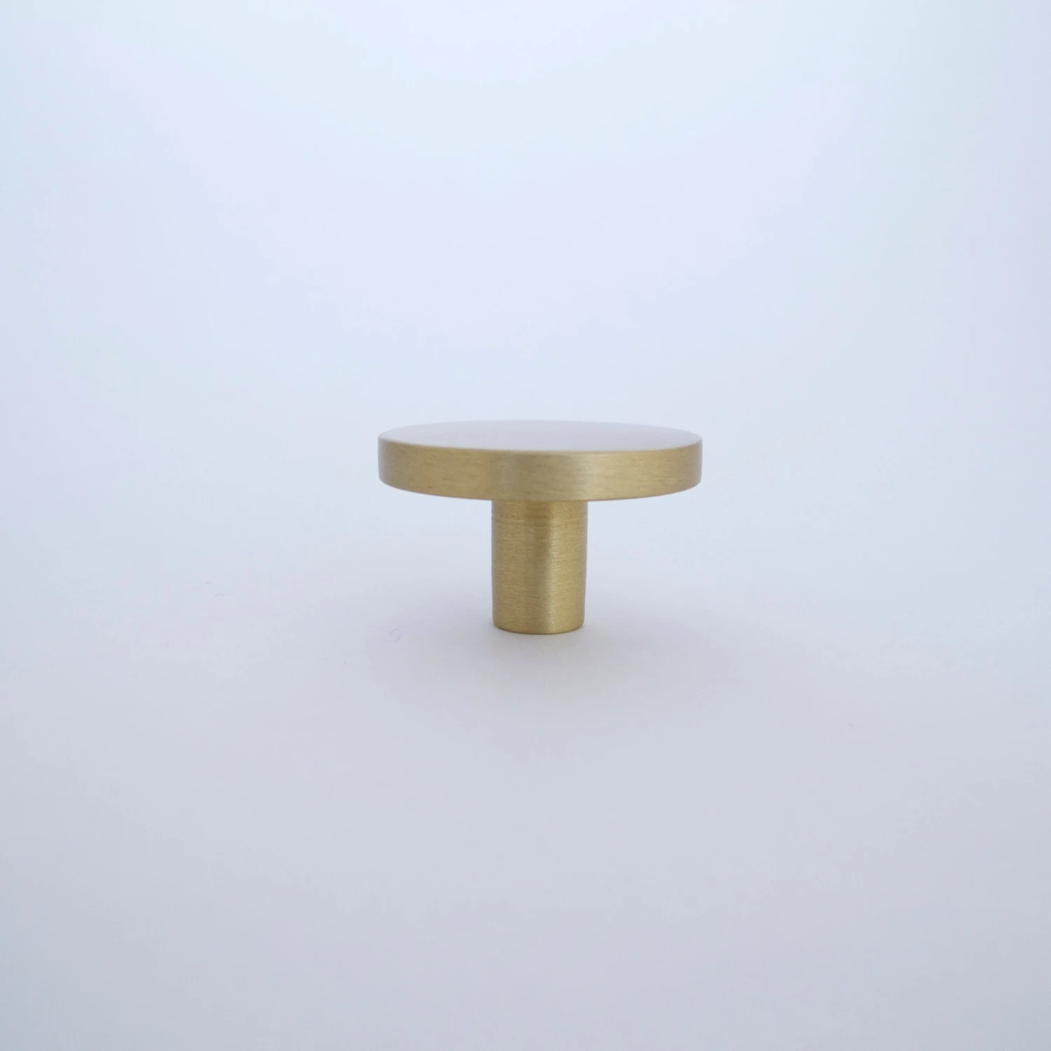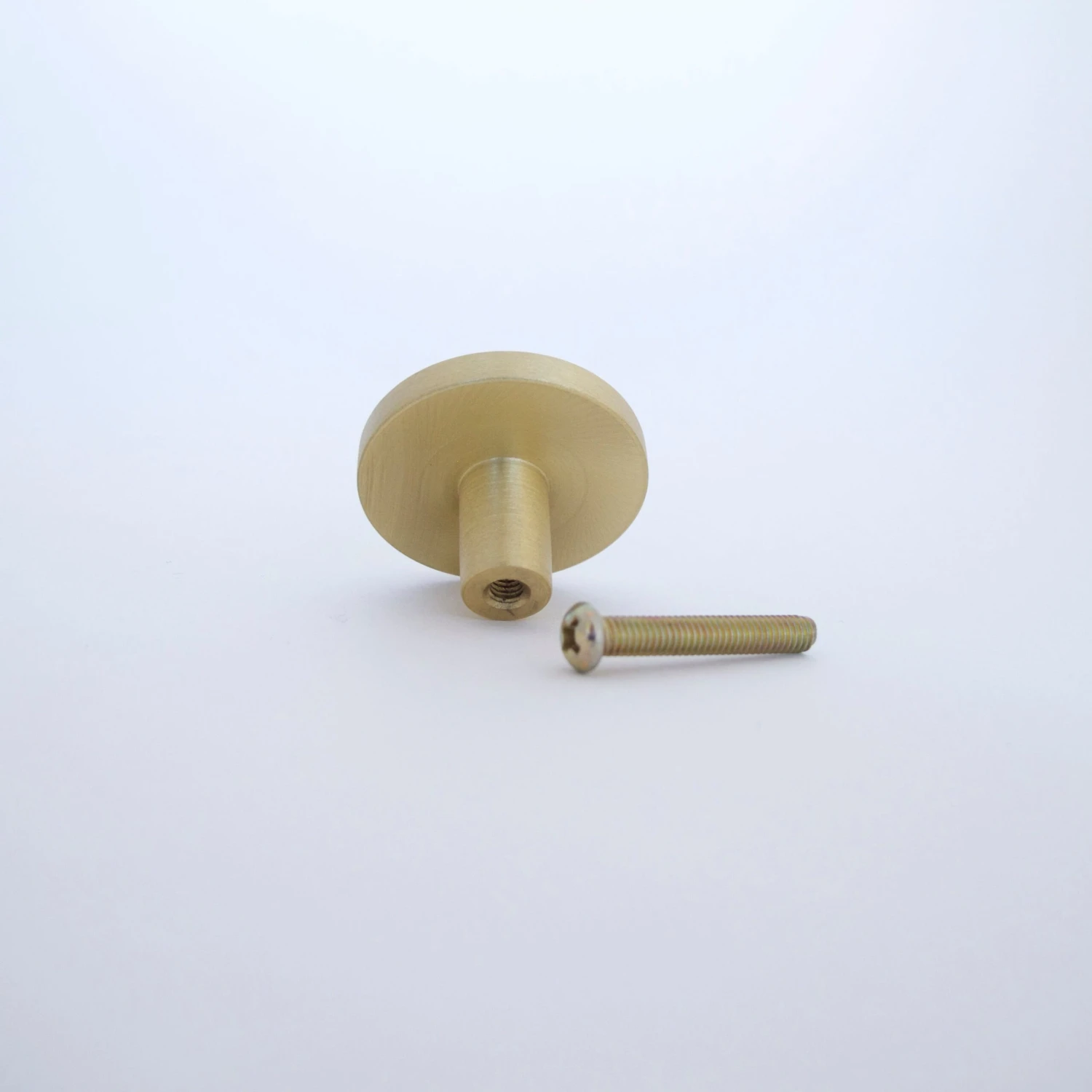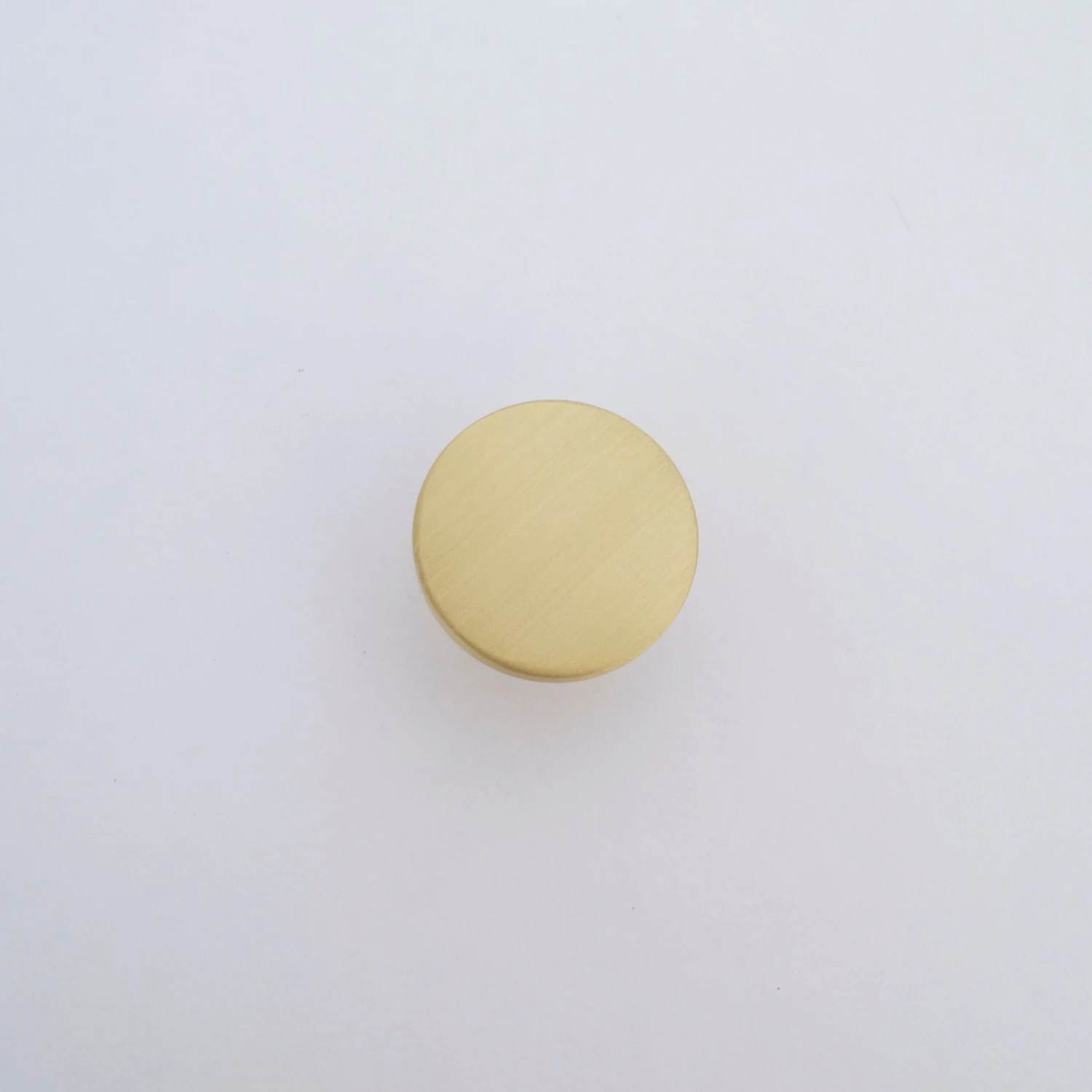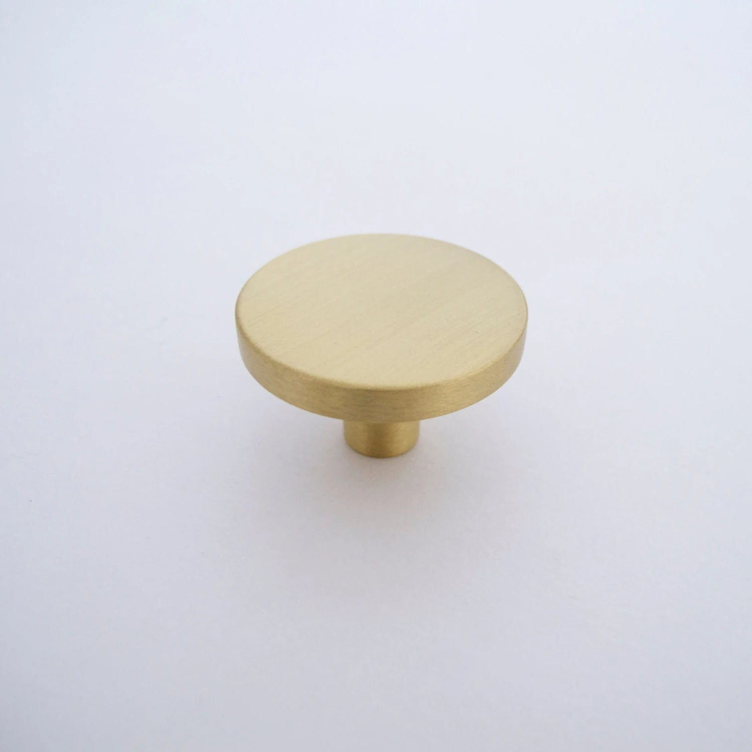 The Modern Brass Circle Knob. This knob is simple, elegant and modern. It would be a perfect knob for bathrooms and kitchens, adding sophistication and stylish edge. Made of solid brass, this knob is very sturdy and a high-quality finish and feel. Knobs are sold individually.