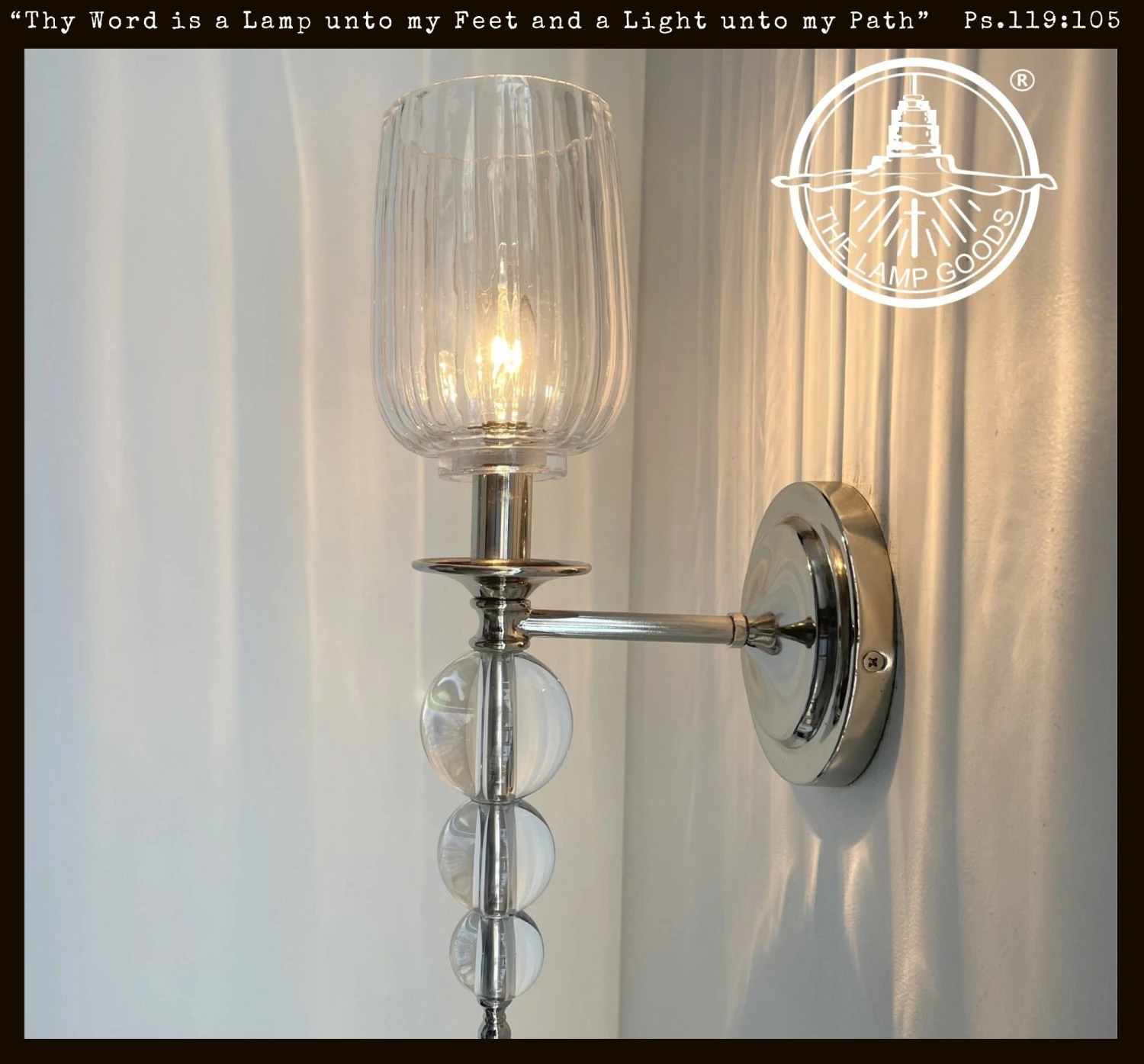 This large & beautiful glass wall sconce can be mounted anywhere you need light, drama & interest. Place this eye catching wall sconce light fixture on either side of your bed for the perfect atmosphere to complete your bedroom lighting ideas. Or in your master bathroom for added modern elegance