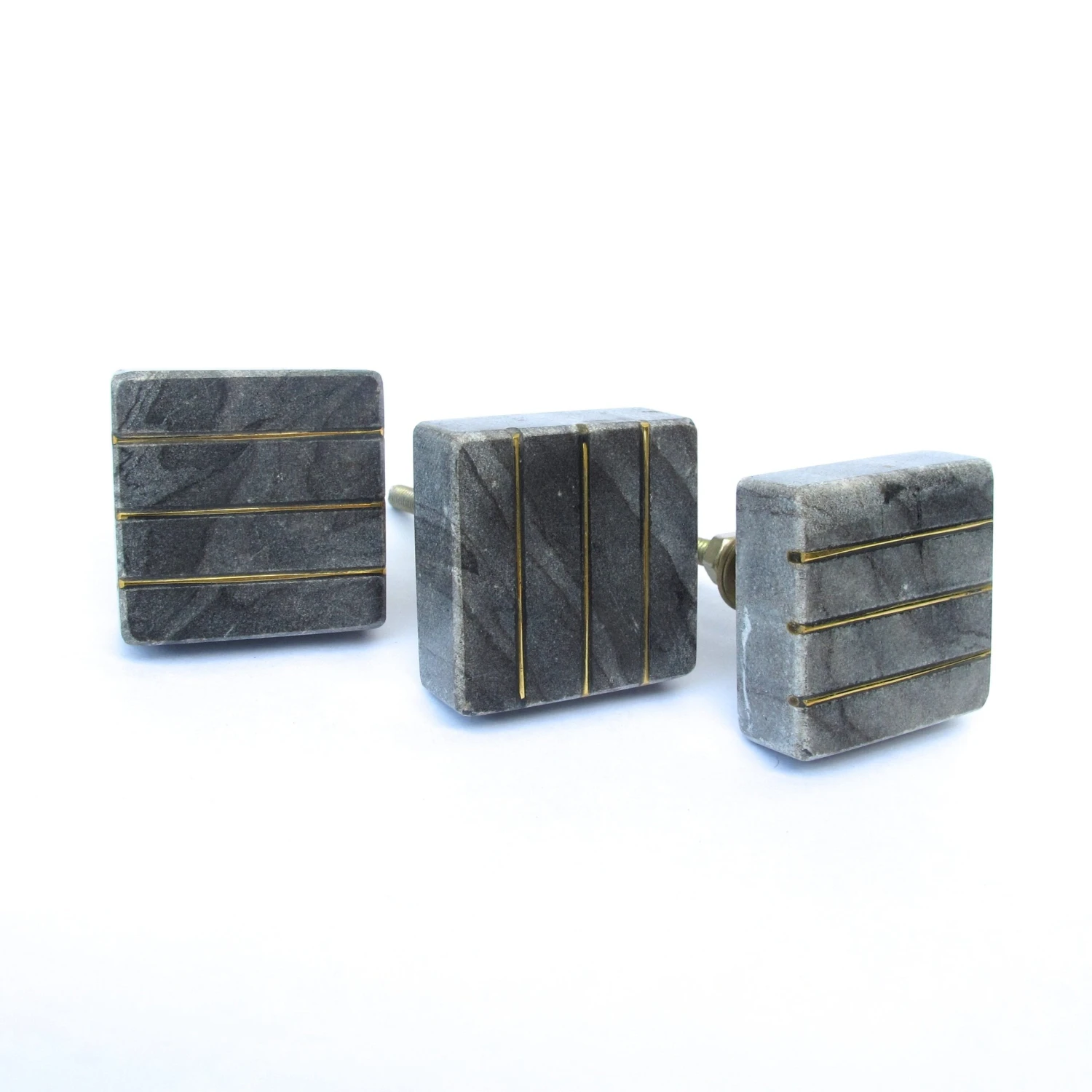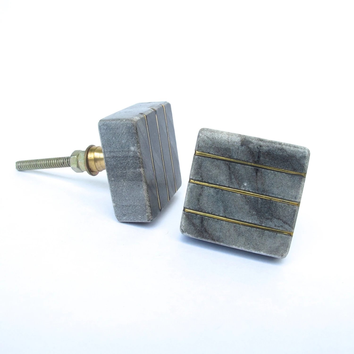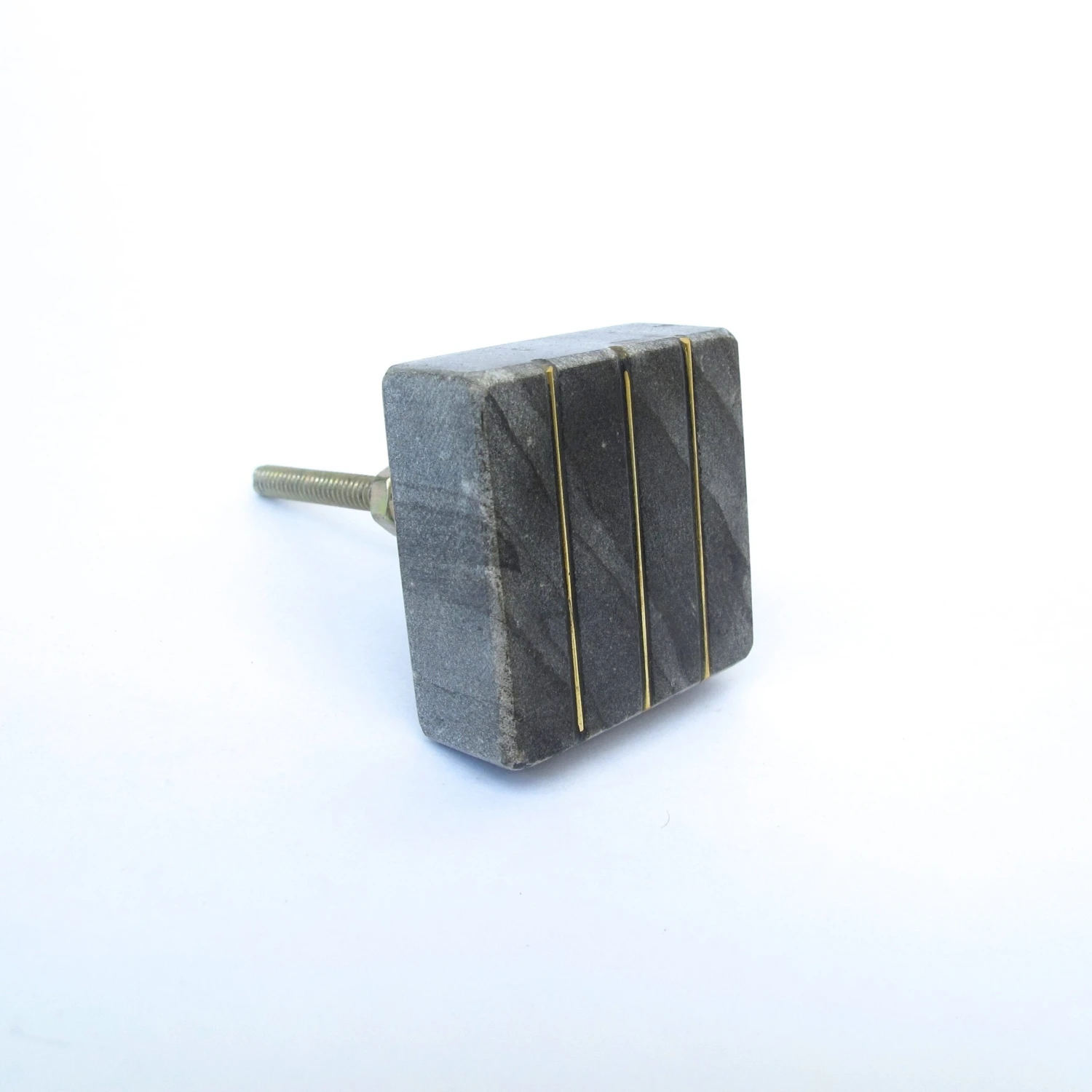 Modern Marble Square Knob has is a beautifully designed handmade drawer or cabinet knob. Simple, modern design with gold linear accent lines and brushed gold fittings. Made of grey marble, this knob is a gorgeous accent to any kitchen remodel.