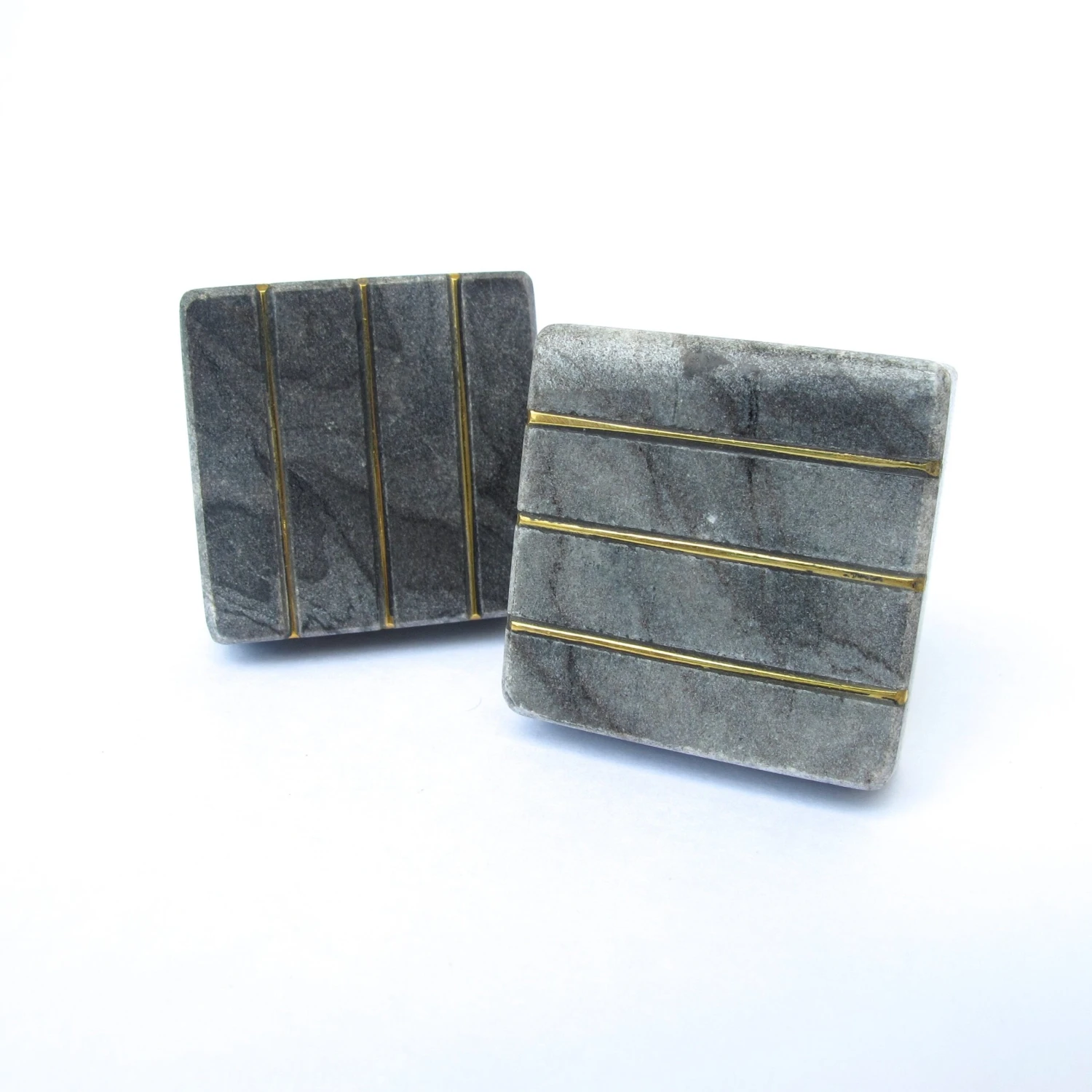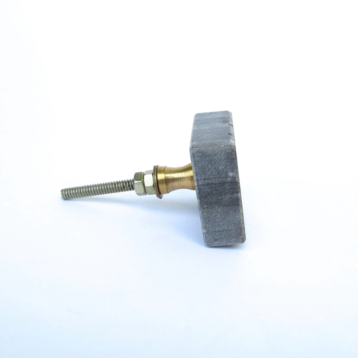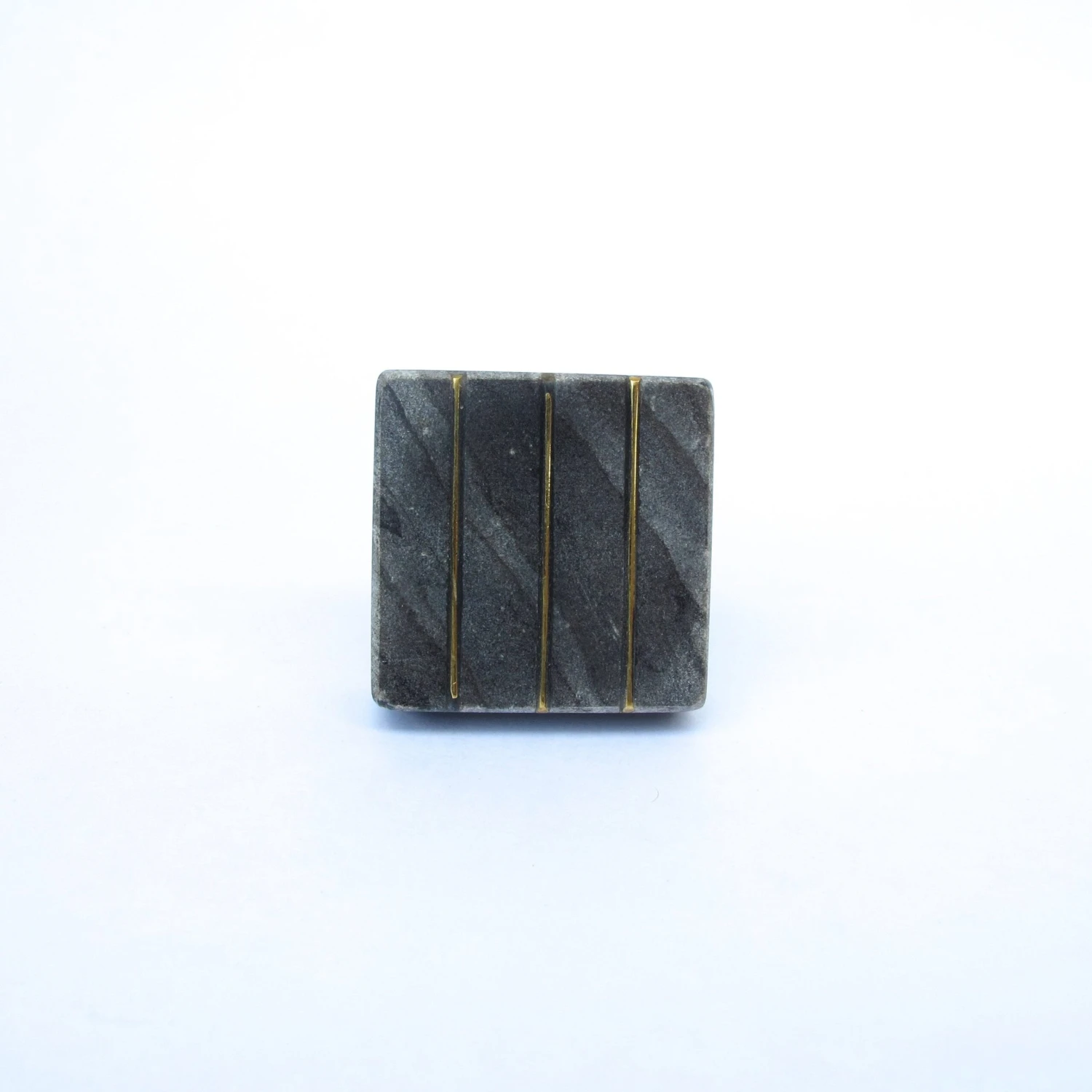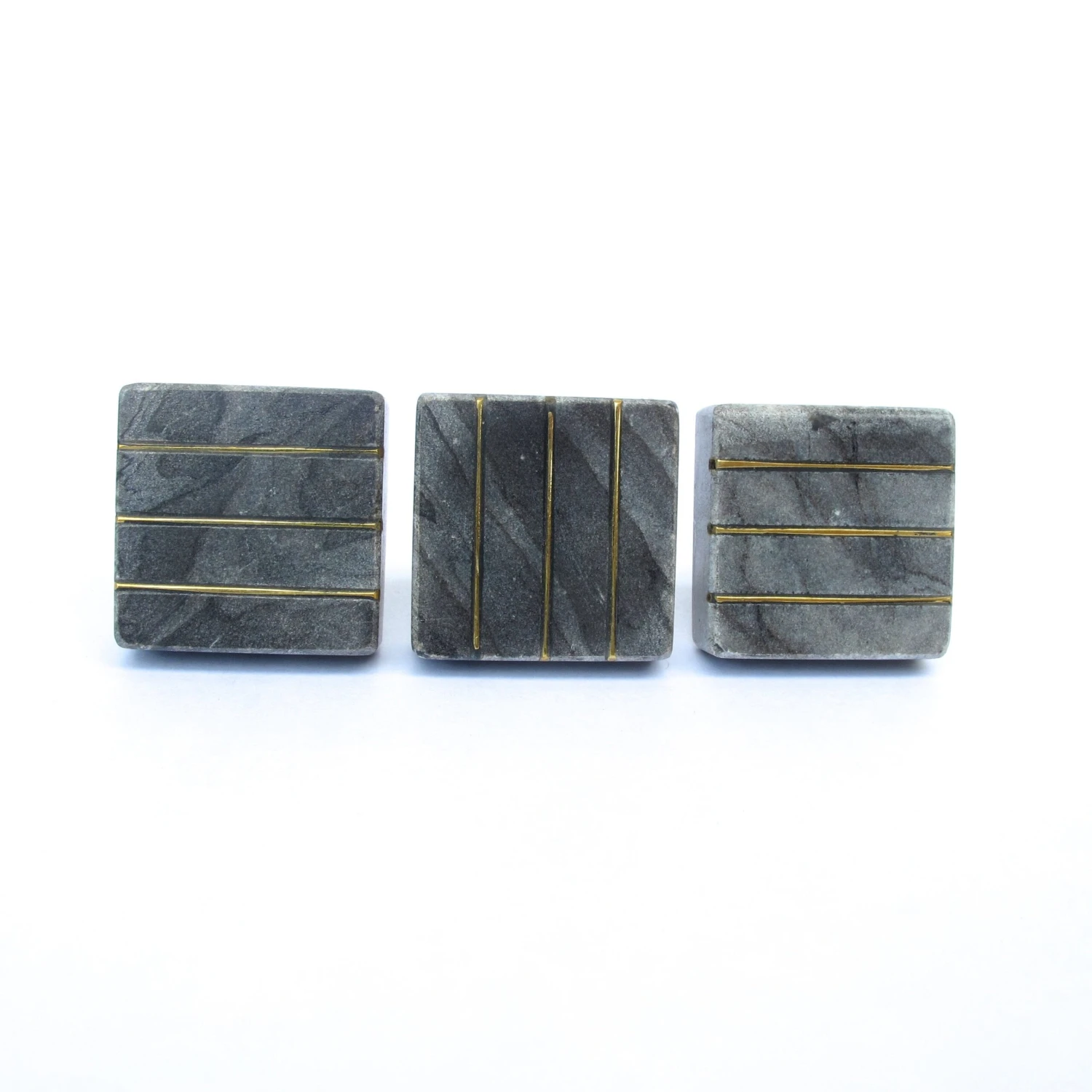 Modern Marble Square Knob has is a beautifully designed handmade drawer or cabinet knob. Simple, modern design with gold linear accent lines and brushed gold fittings. Made of grey marble, this knob is a gorgeous accent to any kitchen remodel.