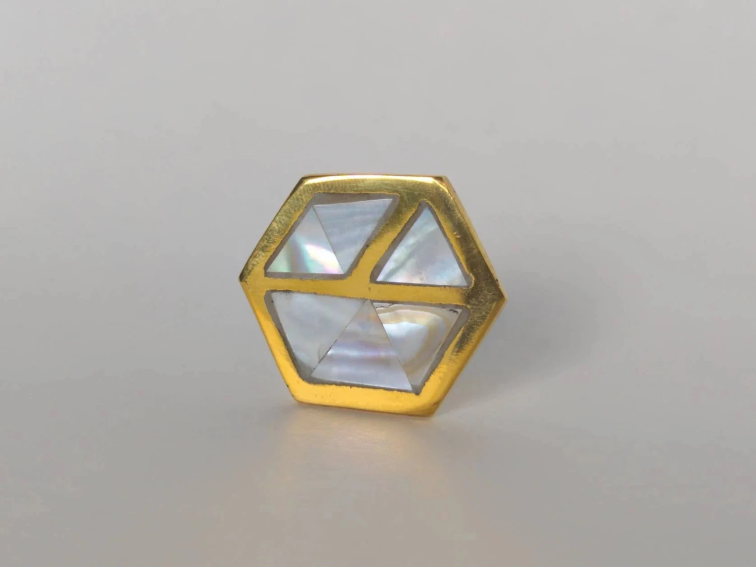 - Mother of Pearl Seashell, Gold Metal, Brass