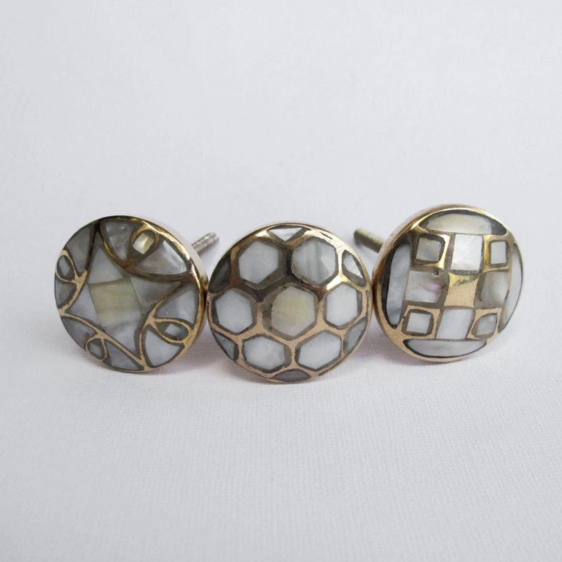 Tortoise shell design, made with brass, gold metal, and mother of pearl seashell. These gorgeous handmade knobs are both elegant and chic. The perfect drawer pull for your shabby chic home remodel!
