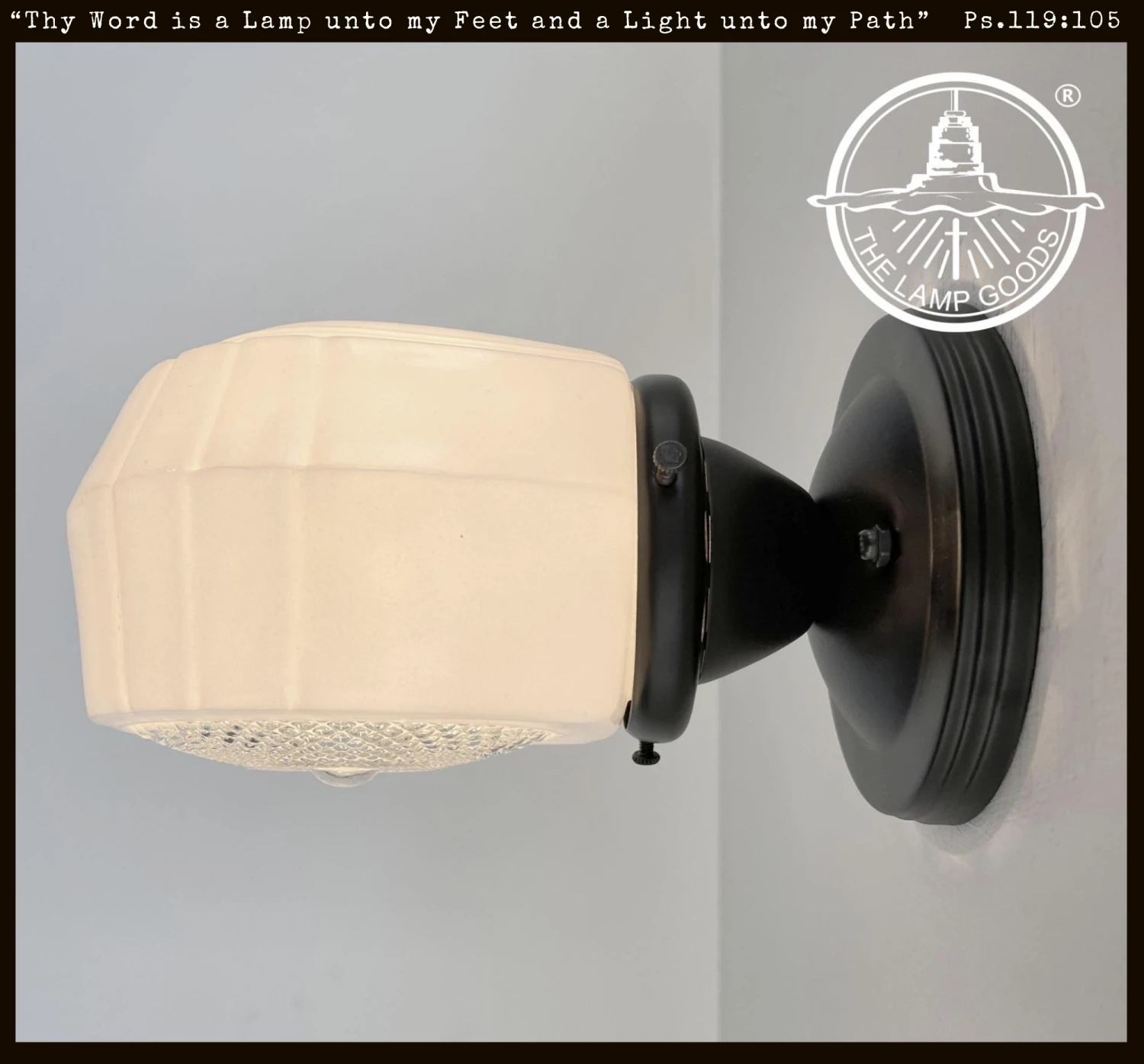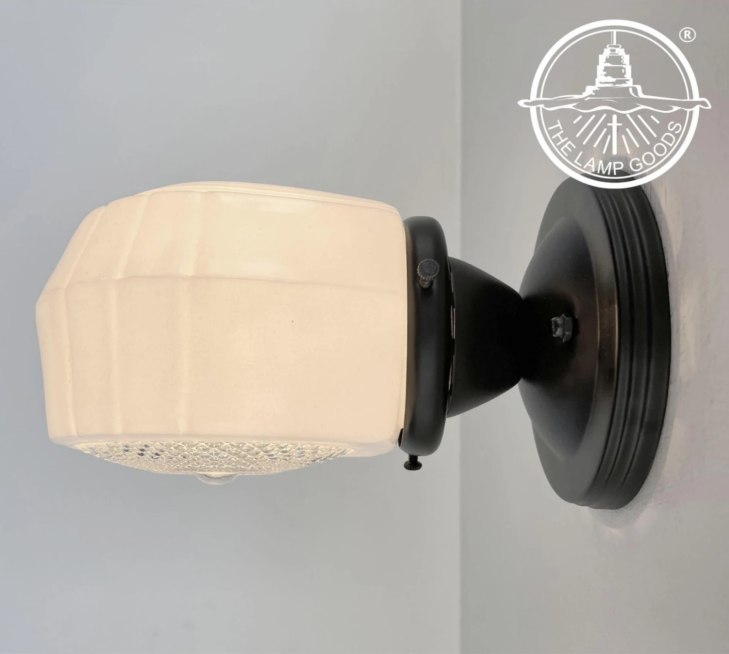 - Projects 8.5″ from wall – shade is 4.5″ x 6″ Authentic Mid Century White Milk Opal Glass Shade