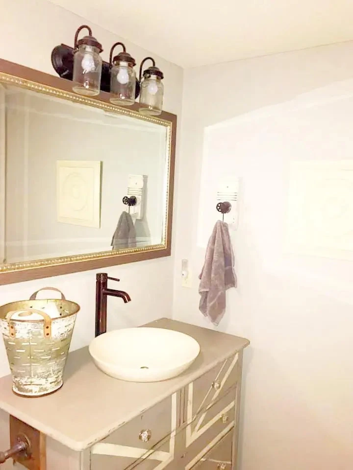Handsome & unique yet timeless. A Mason Jar Bathroom Vanity light featuring Vintage jars nearly 100 years old. Get your own piece of history with rescued canning jars handcrafted into a mason jar light fixture.