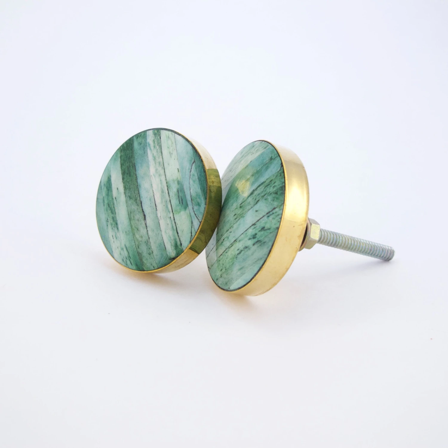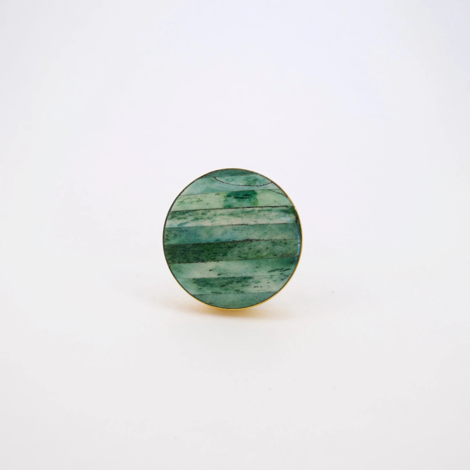Beautiful Sand Dunes Dresser or Cabinet Knob in jade green. Linear seashell design accented with gold. A beautiful cabinet pull or dresser knob. Handmade.