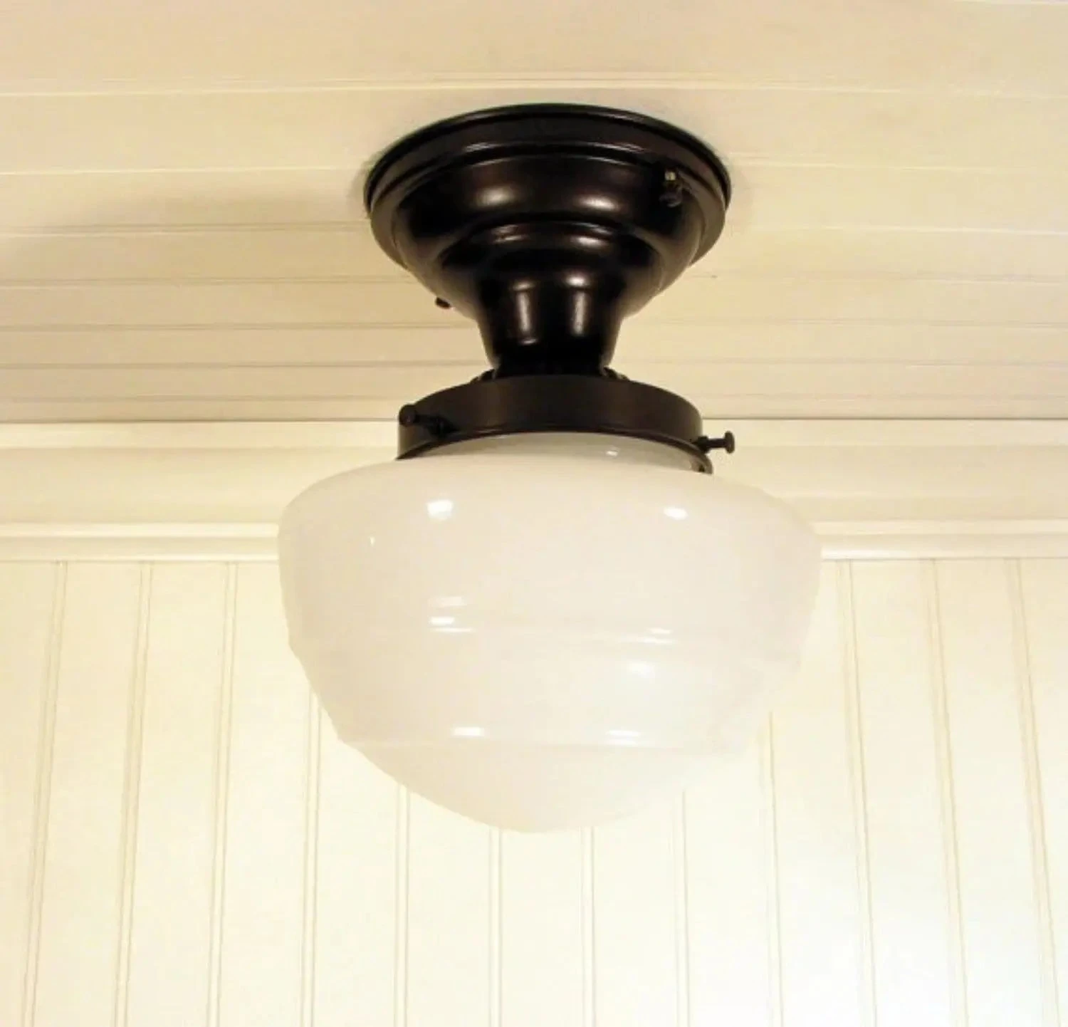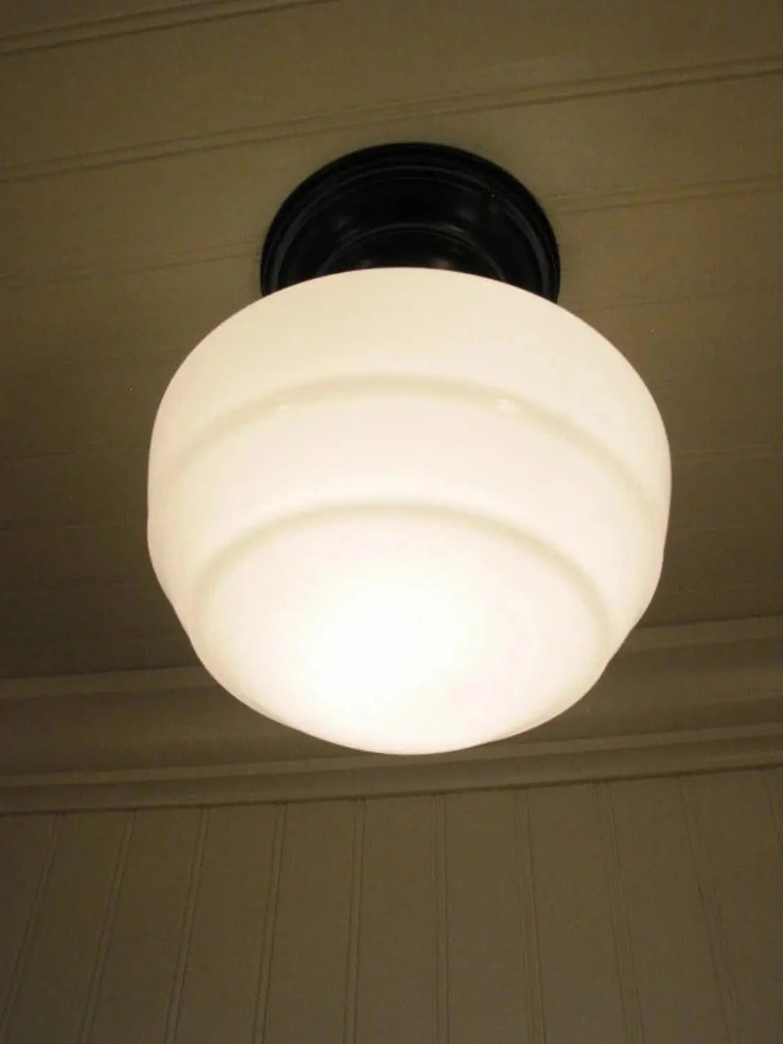 Look at the glow and definition of the shape, a perfect accent for a farmhouse or cottage kitchen. This mushroom light fixture is made of quality opal milk glass. As a milk glass ceiling light it will keep the space timeless.