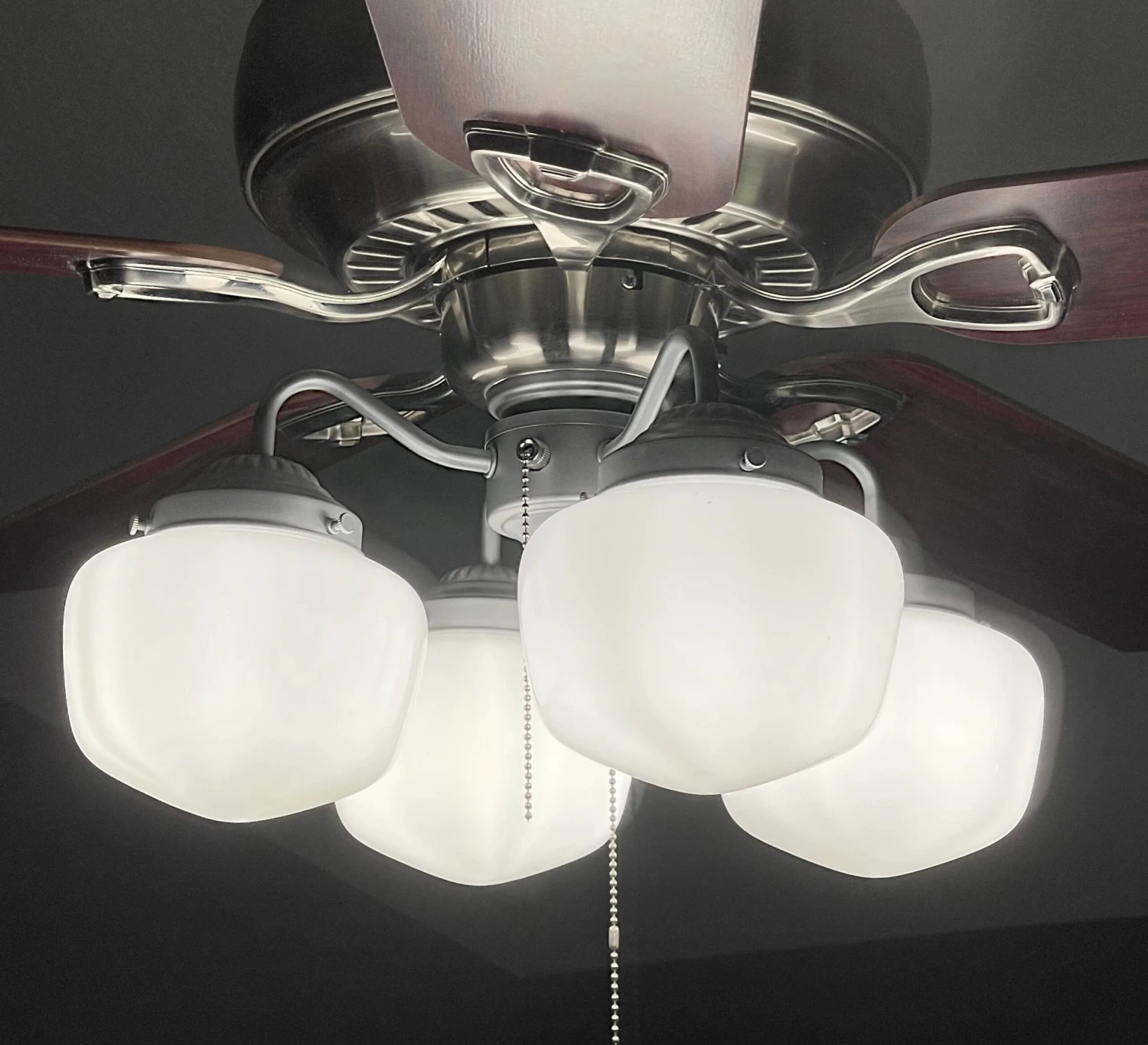 Makeover your ceiling fan light with a schoolhouse milk glass lighting fixture that will blend with your modern farmhouse style. With replacement globes your ceiling fan will have a fresh new look with a quick and easy installation.Â