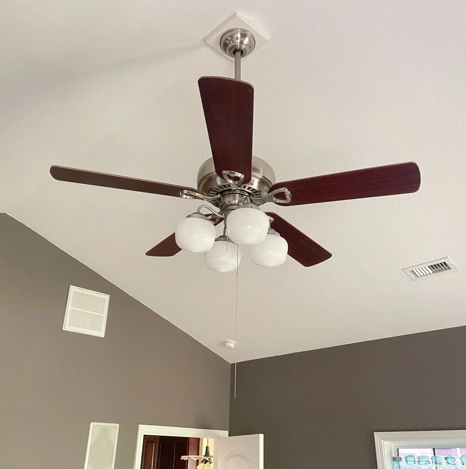 Please Note! For the easiest installation, choose a ceiling fan with a center hole/plug in the mounting plate as shown in the last photo. This will require the least amount of ‘modification’ to make the installation work.