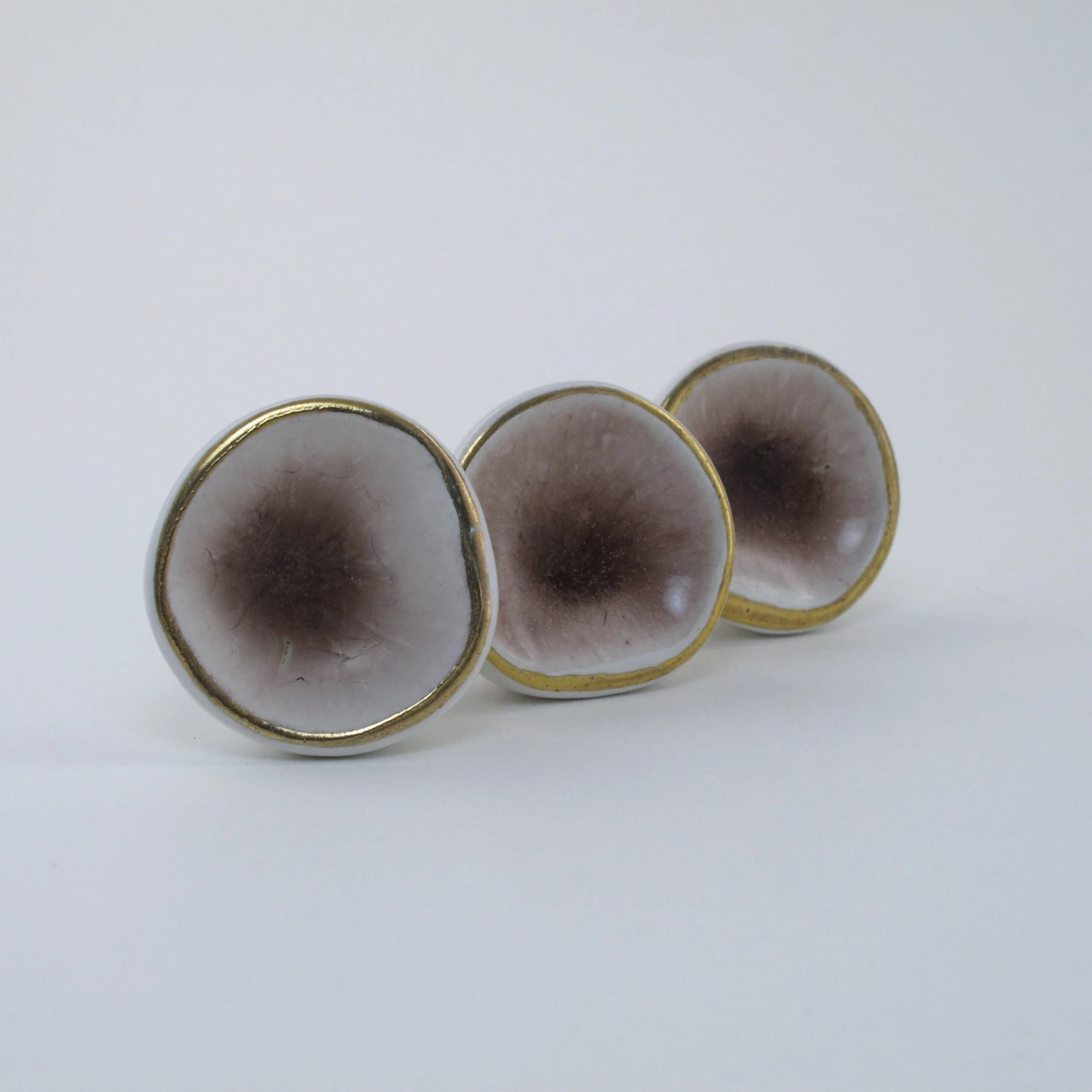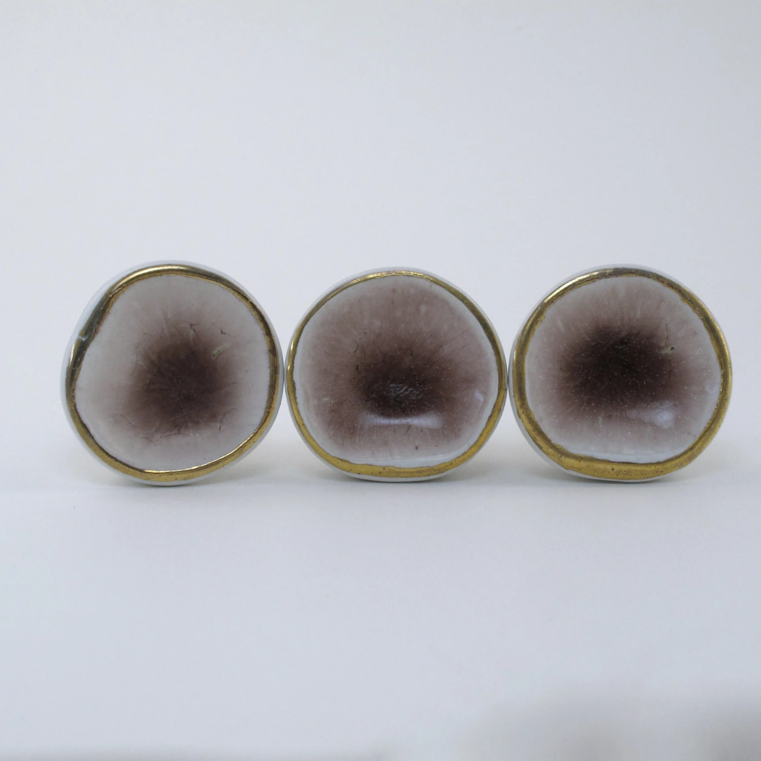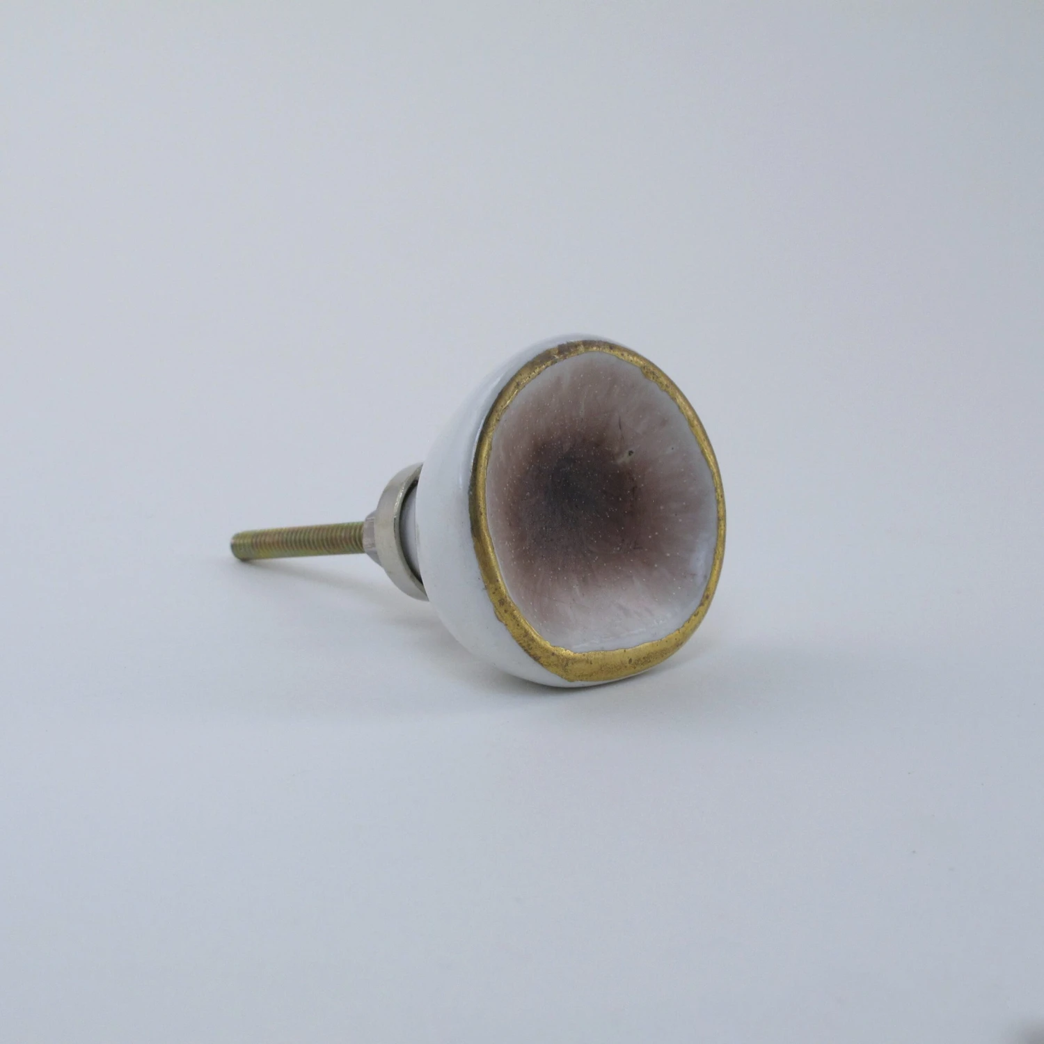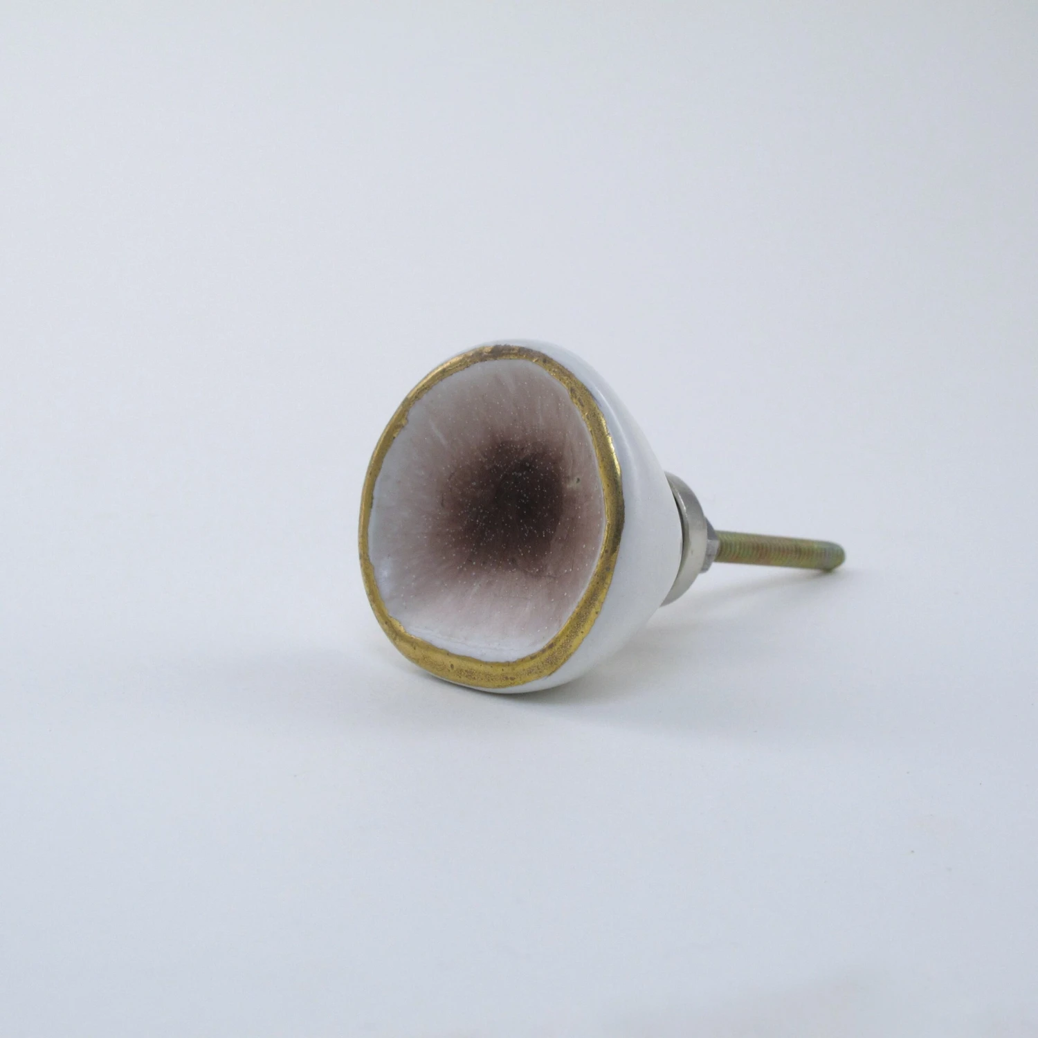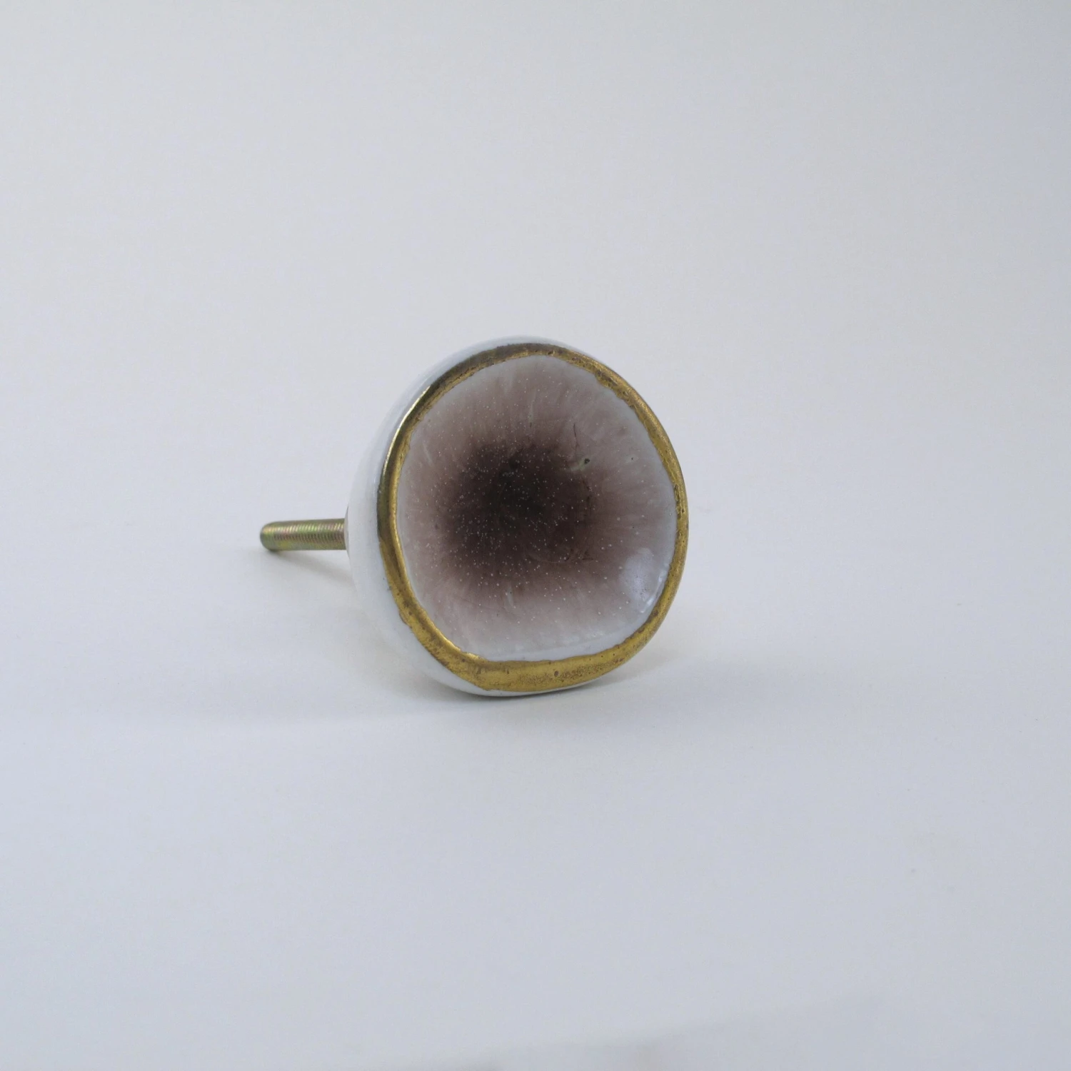 Our Sea Glass drawer pulls are handmade and have an artsy delicate crystalized center. Each knob is individually glazed to resemble sea glass. They are beautiful and completely unique. A perfect touch for any dresser, side table or cabinet. Now available in crystal amethyst (as shown in this listing). Also available in turquoise, grey, creme, and pink. Â