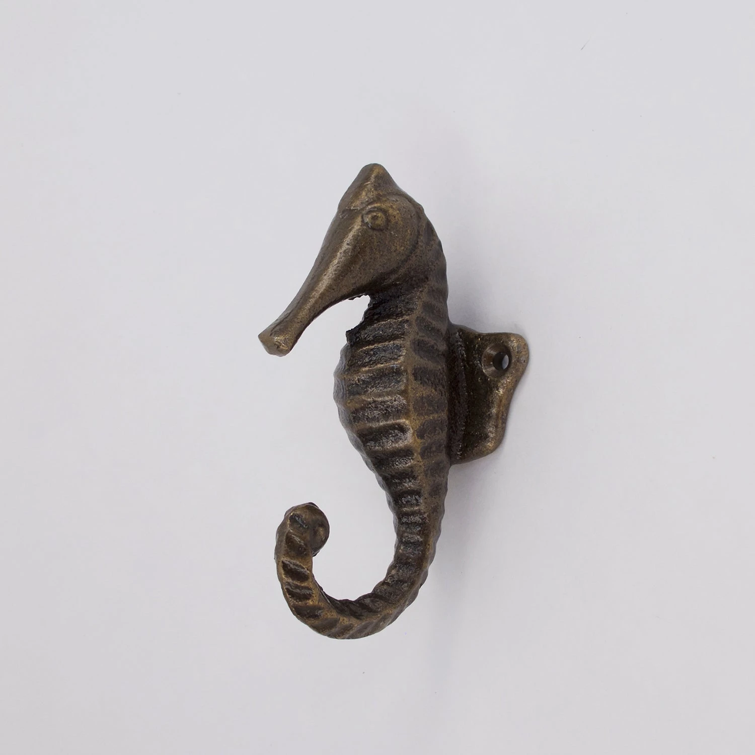 Bronze Seahorse Wall Hook. Beautiful and chic, this seahorse wall hook is the perfect statement piece for your modern coastal home. Solid metal, and very sturdy. Handmade.Â