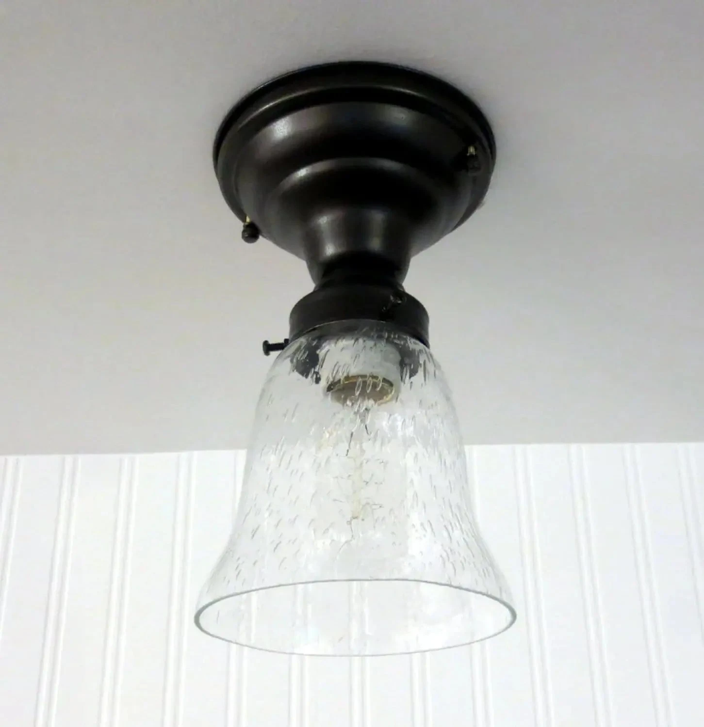 You’ll find seeded glass light fixtures are the right choice to blend styles from vintage to traditional for your bedroom ceiling lights. Installs quickly as flush mount ceiling lighting so your bathroom remodeling comes to an end.