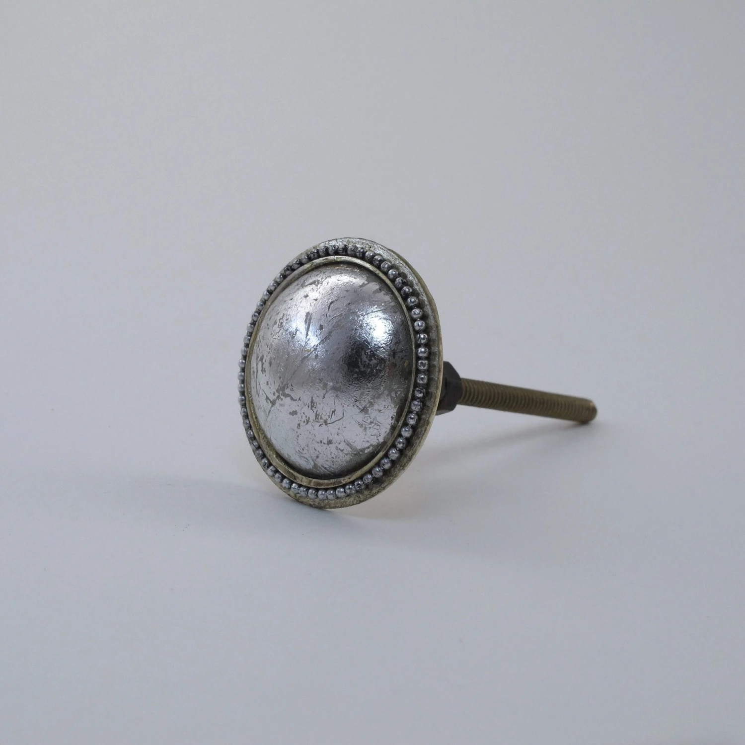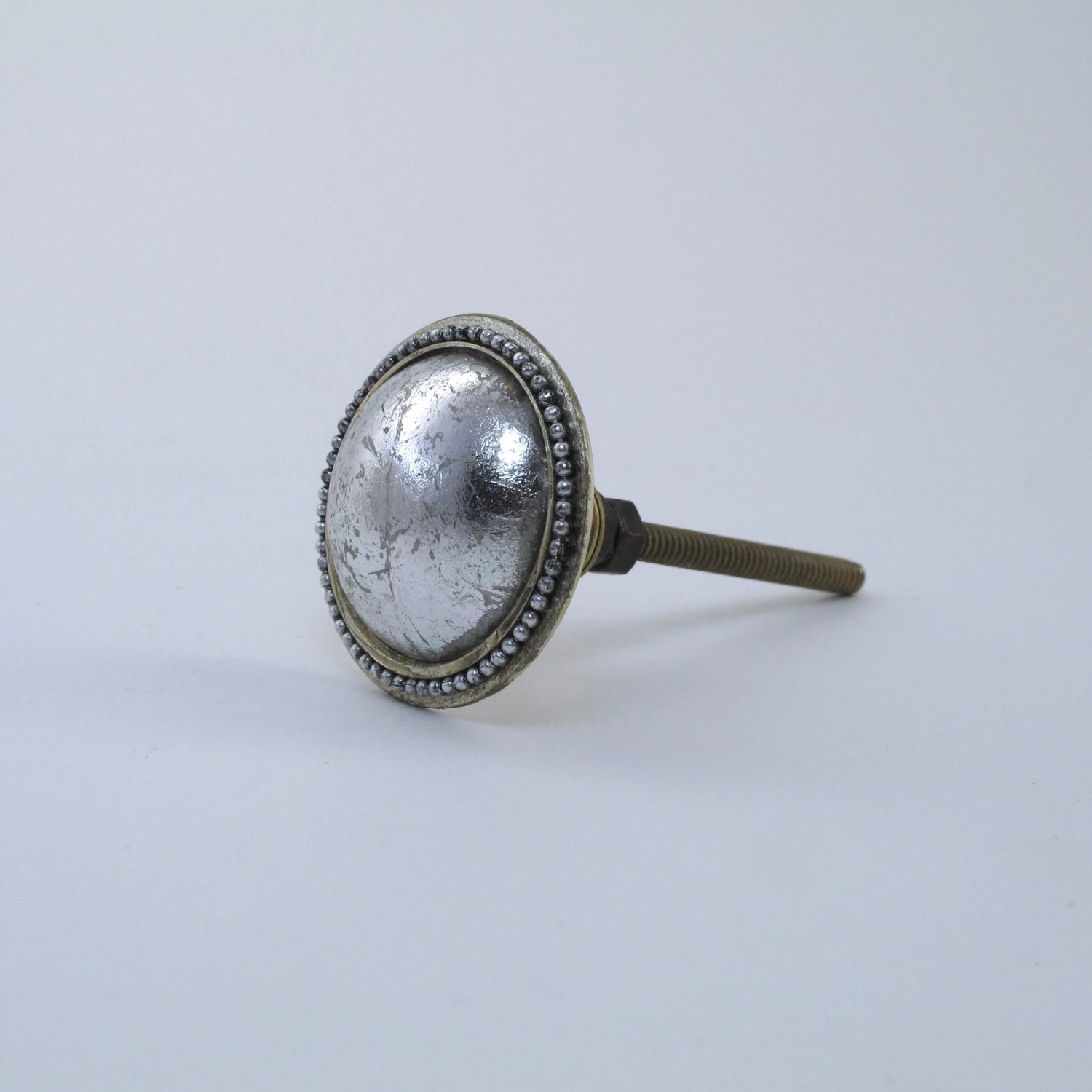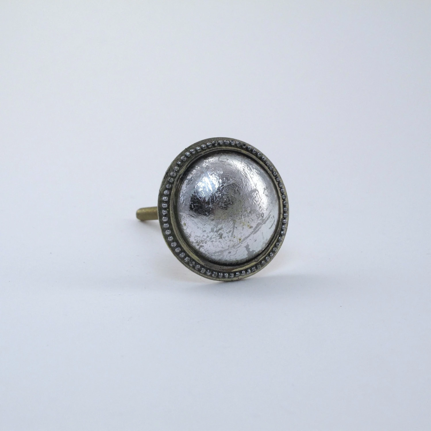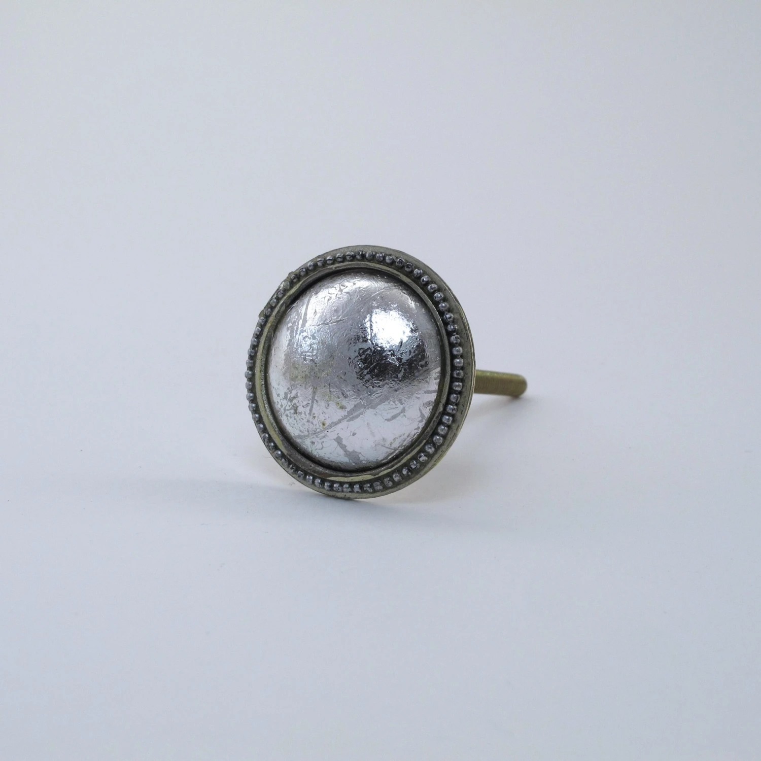 Silver Circle Pull. These knobs have an antique finish with a delicate silver paint. Beautiful dotted detail on the edges, they are both elegant and chic. The perfect drawer pulls for your dresser or cabinet.