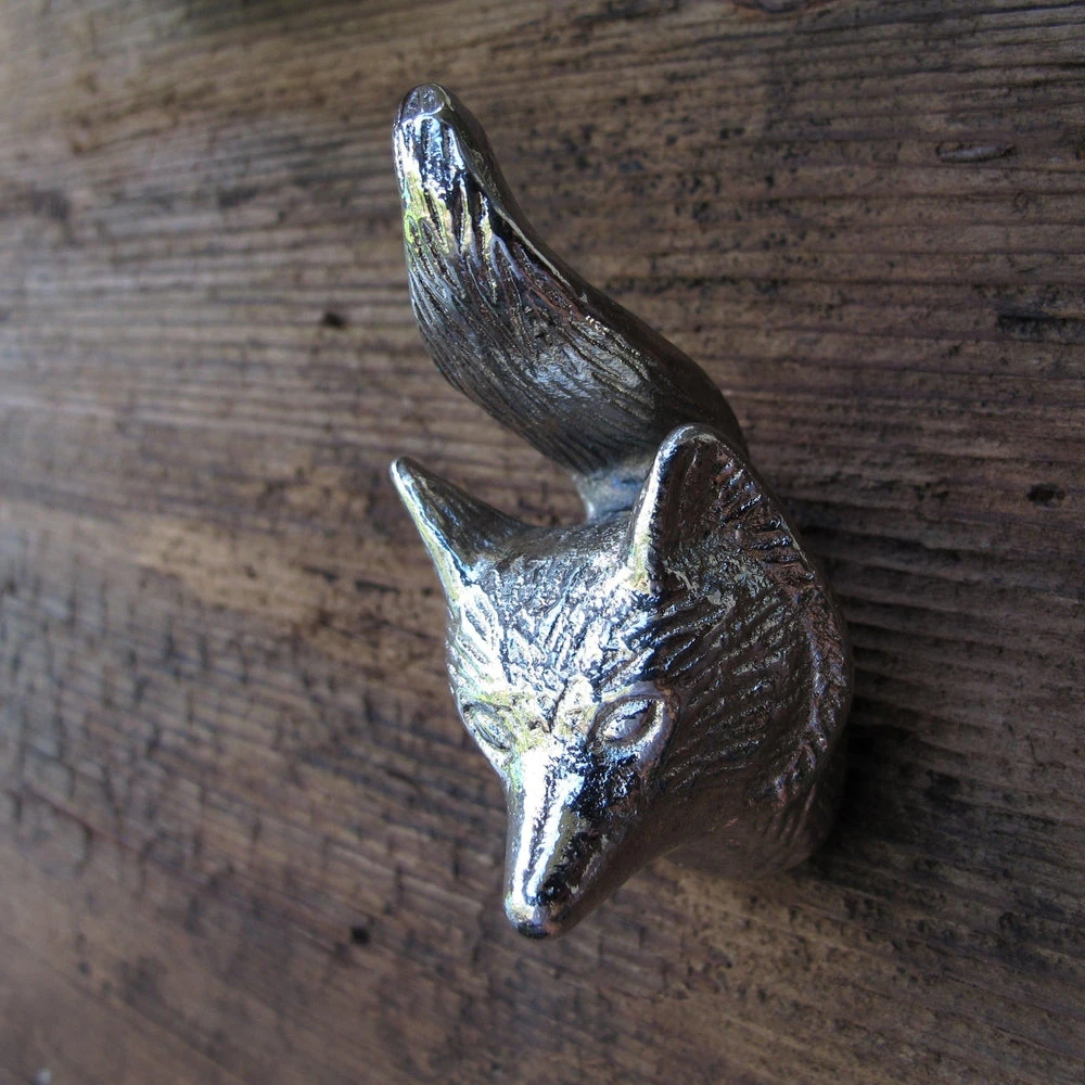 Silver Fox Knob. This beautiful metal fox knob is perfect as a bag hook, or dresser knob. The ideal knob for woodland themed nurseries and kids rooms.  Best Seller!  Handmade.Â