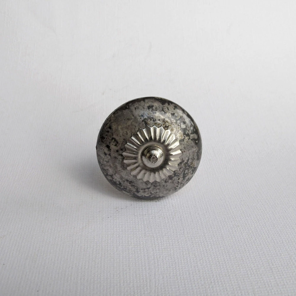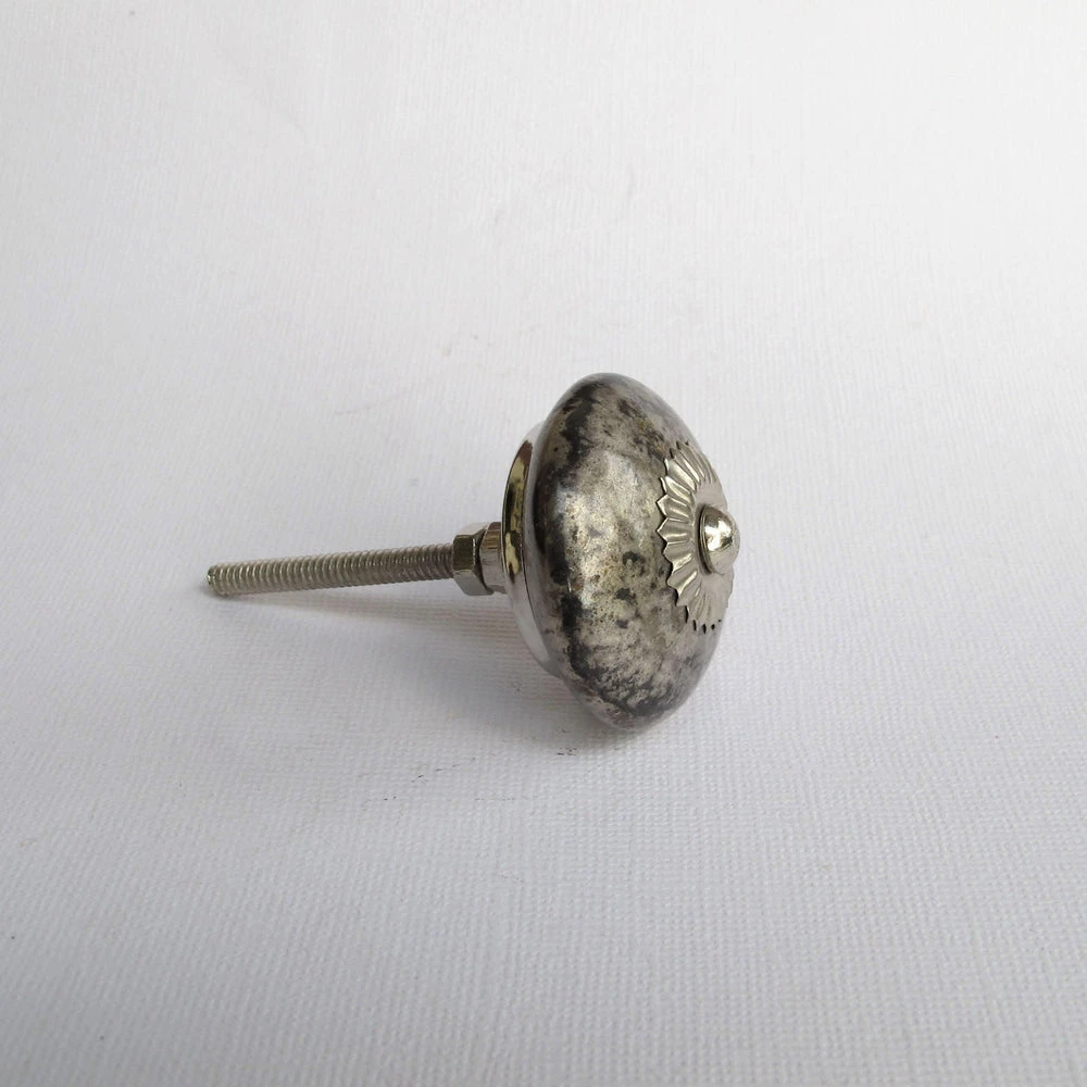 Marbled metal design on a classic round ceramic shape. Elegant + chic, the perfect accent to your bath or kitchen remodel. Â
