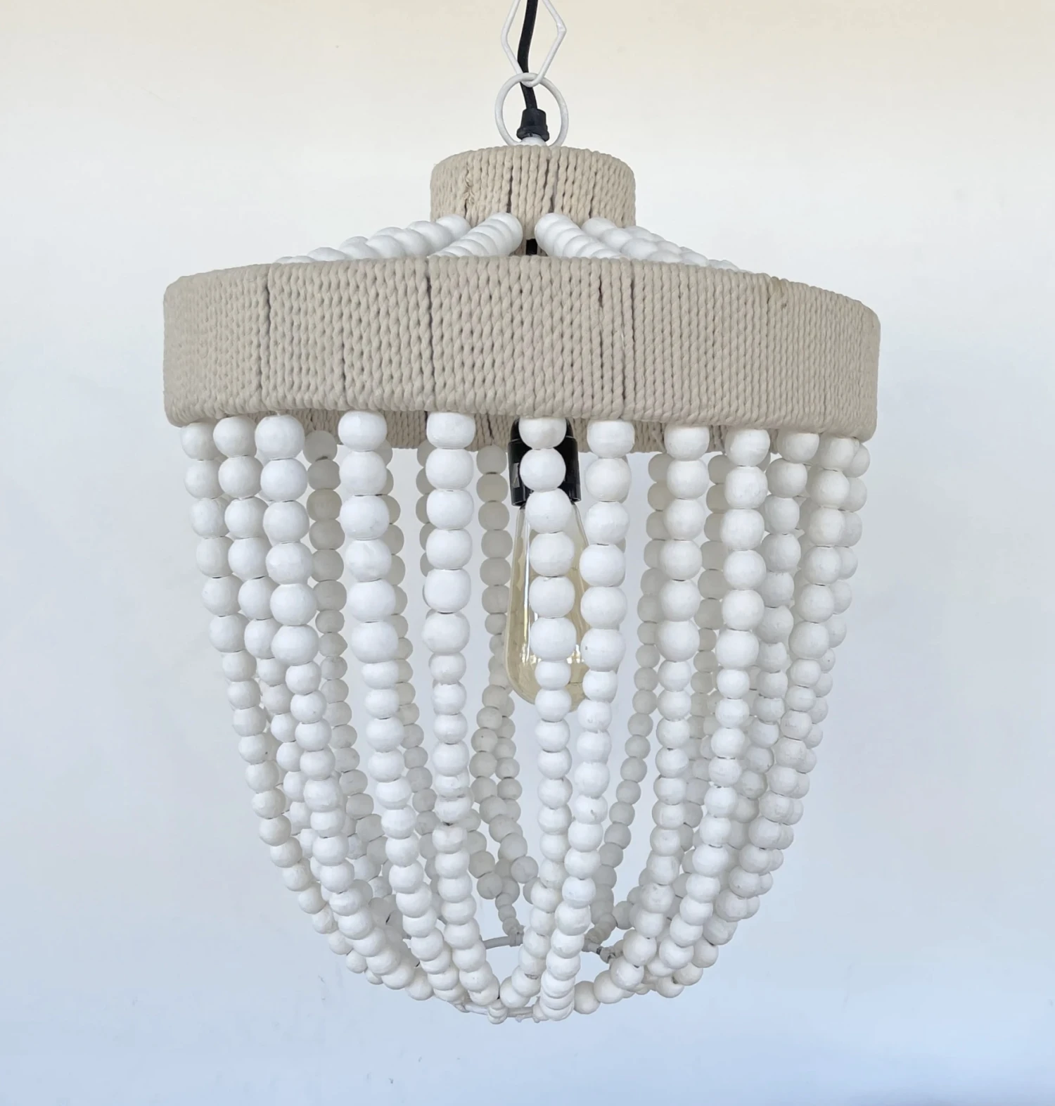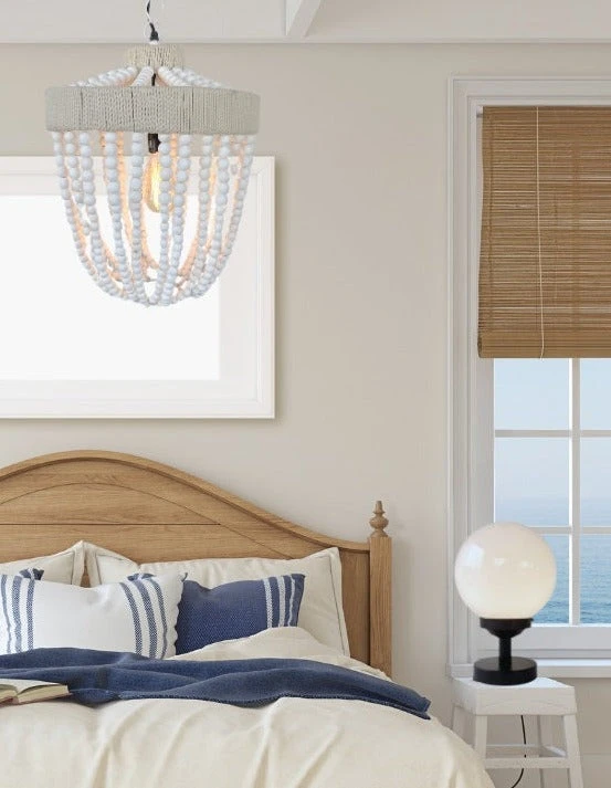 - 19″ high x 15″ wide Wooden Beaded Chandelier Pendant Light