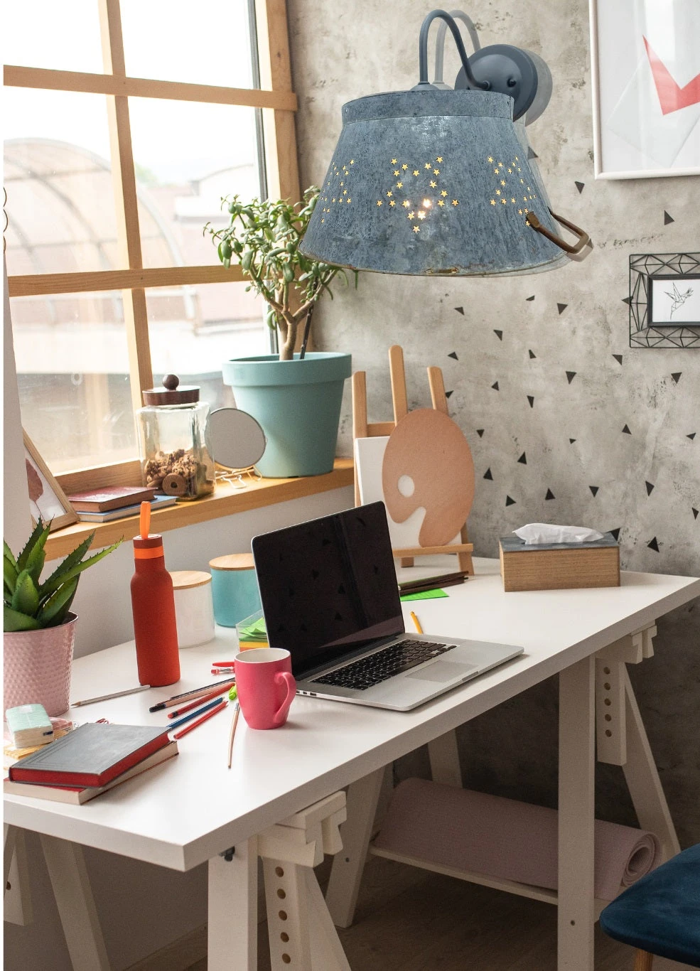 - 10″ overall x 12.5″ diameter Weathered Star Metal Shade, projects 14.5″